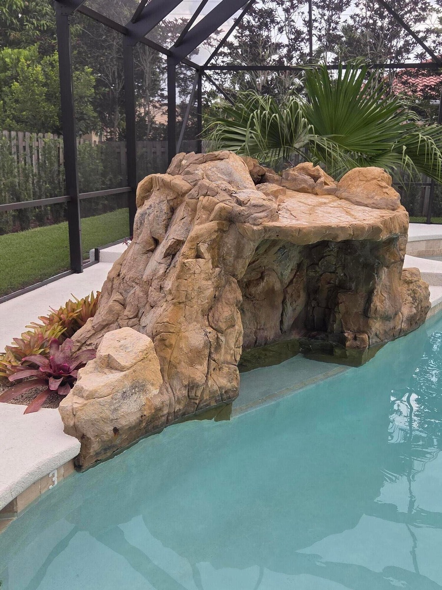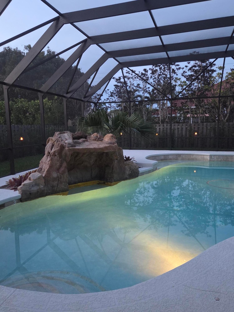 Beautiful, private waterfall grotto pool home is ready to be your oasis.