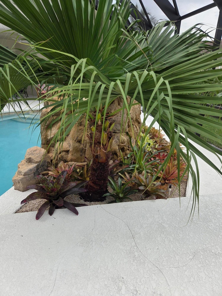 Beautiful, private waterfall grotto pool home is ready to be your oasis. With 4 BR's, 3 BA's, 3 car garage, LR, DR, FR and an office. Large fenced in yard lined with Podocarpus hedge for total privacy and a mature avocado tree, this home checks all the boxes. Solidly built with foam filled CBS construction with double pane hurricane windows, it features 9 ft ceilings in the BR's/BA's, 12 ft ceiling in main rooms and 14 ft ceiling in the entry making all the rooms feel huge. The oversized saltwater pool features a sun shelf, waterfall grotto with seating, and new heat pump. Freshly painted and upgrades galore. Situated on a quiet cul-de-sac street with no power poles or high voltage lines, just 3 miles from I-95. In Martin County with a Jupiter address, the neighborhood offers tennis
