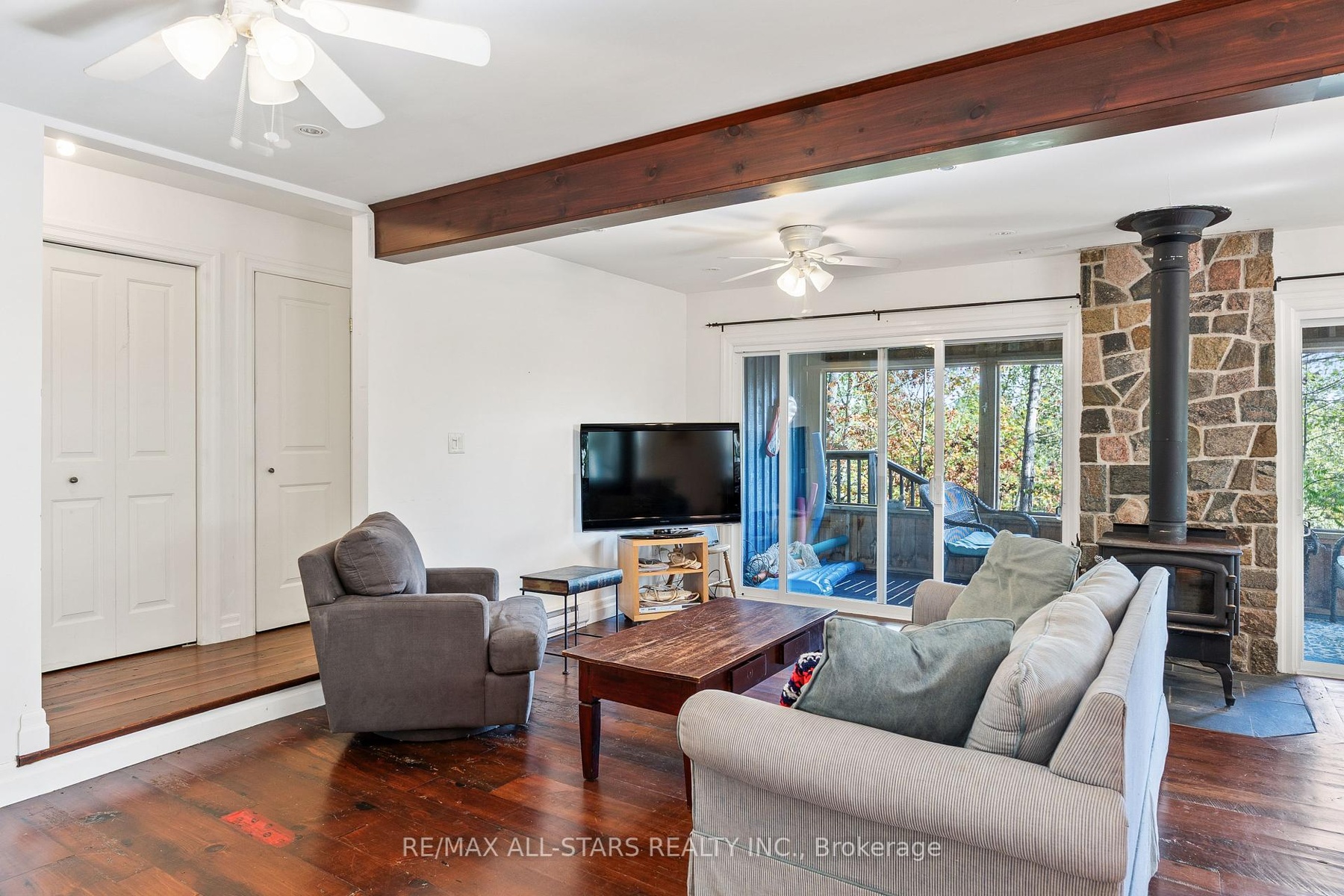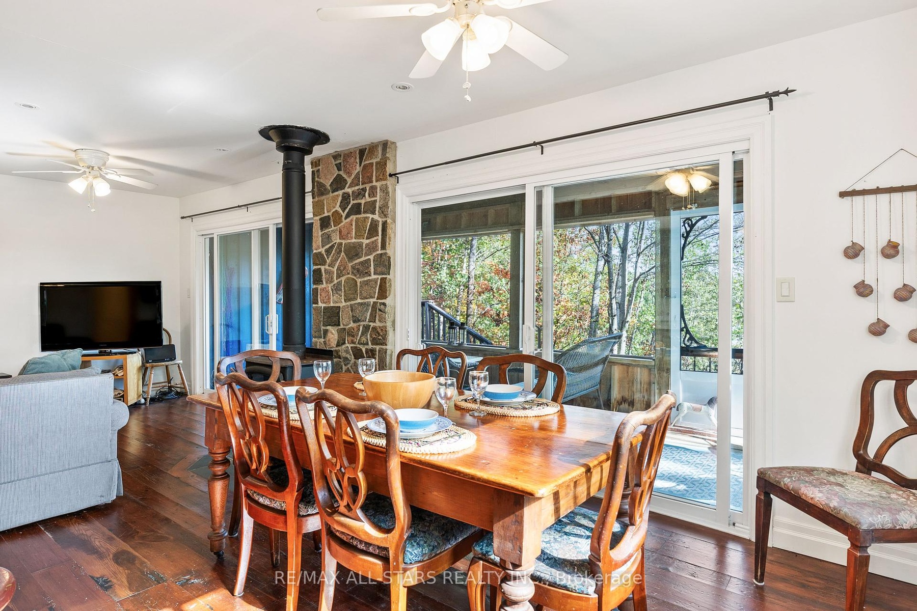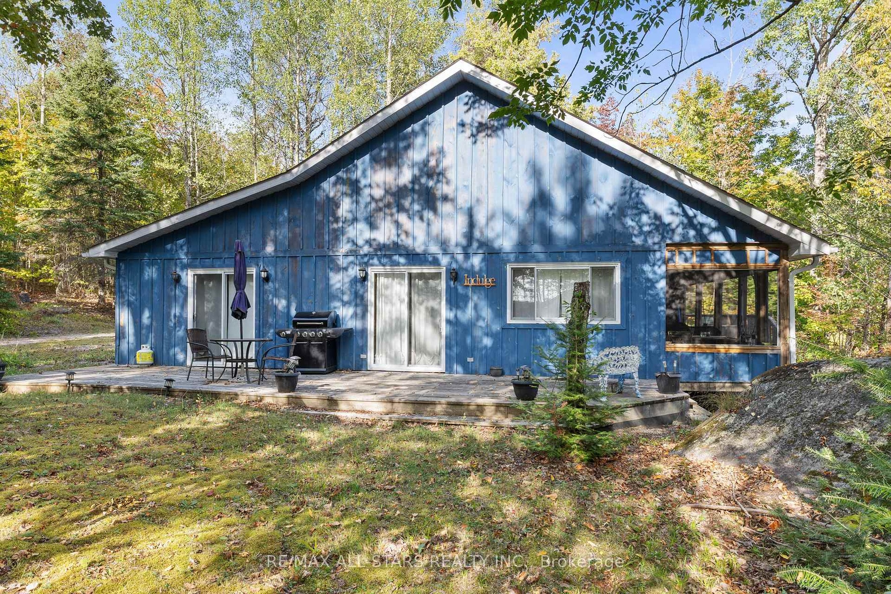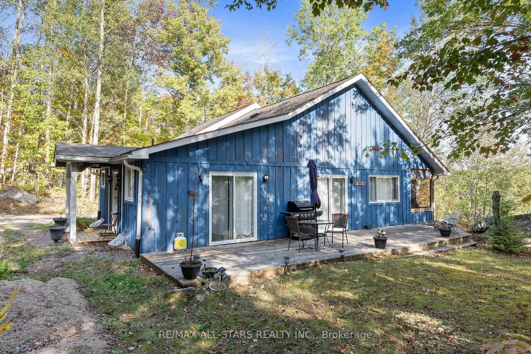 This 3-bedroom, 2-bath bungalow is full of cottage-country charm and sits on a beautifully treed 1.26-acre lot offering exceptional privacy and a true escape to nature. Inside, the open-concept main living area is flooded with natural light from large windows and features a custom kitchen with granite countertops and a center island. The combined dining and living room is warm and inviting, complete with a cozy woodstove and walkout to a bright 3-season sunroom-perfect for relaxing while enjoying views of the lake. The spacious primary bedroom offers a private 3-piece en-suite and direct access to the lakeside deck. Two additional bedrooms and an oversized 4-piece main bath complete the main floor layout. Step outside to enjoy extensive decking, perfect for outdoor entertaining or quiet relaxation. Just across a quiet country road, you'll find your deeded access to the serene Tamarack Lake. The waterfront is level and easy to access, with a brand new dock ready for your enjoyment. Tamarack Lake is a quiet, electric-motor-only lake, ideal for peaceful paddling and known for great bass fishing. Whether you're looking for a year-round home or a weekend getaway, this property offers the perfect blend of comfort, charm and nature.