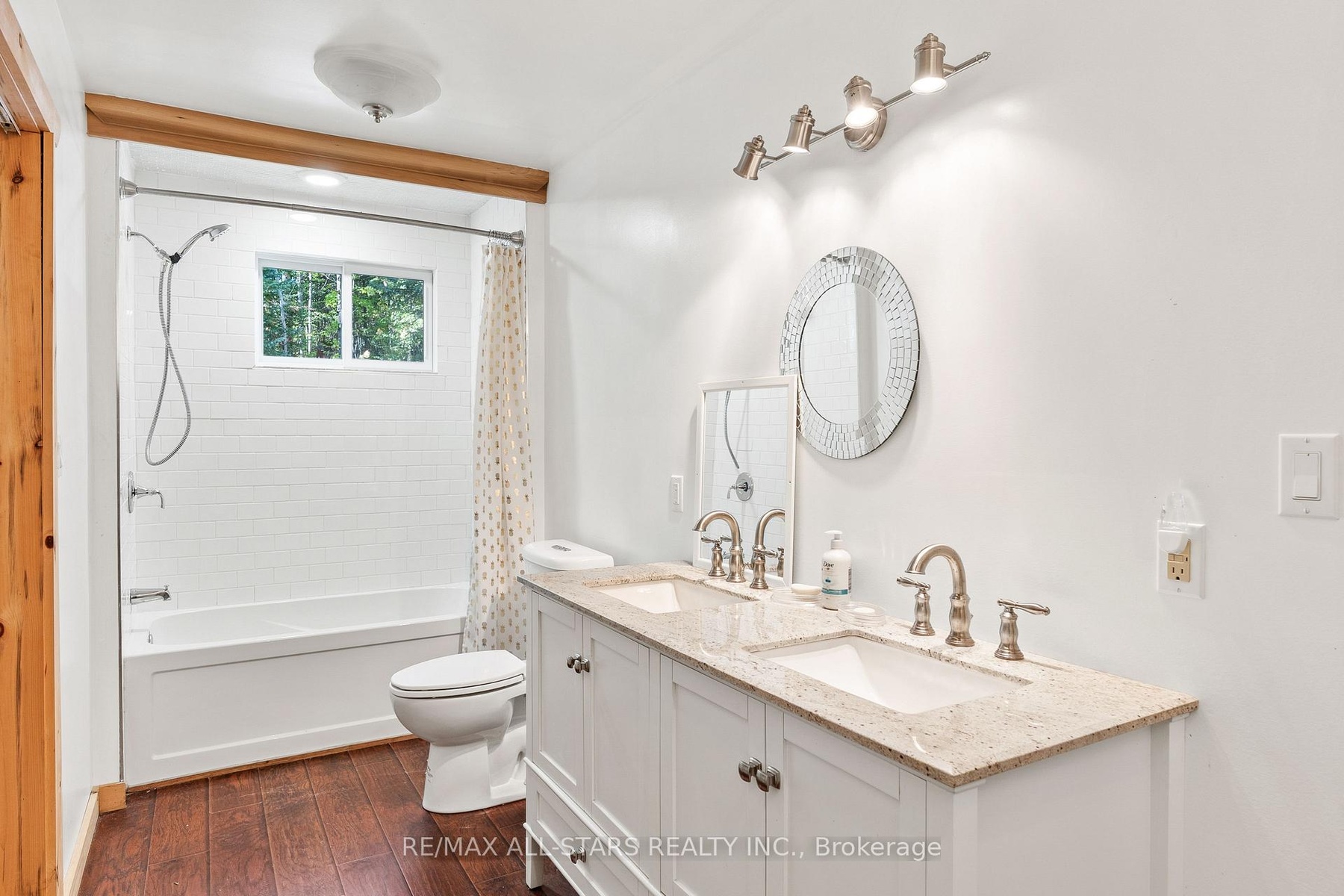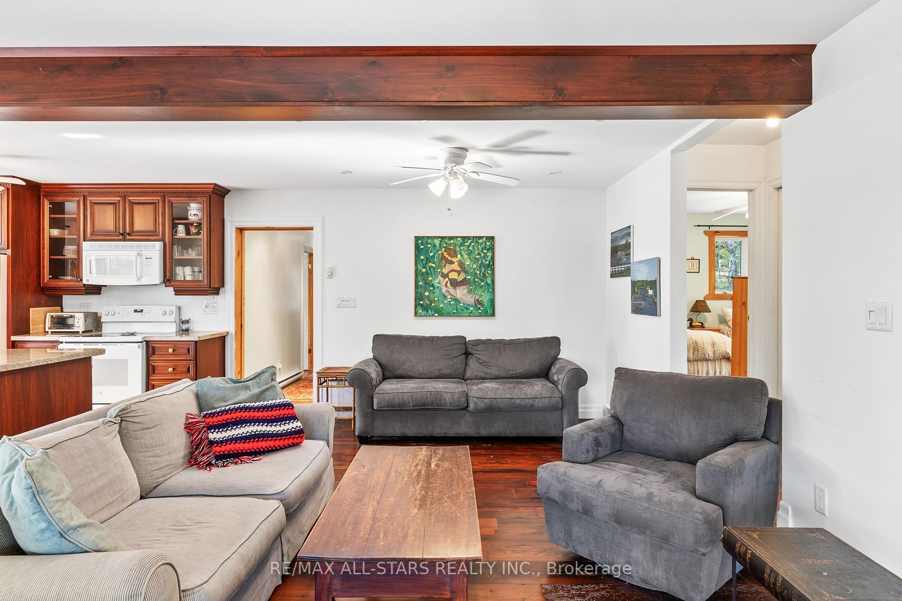 This 3 bedroom, 2 bath bungalow is full of cottage country charm and sits on a beautifully treed 1.