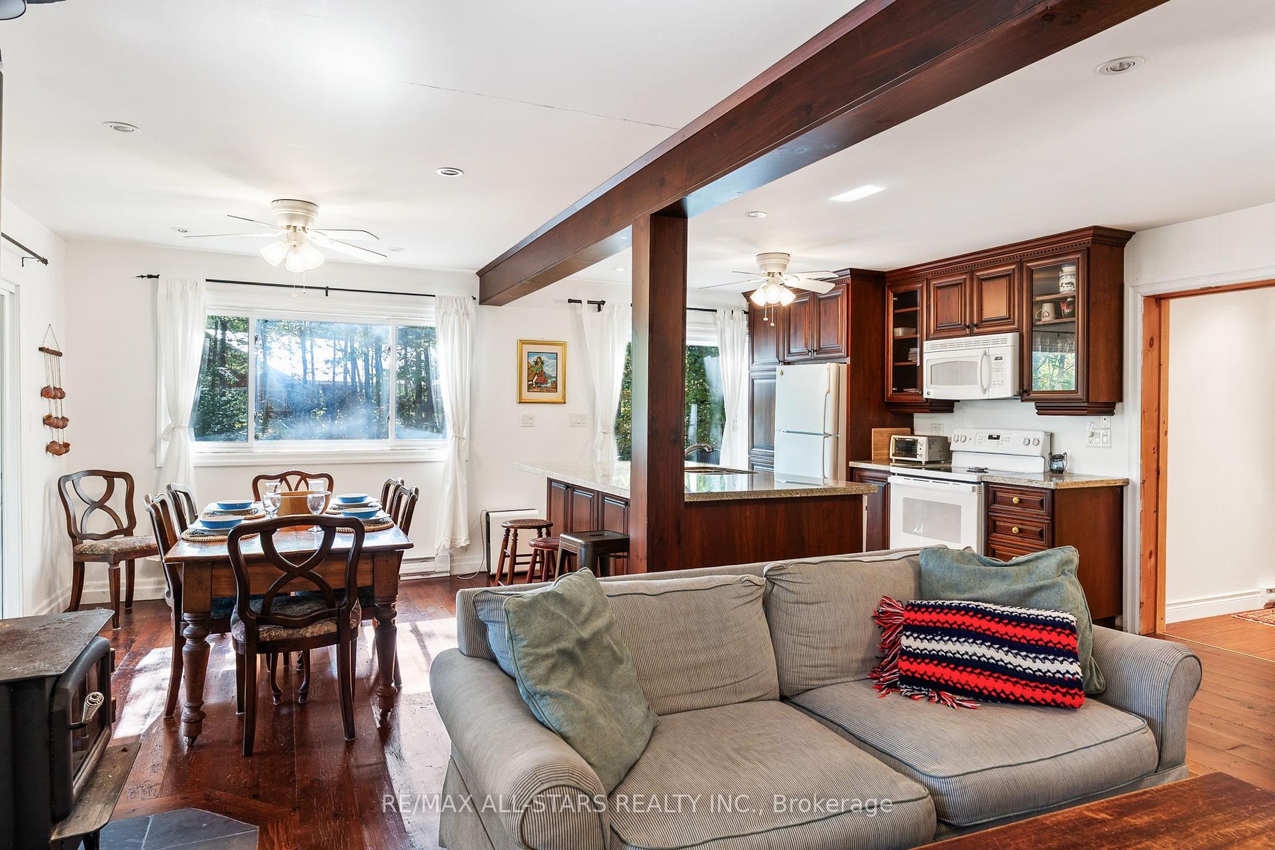 DescriptionThis 3-bedroom, 2-bath bungalow is full of cottage-country charm and sits on a beautifully treed 1.26-acre lot offering exceptional privacy and a true escape to nature. Inside, the open-concept main living area is flooded with natural light from large windows and features a custom kitchen with granite countertops and a center island. The combined dining and living room is warm and inviting, complete with a cozy woodstove and walkout to a bright 3-season sunroom-perfect for relaxing while enjoying views of the lake. The spacious primary bedroom offers a private 3-piece en-suite and direct access to the lakeside deck. Two additional bedrooms and an oversized 4-piece main bath complete the main floor layout. Step outside to enjoy extensive decking, perfect for outdoor entertaining or quiet relaxation. Just across a quiet country road, you'll find your deeded access to the serene Tamarack Lake. The waterfront is level and easy to access, with a brand new dock ready for your enjoyment. Tamarack Lake is a quiet, electric-motor-only lake, ideal for peaceful paddling and known for great bass fishing. Whether you're looking for a year-round home or a weekend getaway, this property offers the perfect blend of comfort, charm and nature.Amenities- Beach Front