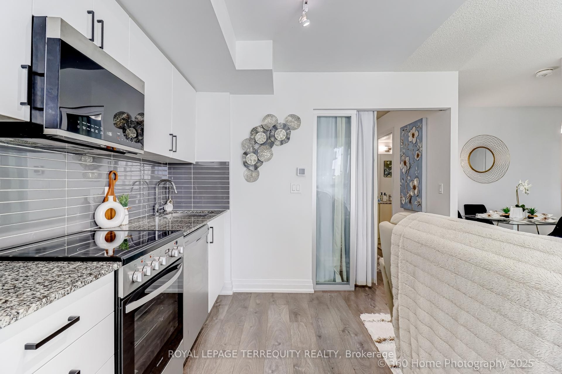 DescriptionMove in and experience rewarding cozy city living in this stunning year-old 1 bdrm + den with two full baths! Comes with Owned parking & owned locker* Bright & spacious suite features a functional open layout, expansive floor-to- ceiling window & hardwood flooring throughout The sleek kitchen boasts contemporary cabinetry & quartz countertops, flowing seamlessly into the living area w/ a walk-out to your private balcony* East facing unit, welcome the morning sun* Primary bdrm with large closet & 4-pc spa-inspired ensuite bath* The den offers flexibility - ideal home office, studio, or guest room* Enjoy world-class amenities: rooftop terrace w/ pool & BBQ & outdoor fireplace + fitness studio, sports lounge, billiards & games room, yoga, theatre room, party room & guest suites. Steps to TTC, shopping, parks, school* Easy access to 401*Close to U of T & Centennial College* A perfect unit for professionals, downsizers or investors seeking long-term value.Virtual Tour: http://www.360homephoto.com/z25091802/Amenities- Bike Storage