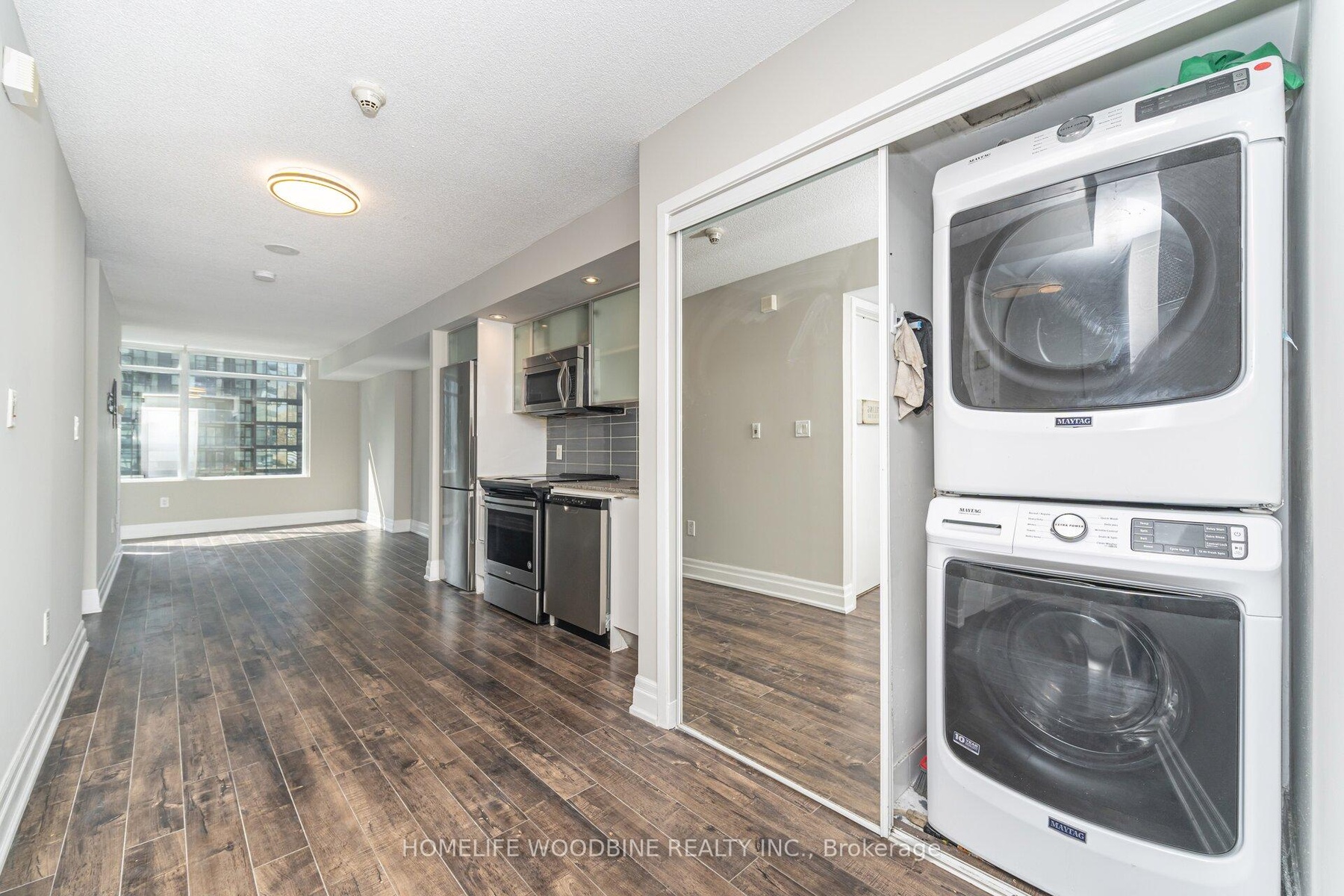 Welcome to this beautiful Freshly Painted 1+1 bedroom, in the heart of Fort York offering smartly designed living space in the popular Montage Building. Enjoy amazing value with in a vibrant downtown location. This unit features a bright, open-concept layout with a separate den perfect for a home office setup. The primary bedroom has laminate flooring, and the open balcony. Just steps to the Financial District, Waterfront, King West, Rogers Center, TTC, and Subway. Amenities include Gym, weight room & yoga studio, Indoor pool & hot tub Rock climbing wall & BBQ terrace, Karaoke room, billiards room & TV room, Theatre, party room, visitor parking. A perfect space for professionals or first-time buyers looking for comfort, convenience, and community in one of Toronto's most connected neighbourhoods.