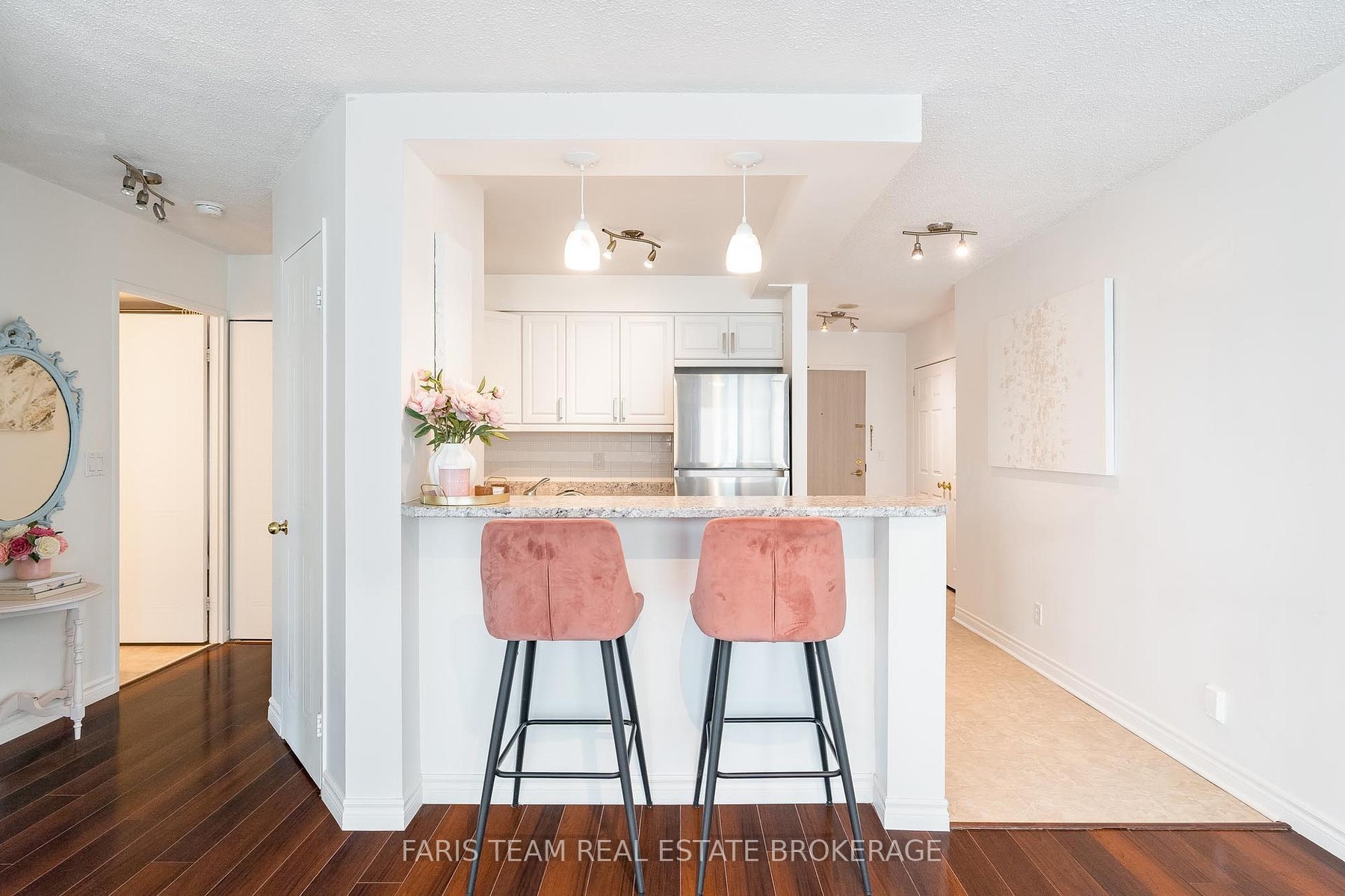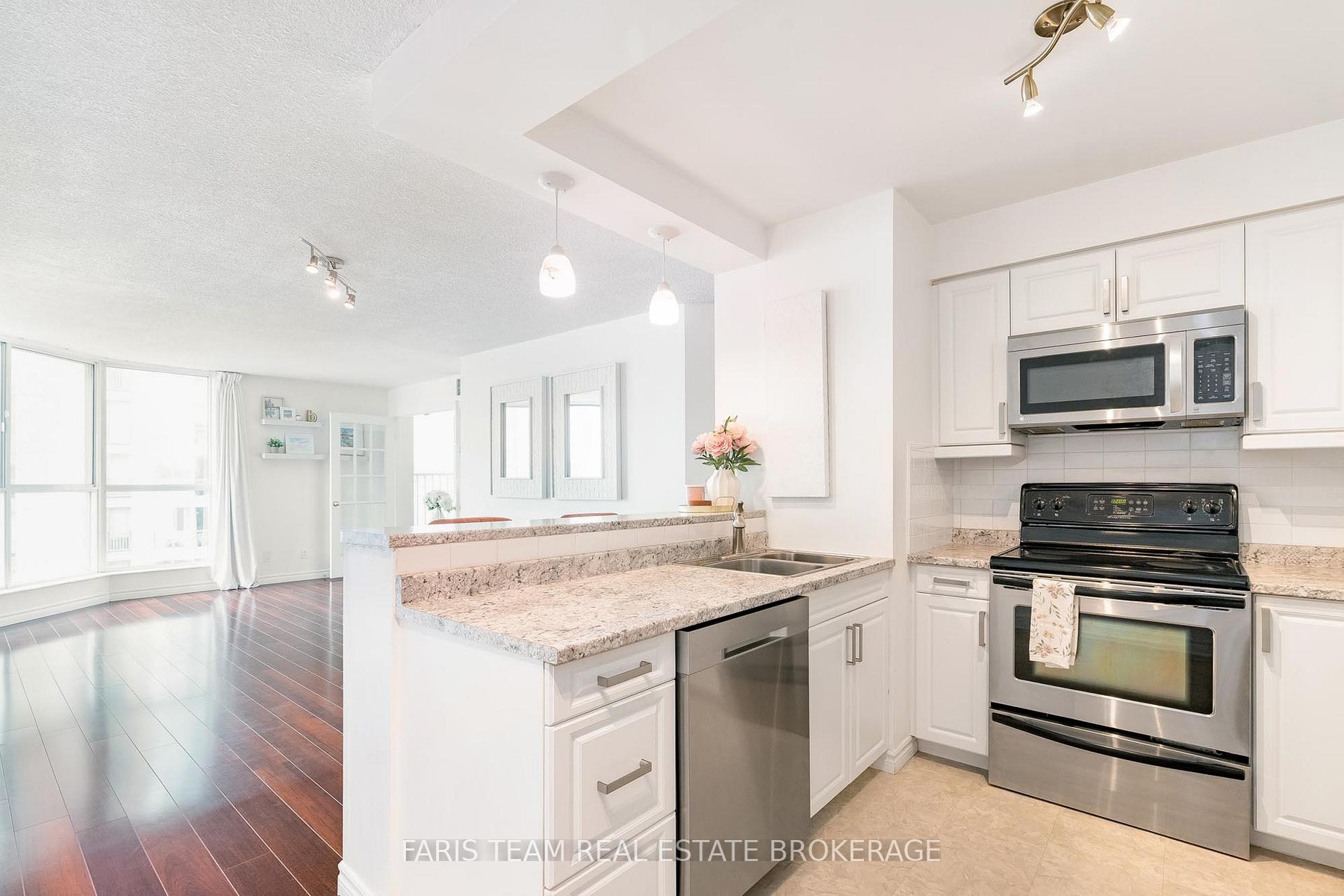 Top 5 Reasons You Will Love This Condo: 1) Enjoy the convenience of all utilities included while basking in expansive lake views and a light-filled open layout at just under 800 square feet, that captures the beauty of Kempenfelt Bay, blending luxury, functionality, and ease of everyday living 2) The versatile bonus room adapts to your lifestyle, whether as a home office, cozy guest space, or a quiet retreat 3) Modern finishes enhance daily comfort, with sleek flooring, stainless-steel appliances, and a generously sized bedroom that easily accommodates a king bed 4) Experience the rare convenience of secure underground parking with one included space located just steps from the building entrance for effortless access, with also the option to purchase a second space, ideal for added flexibility or rental income potential, along with a private locker conveniently positioned beside the elevator 5) Embrace a worry-free lifestyle with condo fees of $961.99 covering utilities and access to premium amenities, including an indoor pool and fitness centre, all set in a prime downtown Barrie location. 785 fin.sq.ft. *Please note some images have been virtually staged to show the potential of the condo.