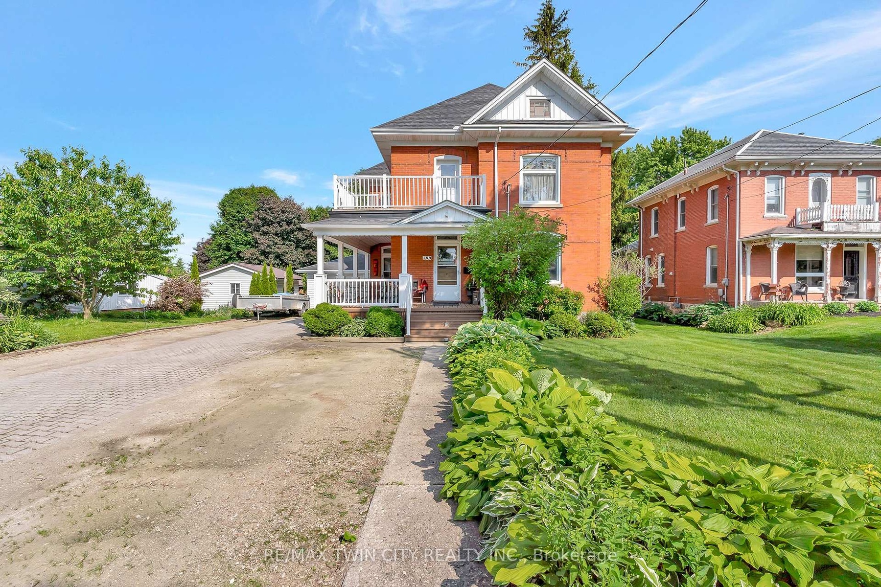 DescriptionWelcome to 199 Ellen St, a charming century home overflowing with character located in the quiet family friendly town of Atwood, just a 45 min drive to Kitchener/Waterloo. This 5 bed, 2 bath, 2.5 story has beautiful curb appeal with an inviting wrap-around porch, solid red brick, lush landscaping, and a stone driveway to fit 6+ cars. Inside, the timeless appeal is seamlessly blended with modern upgrades from the elegant detail of the wood trim, some original stained glass windows and hardwood throughout to the classically renovated kitchen and bathrooms. The large entryway takes you to a cozy living room with large windows to let in plenty of natural light, and a gas fireplace where you will love to relax after a long day. From here you can separate the large formal dining room with traditional pocket doors. You will also find a den/office on this main level which is big enough to use to create a 6th bedroom on the main floor. Down the hall from the foyer is the gorgeous, modern-meets-rustic kitchen, with custom cream cabinetry and island, black granite countertops, gas stove and wood paneled ceiling, combining tradition and luxury. From here you can head through the mudroom where you'll find main floor laundry and a modern updated 3 pce bath. The oversized sliders will lead you to the peace and tranquility of the huge, treed backyard where you can enjoy the stunning gardens or relax on the private, well designed deck with a bar, or under the canopy where you can cool off under the fan. Store your toys and tools in the custom crafted shed. Upstairs there is an exquisitely designed electric fireplace with white shiplap, another fully updated 4 pce bathroom and 5 spacious bedrooms with one leading to your upper balcony, a great place to enjoy a morning coffee. If you're looking for more space or extra storage, there's a staircase to an attic with 500 sq feet to make your own. A perfect place to raise your children, close to community center/pool, schools and more!Amenities- Sump Pump