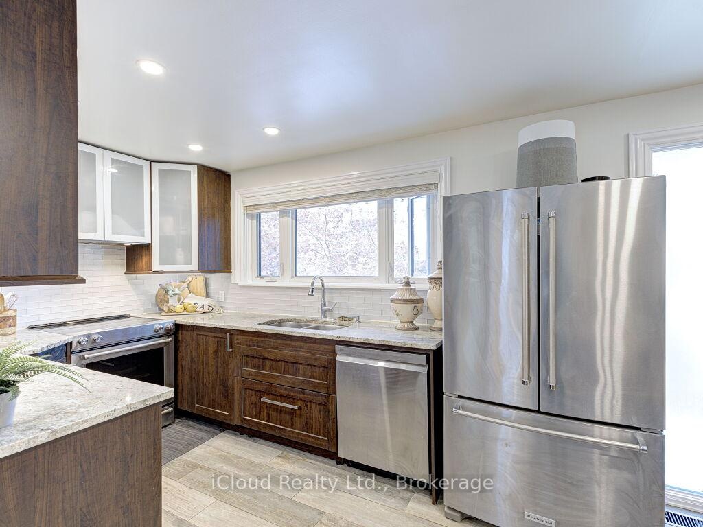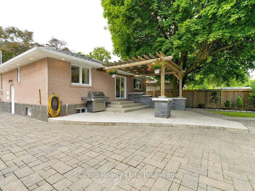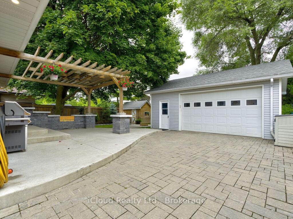 DescriptionWelcome to this completely renovated three-bedroom, one-bathroom home that perfectly blends modern comfort with practical functionality. This freshly painted, carpet-free residence offers 1044 square feet of thoughtfully designed living space, featuring cozy living room with gas fire place, hardwood floors throughout, updated kitchen with granite counter tops and ceramic floor plus a large finished basement that extends your entertainment and storage options.The heart of this Georgetown gem lies in its exceptional outdoor amenities. Step outside to discover a backyard oasis complete with a firepit for evening gatherings and a large concrete patio topped with a charming pergola perfect for morning coffee or weekend barbecues. The professional landscaping and interlock driveway create an impressive curb appeal that welcomes you home each day. What truly sets this property apart is the remarkable 22x24 heated and air-conditioned detached workshop. This isn't your average garage it features a 60-amp electrical panel with welding plugs, pot lights, and built-in shelving, making it ideal for serious hobbyists, craftspeople, or anyone needing dedicated workspace. The workshop represents a rare find in today's market. Peace of mind comes standard with recent upgrades including all roofs replaced in 2018 along with new eaves and gutter guard. The property also includes a Generlink system with a 7000-watt generator, ensuring you're prepared for any weather situation. Location couldn't be better, with Centennial Public School just a short walk away, making school runs effortless. Georgetown Market Place and Real Canadian Superstore provide convenient shopping options nearby, while West Branch Park offers green space for recreation. The Georgetown GO station connects you to the Greater Toronto Area for commuting needs. This home combines quality construction, modern renovations, and exceptional outdoor features in one of Georgetown's most desirable neighborhoods.Amenities- Built-In-BBQ