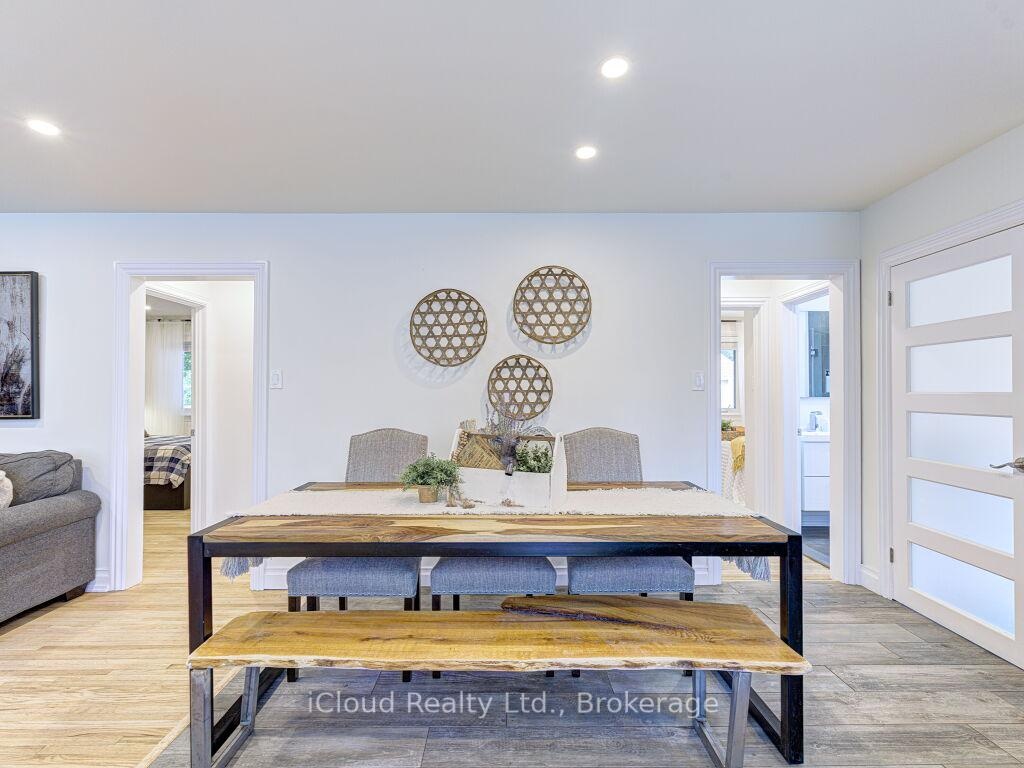 Welcome to this completely renovated three-bedroom, one-bathroom home that perfectly blends modern comfort with practical functionality. This freshly painted, carpet-free residence offers 1044 square feet of thoughtfully designed living space, featuring cozy living room with gas fire place, hardwood floors throughout, updated kitchen with granite counter tops and ceramic floor plus a large finished basement that extends your entertainment and storage options.The heart of this Georgetown gem lies in its exceptional outdoor amenities. Step outside to discover a backyard oasis complete with a firepit for evening gatherings and a large concrete patio topped with a charming pergola perfect for morning coffee or weekend barbecues. The professional landscaping and interlock driveway create an impressive curb appeal that welcomes you home each day. What truly sets this property apart is the remarkable 22x24 heated and air-conditioned detached workshop. This isn't your average garage it features a 60-amp electrical panel with welding plugs, pot lights, and built-in shelving, making it ideal for serious hobbyists, craftspeople, or anyone needing dedicated workspace. The workshop represents a rare find in today's market. Peace of mind comes standard with recent upgrades including all roofs replaced in 2018 along with new eaves and gutter guard. The property also includes a Generlink system with a 7000-watt generator, ensuring you're prepared for any weather situation. Location couldn't be better, with Centennial Public School just a short walk away, making school runs effortless. Georgetown Market Place and Real Canadian Superstore provide convenient shopping options nearby, while West Branch Park offers green space for recreation. The Georgetown GO station connects you to the Greater Toronto Area for commuting needs. This home combines quality construction, modern renovations, and exceptional outdoor features in one of Georgetown's most desirable neighborhoods.