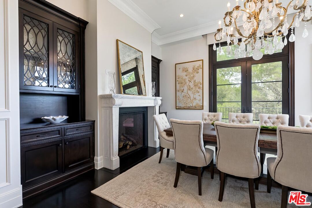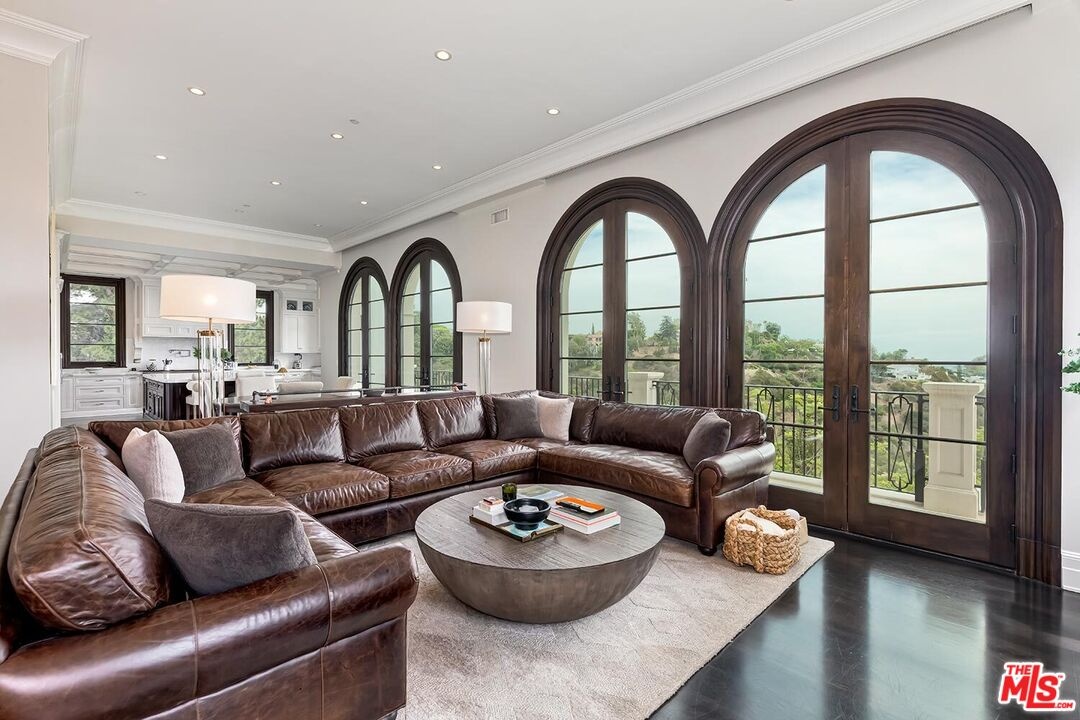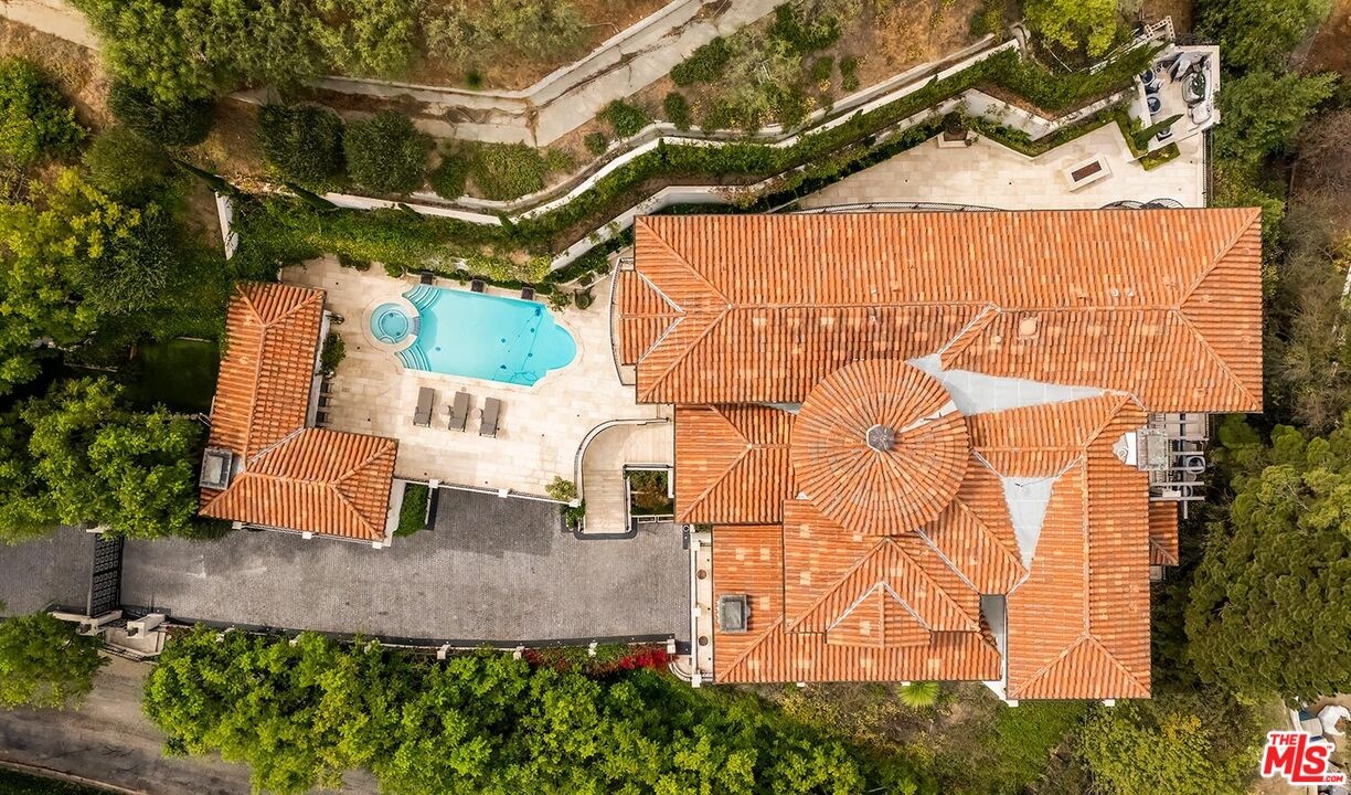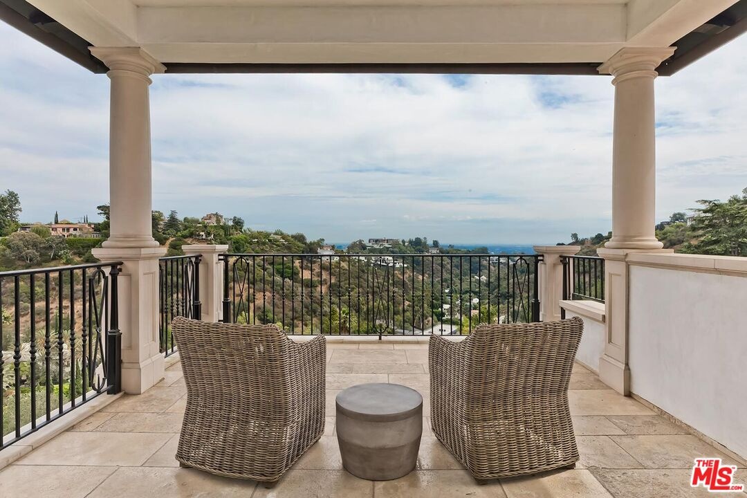 Experience the ultimate in privacy and luxury with this custom-built Bel-Air estate, showcasing designer finishes and meticulous attention to detail throughout. Enter this secluded oasis through a gated driveway leading to a spacious motor court that accommodates 5+ vehicles, plus two direct-entry 2-car garages. Spanning over 8,000 square feet, the home features 6 bedrooms and 9 bathrooms, along with a game room with bar, home theater, wine cellar, elevator, dedicated office, and a steam sauna on the lower level. The chef's kitchen is outfitted with a butler's pantry, Sub-Zero and Wolf appliances, Italian Borghini marble countertops, a large center island, and dual dishwashers. The luxurious primary suite includes a private sitting area with fireplace and opens to a large balcony offering stunning city and mountain views. It also boasts dual full bathrooms with heated floors and a generous walk-in closet. Thoughtful, high-end upgrades abound, including linear air conditioning, custom ironwork, solar panels, a gas and propane backup generator, central vacuum system, laundry chute, whole-house water filtration, five-zone HVAC, and a comprehensive security system with 16 cameras. The resort-style backyard is an entertainer's dream, featuring a spectacular pool and spa with fire features, panoramic views, a cabana with full bathroom, and a fully equipped outdoor kitchen with Viking appliances, BBQ, and dishwasher. Mature landscaping envelops the entire property, ensuring complete privacy. Home is offered unfurnished.