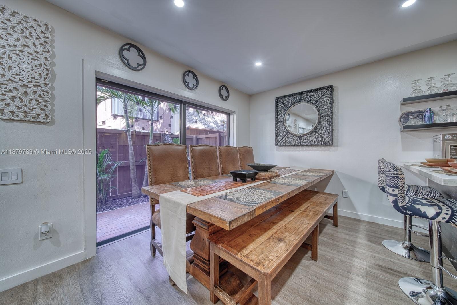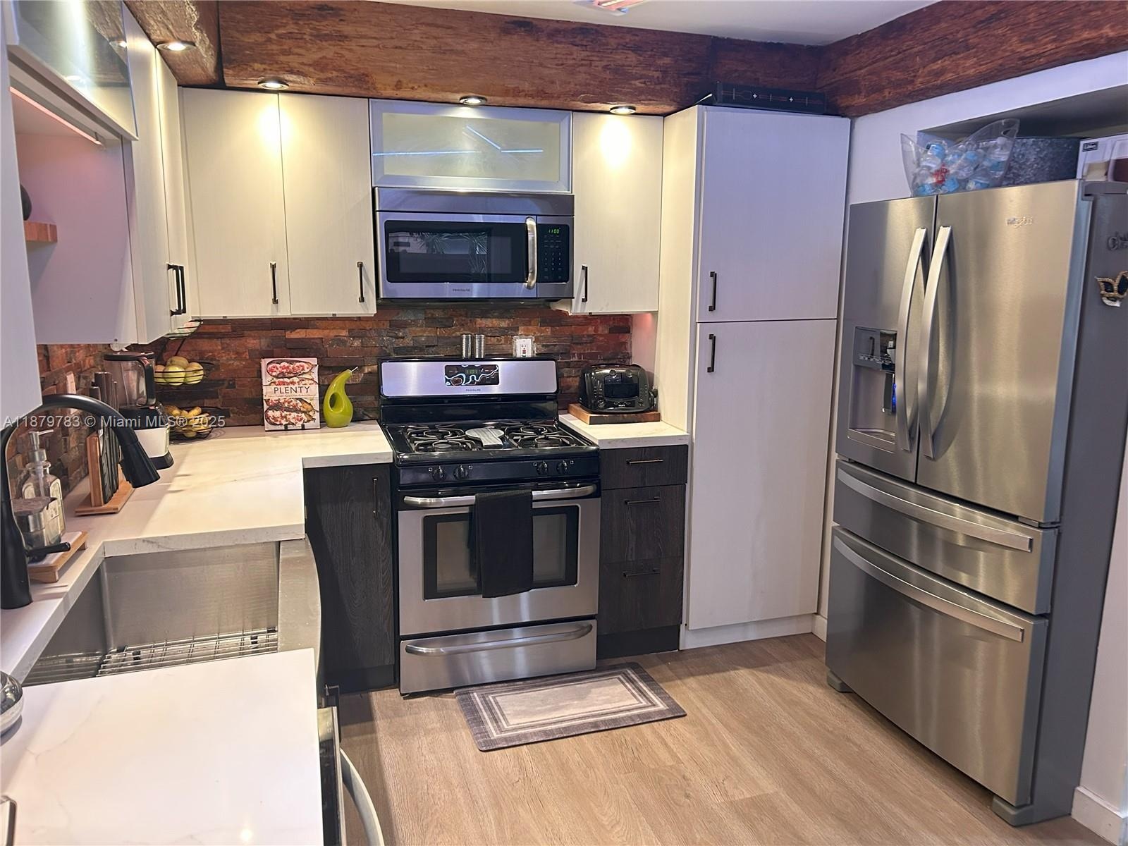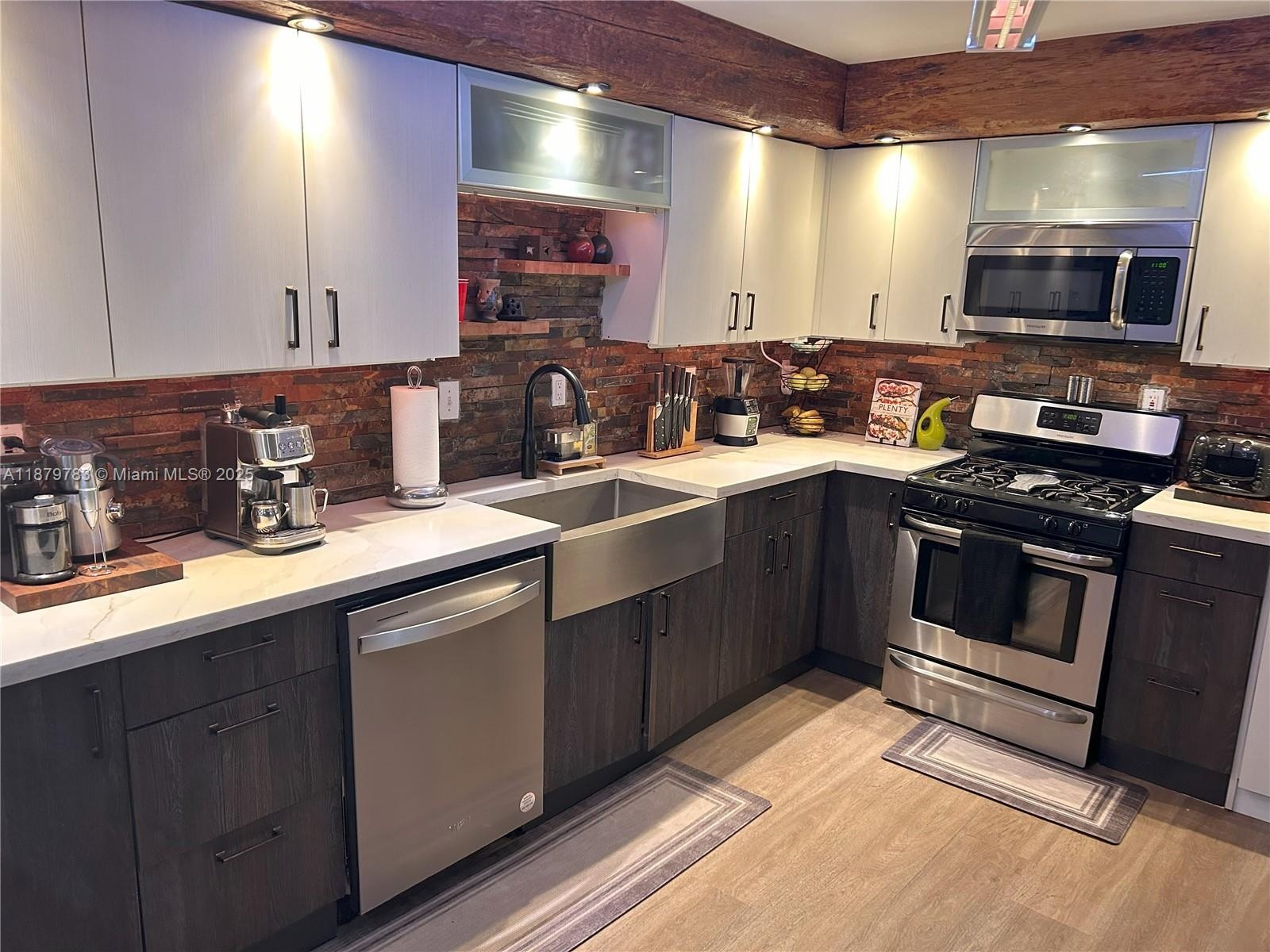 One of a kind Snapper Village unit with one of the largest and beautifully paved patios in the community. This rarely available rustic chic townhome has been fully remodoled and well taken care of by it's owners for the last 10 years.New impact windows throughout. The kitchen features Calcatta Quartz countertops, undermount lighting, and faux beams. New LVP flooring on both floors.Main ensuite bathroom has been designed with high end tile and glass shower enclosure featuring a multijet shower system. Guest bathroom boasts a jacuzzi tub, large format tiles, and beautiful white cabinets.A spacious half bathroom downstairs adorned with a unique glass sink and custom wood countertops welcome all guests. The ceilings have been upgraded with led lighting in the living areas. Pet-friendly.