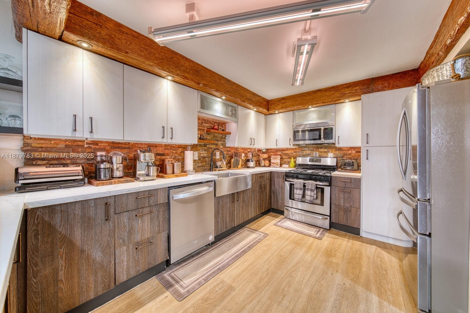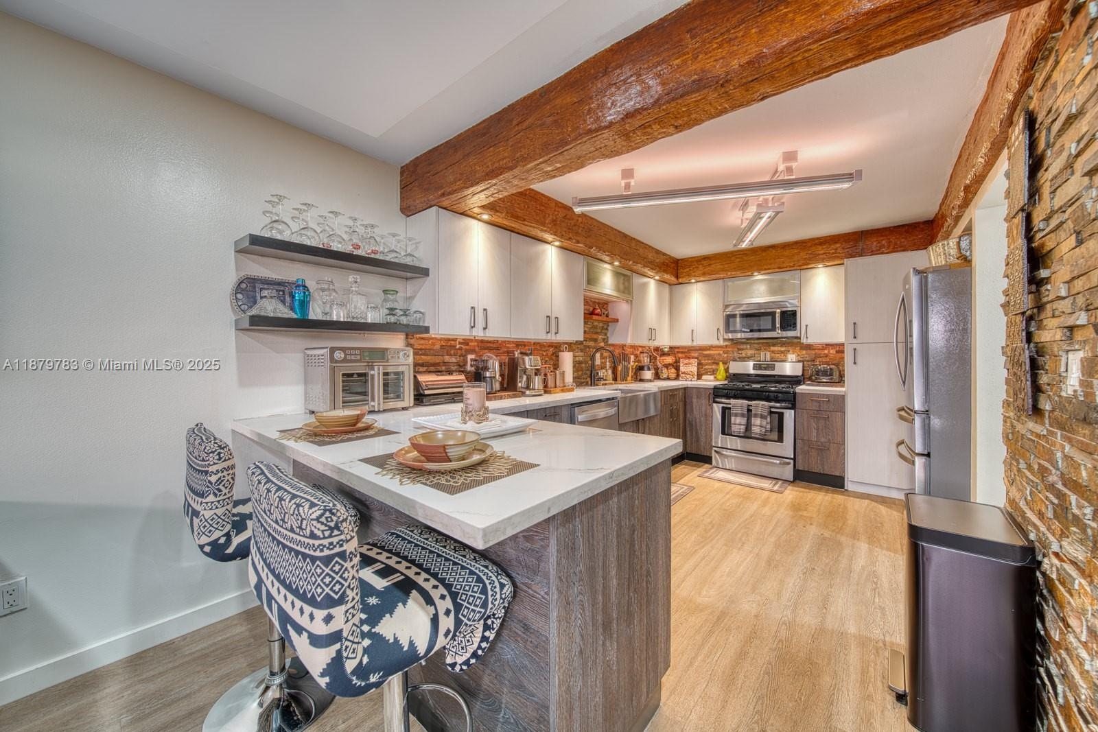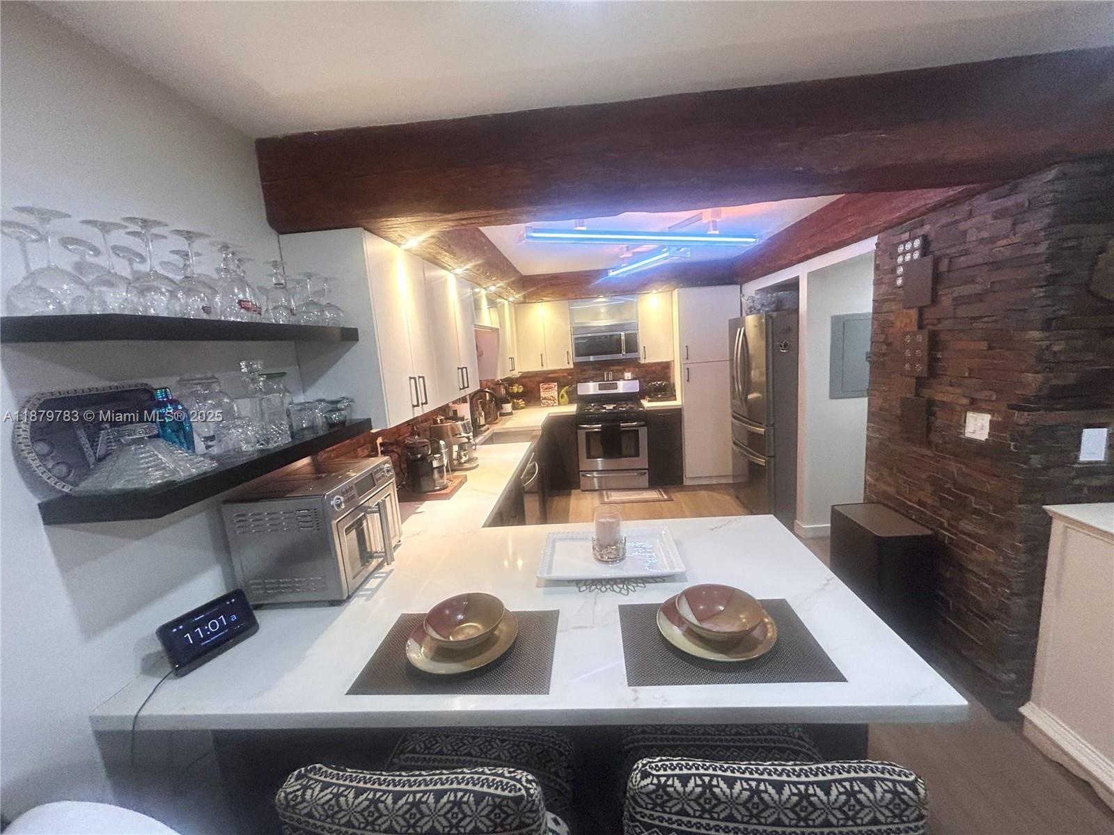 DescriptionOne of a kind Snapper Village unit with one of the largest and beautifully paved patios in the community. This rarely available rustic chic townhome has been fully remodoled and well taken care of by it's owners for the last 10 years.New impact windows throughout. The kitchen features Calcatta Quartz countertops, undermount lighting, and faux beams. New LVP flooring on both floors.Main ensuite bathroom has been designed with high end tile and glass shower enclosure featuring a multijet shower system. Guest bathroom boasts a jacuzzi tub, large format tiles, and beautiful white cabinets.A spacious half bathroom downstairs adorned with a unique glass sink and custom wood countertops welcome all guests. The ceilings have been upgraded with led lighting in the living areas. Pet-friendly.Amenities- Attic