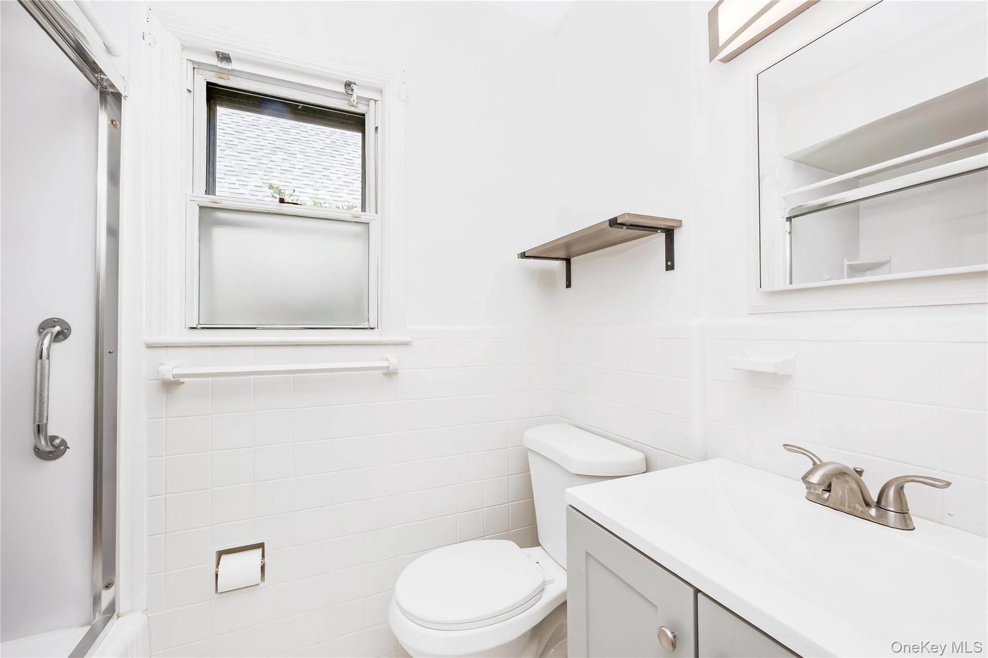 A bright, spacious living room with ample wall space and a windowed, hanging coat closet sets the tone. The formal dining room impresses with a duet of custom-built Queen Anne curio cabinets flanking the southern wall. The pristine, highly functional eat-in galley kitchen presents modernized, white, framed cabinetry with brushed nickel hardware, shining retro countertops, stainless sink, and a new, full suite of branded stainless appliances. The roomy primary bedroom offers double closets and a combo ceiling light/fan, while a second bedroom and a pure white full bathroom with updated lavatory and accessories complete this level.