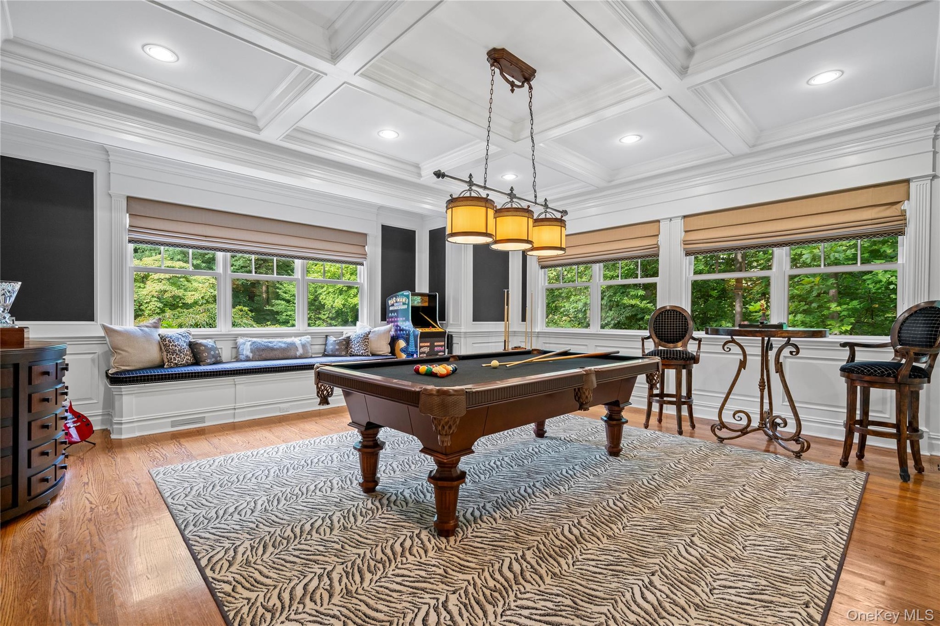 - Stunning billiards room with a coffered ceiling