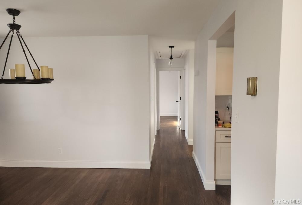 - Hall with attic access and dark wood-type flooring