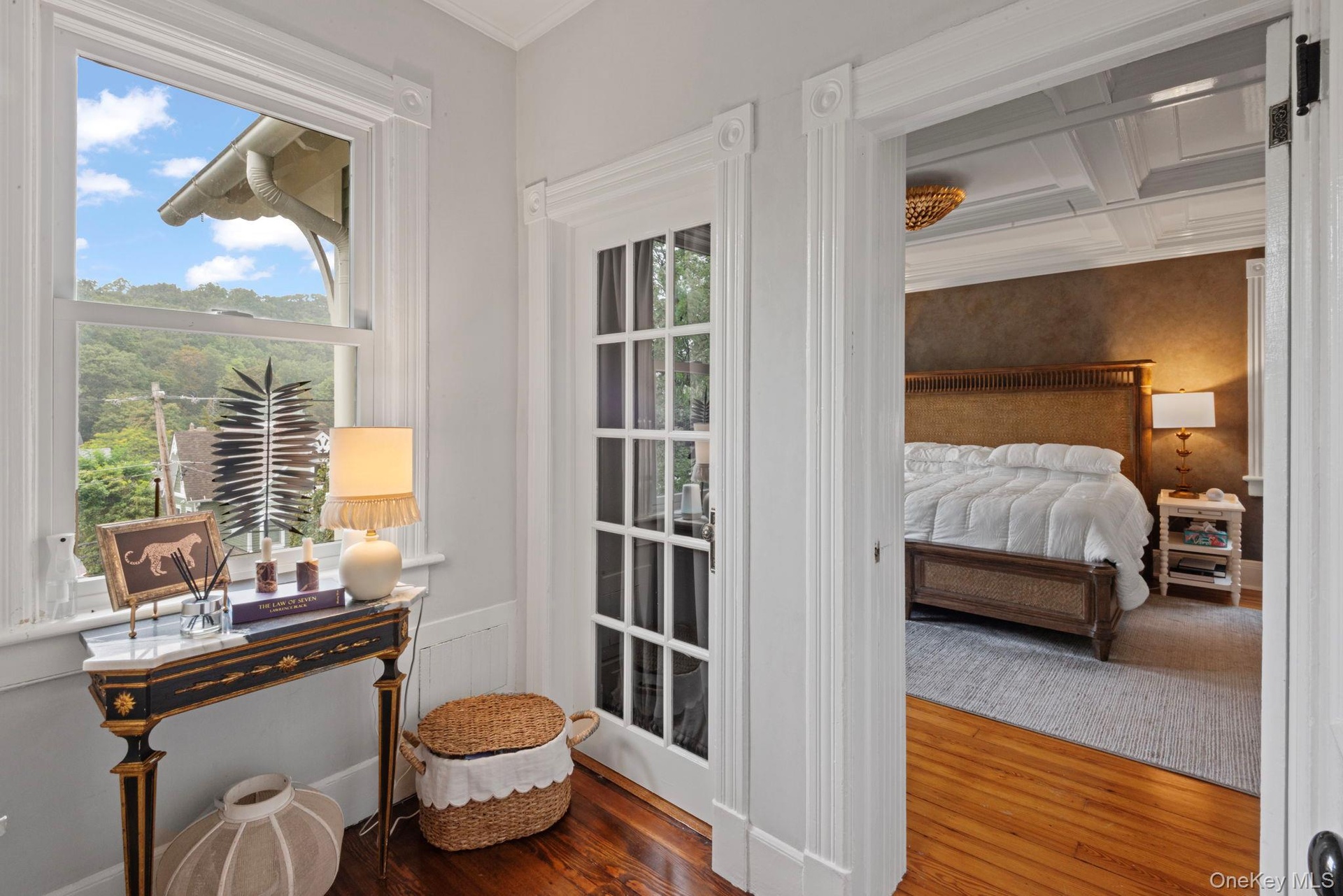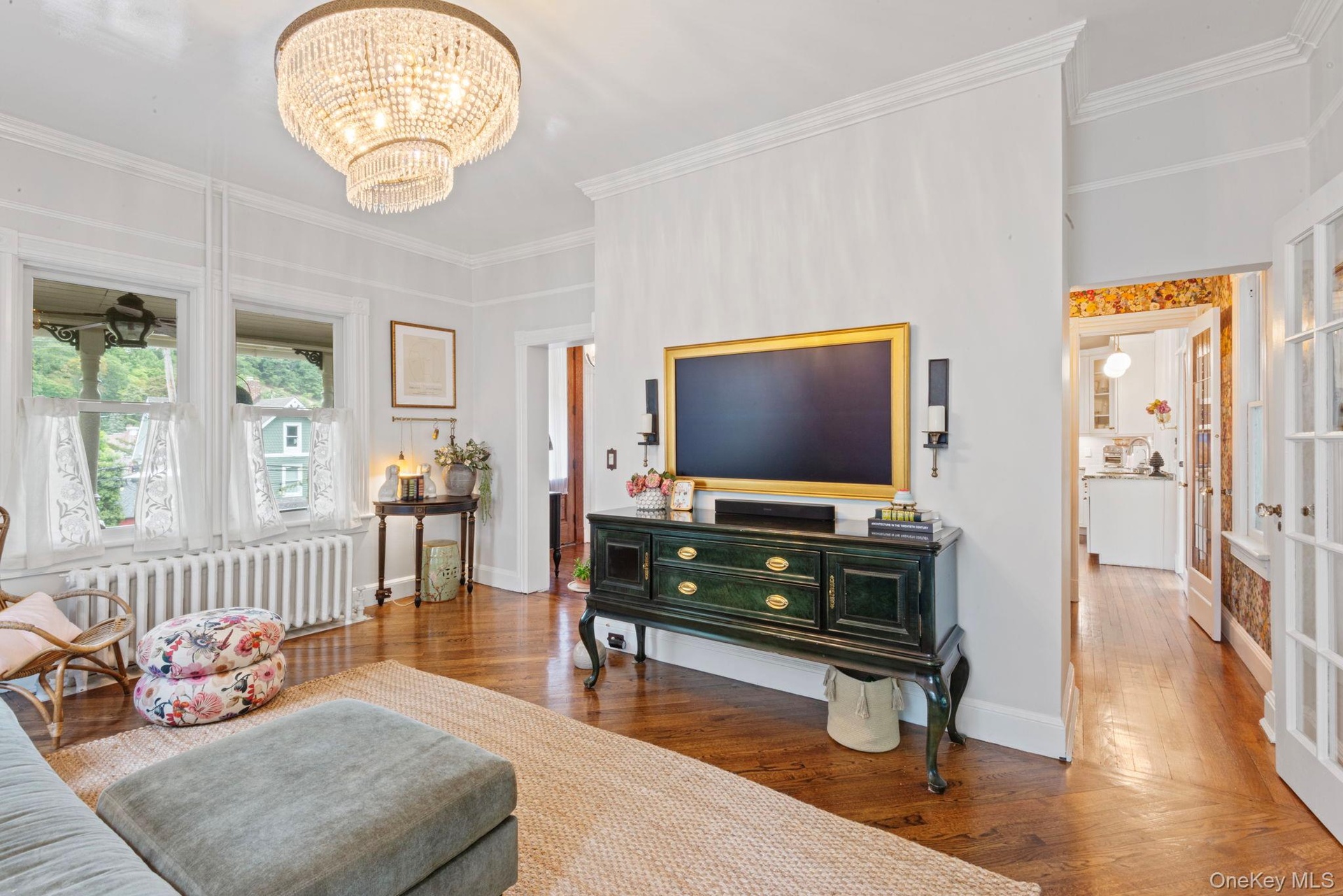 This rare antique Victorian in Northport Village blends historic charm with modern convenience. Built-in 1896, this architectural gem features 10-ft ceilings, original molding, hardwood floors, tin ceilings, and stunning craftsmanship. The main level boasts a living room, sitting room, sunroom, full bath with clawfoot tub, and an open kitchen-dining area with stainless steel appliances and granite countertops. Upstairs, three spacious bedrooms, a full bath, and a primary suite with a coffered ceiling, Venetian plaster walls, and ample storage. The outdoor space includes a covered mahogany porch, fenced courtyard, koi pond, and a bluestone patio. Private parking for three cars is accessible via a deeded road. With brand-new windows, natural gas, CAC & public sewers, this is a rare find just one block from Main Street’s restaurants, shops, and parks!