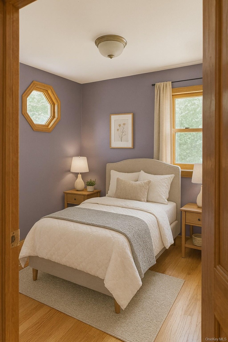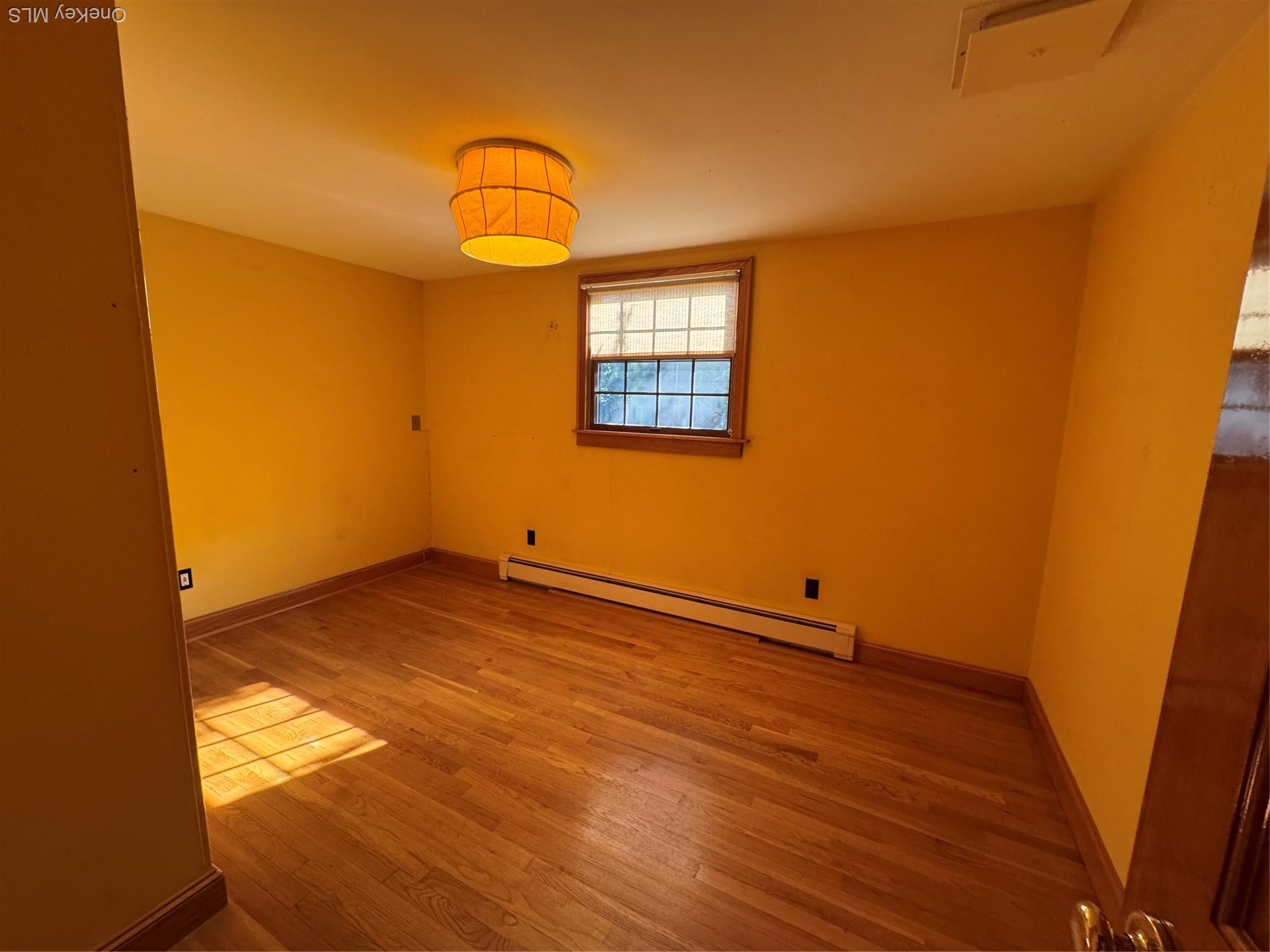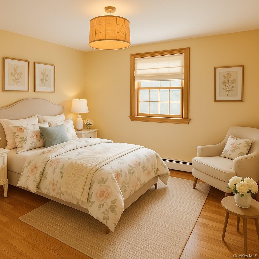 - Virtually staged Primary Bedroom with wood finished floors and baseboard heating