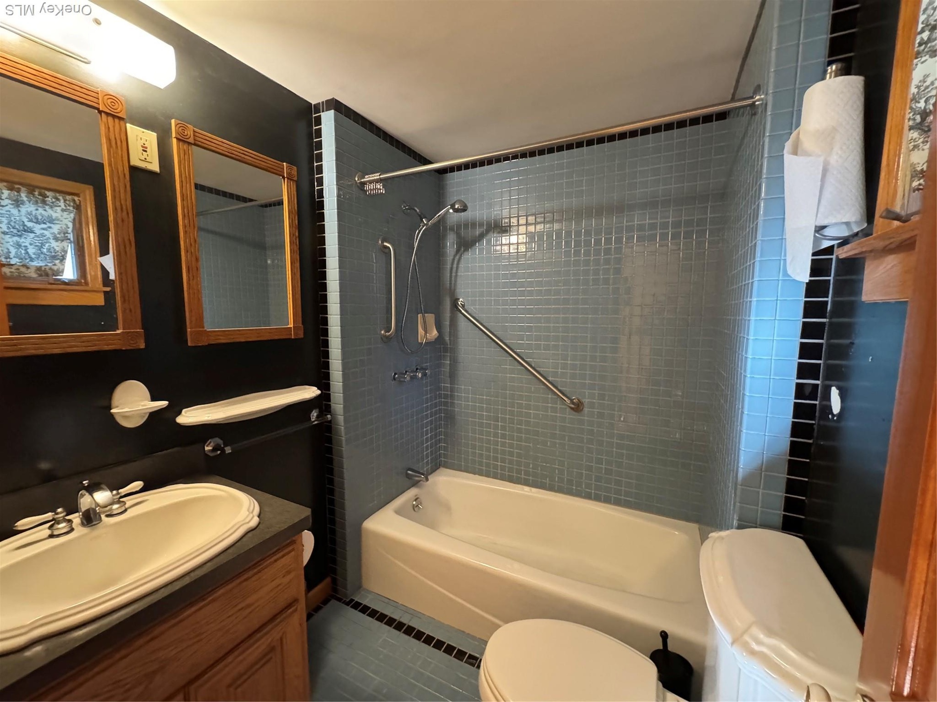 - Primary ensuite Full bathroom featuring tub / shower combination, vanity, and tile patterned flooring
