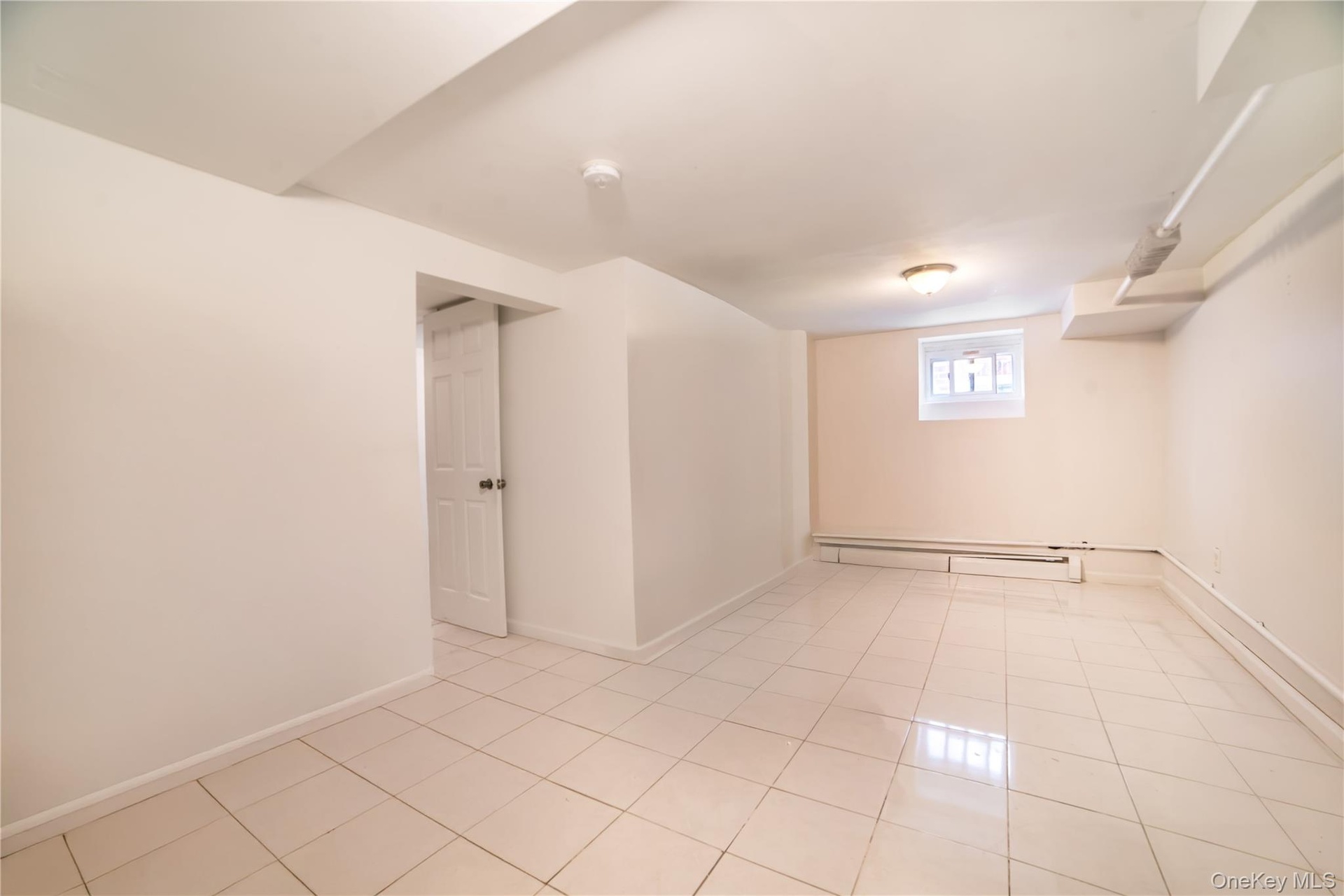- Unfurnished room featuring light tile patterned floors and a baseboard radiator