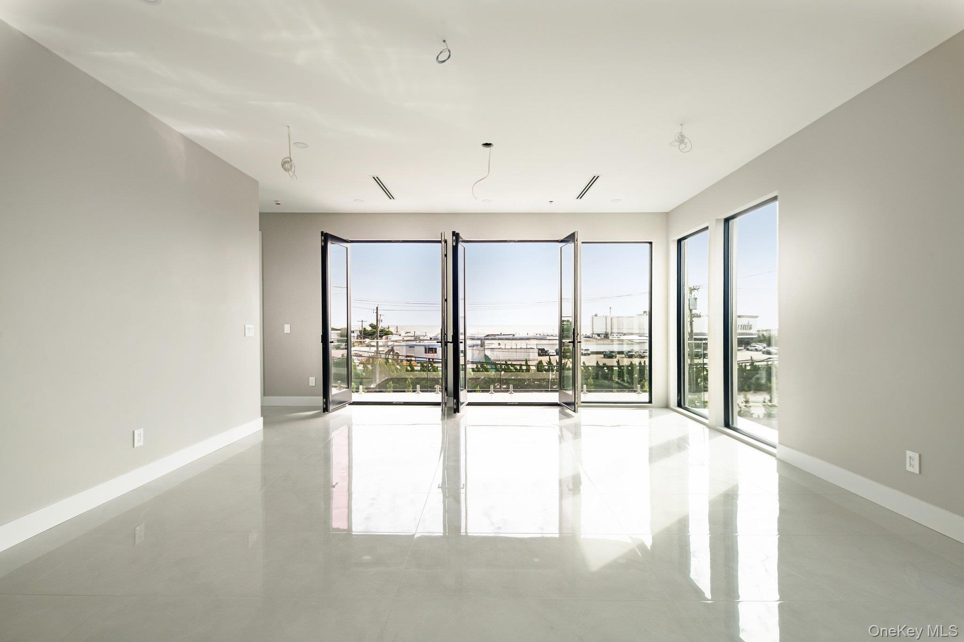 - Empty room with light tile patterned floors and healthy amount of natural light