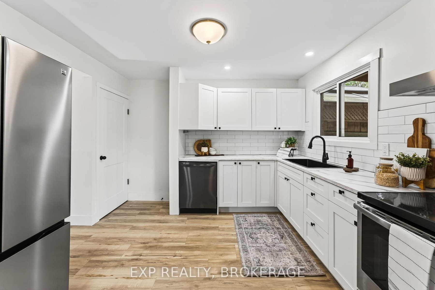 Welcome to this beautifully updated 2-storey semi-detached home, thoughtfully renovated from top to bottom with modern finishes, warm tones, and functional design throughout. Step inside to discover a bright and inviting layout featuring a stunning brand-new kitchen with sleek black fixtures, tile backsplash, and additional pantry. The open-concept dining area offers plenty of space for entertaining, with sliding patio doors that lead to the backyard. Upstairs, you'll find 3 spacious bedrooms including an oversized primary. The full bathroom has been tastefully remodelled with modern tile work and clean, neutral finishes. The lower level is fully finished and offers excellent potential for additional living space, and features a cozy gas fireplace and half bathroom. Additional updates include new flooring throughout (carpet free home), all-new interior doors and trim, pot lighting and modern fixtures, paint, and appliances. Perfectly located in a family-friendly neighbourhood close to schools, parks, shopping, and public transit, all you need to do is move in. Whether you're a first-time buyer, investor, or downsizing, this move-in-ready home checks all the boxes.