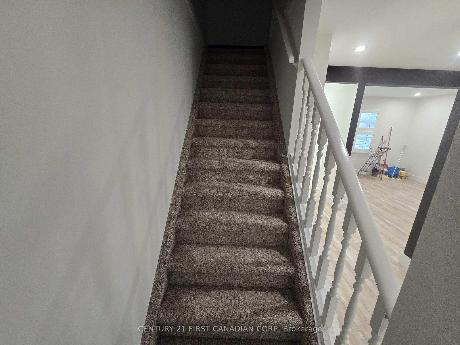 Fully updated lovely townhouse at desired byron area. this gorgeous unit has gone through complete renovation. beautiful colour choices, new paint all around, water proof vinyl flooring, led lights and pot lights all around, brand new gorgeous kitchen, quartz countertop,brand new appliances and lovely fireplace.main floor consist of living room, dining area, 2 piece powder room and lovely kitchen, second floor consist of 3 generous size bedrooms and a full bathroom. basement consist of a huge family room as well as laundry area. great neighbourhood and great school zones. it's vacant and ready for its new tenants.