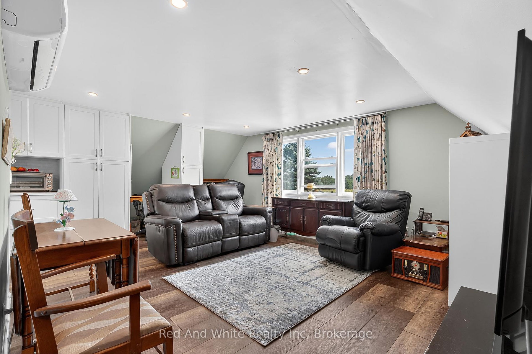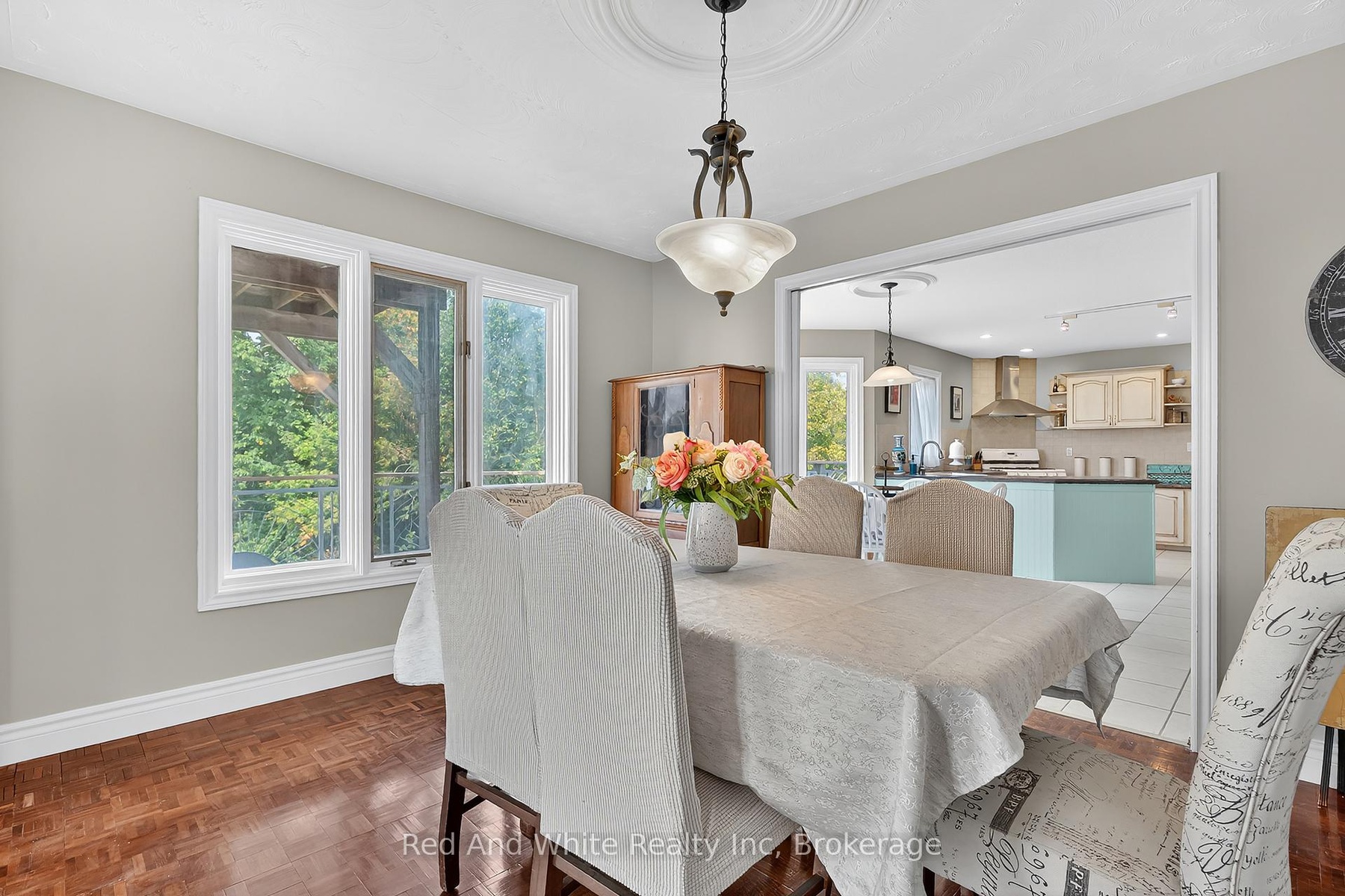 DescriptionTucked away on quiet Noah Roadjust 15 minutes from North Waterloothis one-of-a-kind homestead sits on 1.75 acres, bordered by farmland and a babbling brook. With three self-contained living spaces, its ideal for multi-generational living, offering room for parents, kids, and extended family to share the same home while still enjoying privacy.The main house spans over 3,900 sq. ft. A covered porch leads to a large foyer with 2-pc bath, walk-in closet, and office (or main-floor bedroom). The huge living room with wood fireplace is perfect for gatherings, while the spacious dining room flows into an eat-in kitchen with rustic cabinetry. Walls of windows overlook a wrap-around deck with views of the creek and trees. A mudroom, 3-pc bath, and garage with storage complete the main level.Upstairs, the primary suite features an ensuite and private balcony. Two additional bedrooms share a 4-pc bath, plus theres upper-level laundry.The basement offers a bright, full apartment with walk-out, two bedrooms, living room with electric fireplace, kitchen, laundry, and its own entrancesperfect for independent living or easy access to the main home.Above the garage, the newly renovated in-law suite includes a kitchen, living room, bedroom, 3-pc bath, office space, and laundry.Outdoors, theres green space to play, a creek to explore, farmland on one side, and friendly neighbours on the other. The large drive-through driveway easily parks 10+ vehicles.At 7146 Noah Rd, everyone can have their own private space while still coming together under one roof. When home means family, this is the place to be.Amenities- Accessory Apartment
