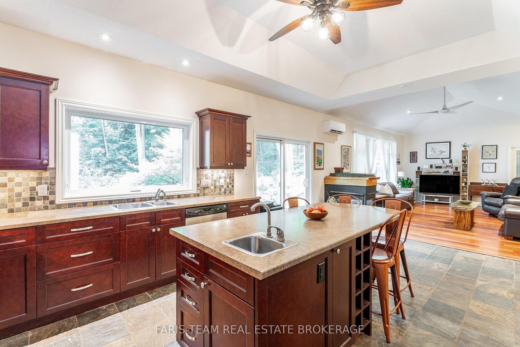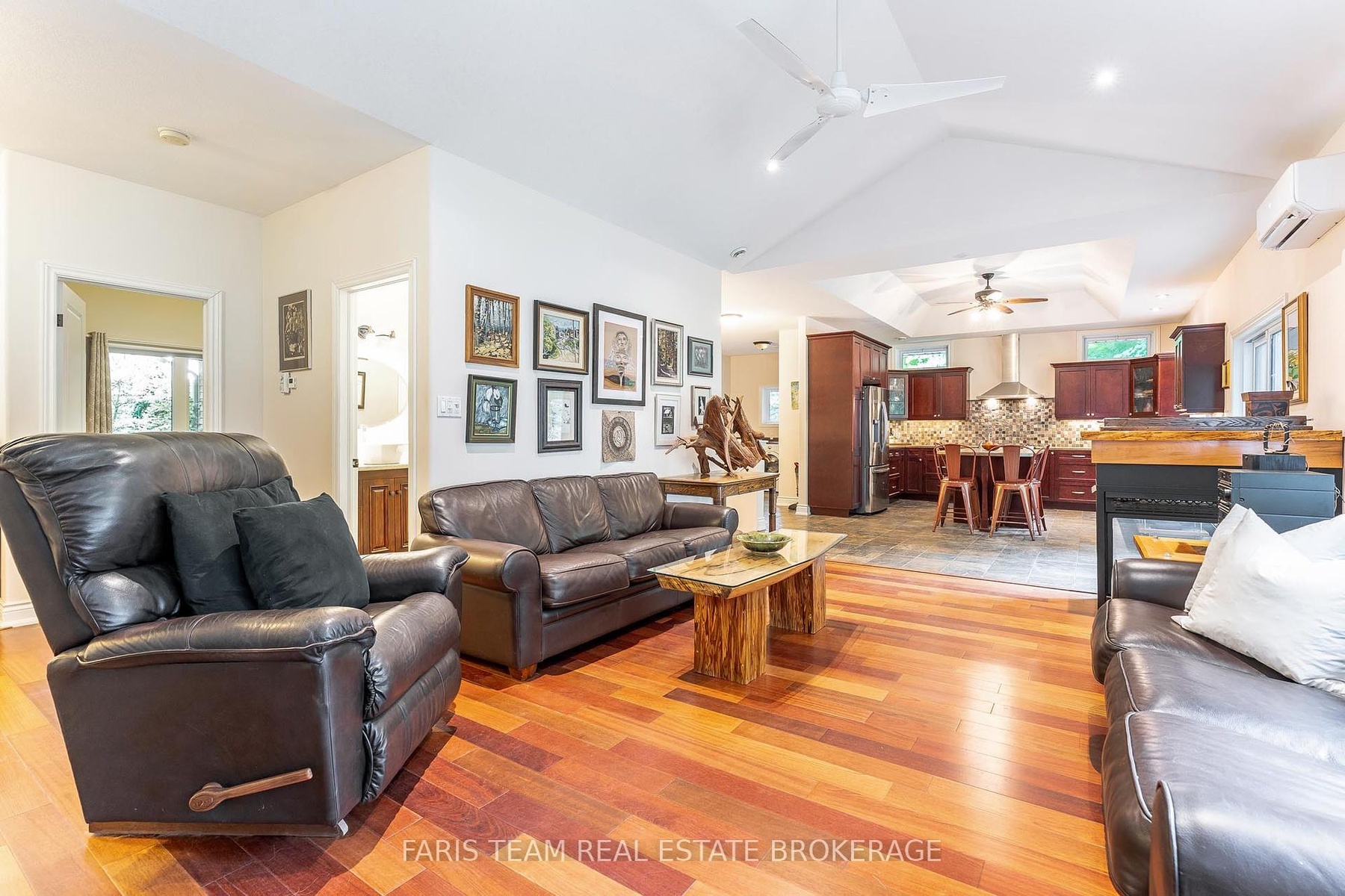 DescriptionTop 5 Reasons You Will Love This Home: 1) Live in the quiet, highly sought-after Gilwood Park area with serene water views and deeded water access, just minutes from the amenities of Penetanguishene and Midland 2) Exceptionally well-built home featuring vaulted ceilings, hardwood floors, recessed lighting, in-floor heating with separate zone controls, heated floors in the insulated two-car garage, indoor and outdoor faucets- including the garage sink, invisible dog fence, ductless air conditioning, rough-in for generator, and a complete softener system 3) New 2+ car detached shop built in 2021, fully insulated, steel-beamed, electrified, and heated with 240-volt service, perfect for the hobbyist or a workshop 4) Beautifully landscaped front and back gardens, mature trees, and a peaceful stream at the lots edge, all set on nearly an acre 5) Enjoy the freshly paved driveway welcoming you home, leading to an expansive property where open space and lush surroundings create a beautiful move-in ready package. 1,687 above grade sq.ft. plus a finished basement.Virtual Tour: https://youtu.be/TgdgENCp8yAAmenities- Air Exchanger