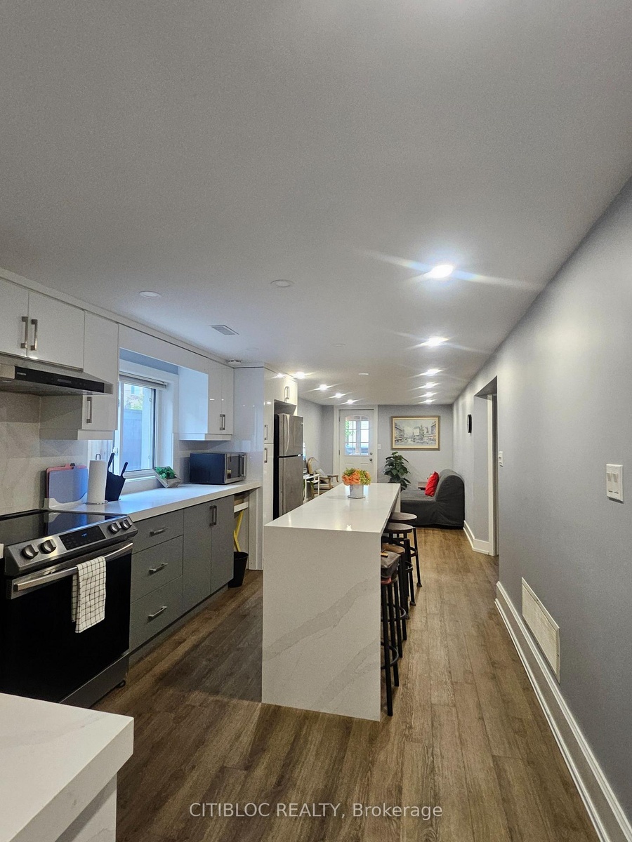 Welcome to this beautifully renovated lower-level apartment featuring a modern design and thoughtful upgrades for comfortable living. The open-concept layout is highlighted by sleek laminate flooring, a contemporary kitchen with premium appliances, and large windows that fill the space with natural light. Added conveniences include in-suite laundry and one parking spot on the driveway. Tenant is responsible for 1/3 of utilities. Pls note that tenants have to share washer and dryer with the landlord. Dont miss the opportunity to call this stylish apartment your new home!