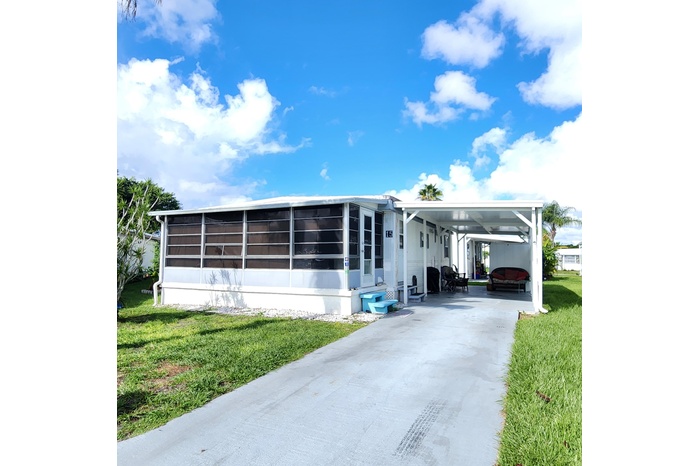 DescriptionCharming 2 bedroom/1.5 bathroom on a cul-de-sac. Furnished home with a large Florida room perfect for a home office, 2nd living room, pet or plant room!! AC is 2022 and roof was sealed/coated in 2022. Living room & guest bedroom flooring replaced. Most notable is this home is nestled in a peacefully quiet, yet active, 55+ community. You will be pleased w/ this prime location; close to the beach, mall, grocery stores, shopping, post office, banks, pharmacies, hospitals & more. Lot lease of only 842.53 includes security, cafe, Clubhouse w/activities, lawn care, trash, free private golf course, bingo, heated pool, pickleball, tennis, workshop, shuffleboard, bocce, gym, library, cards, Mahjong, clubs & more! Grab your slice of paradise in the highly desired town of Port St Lucie!
