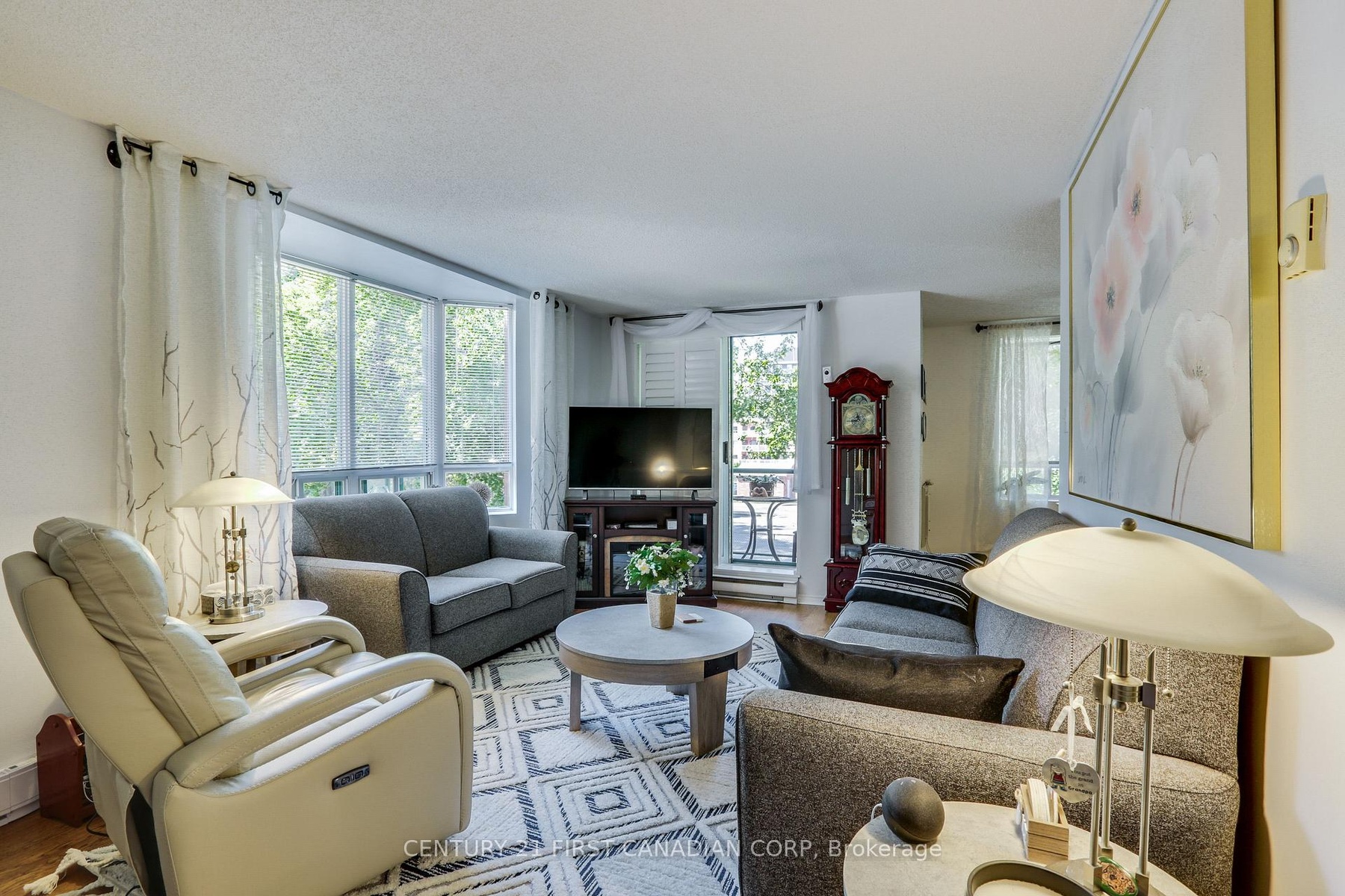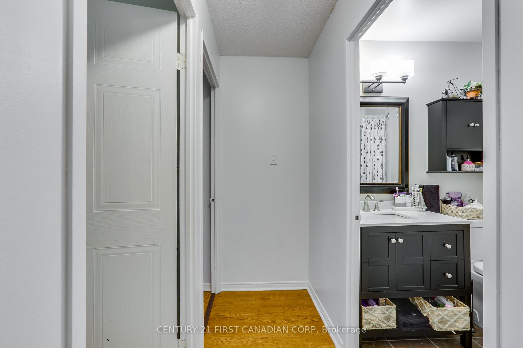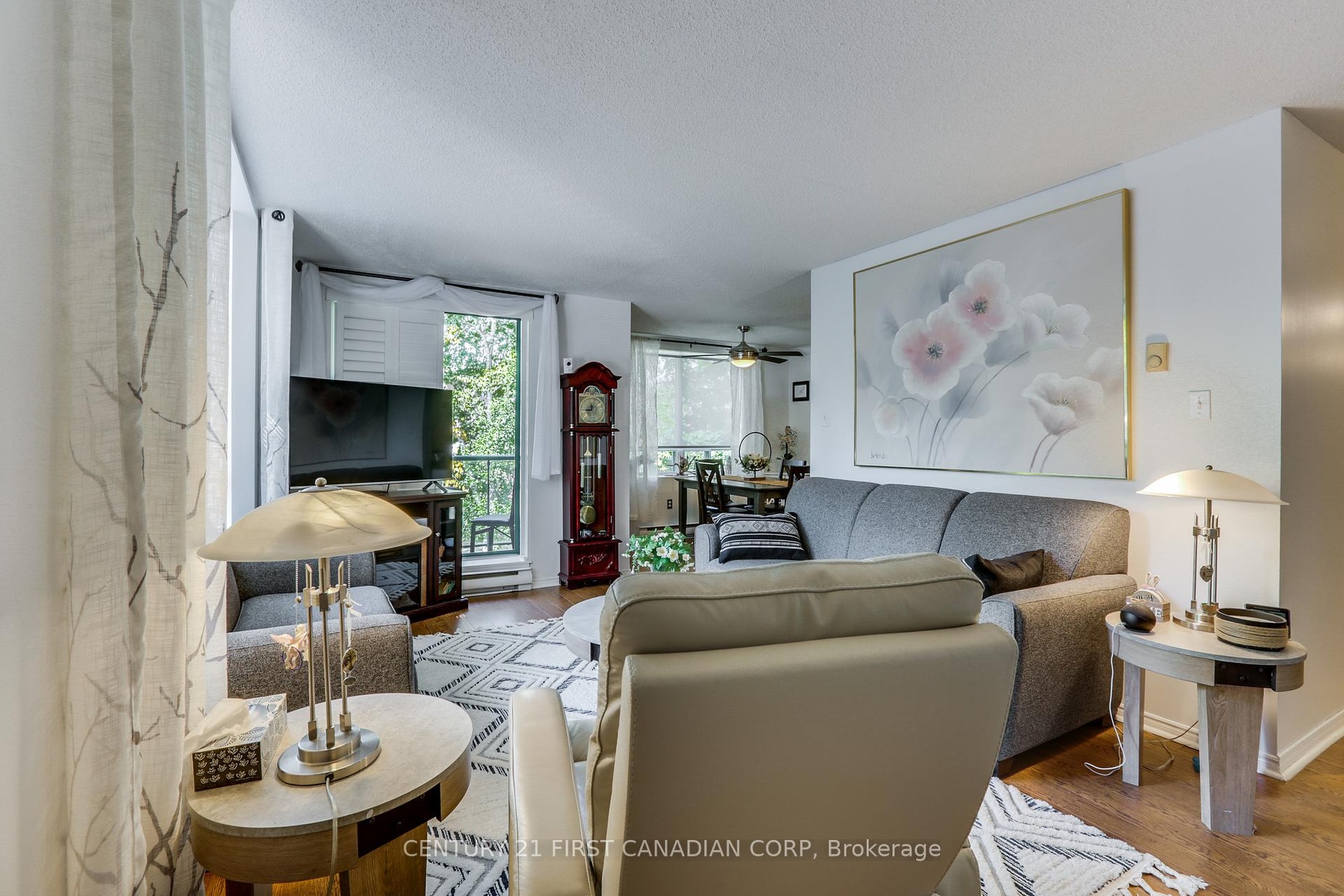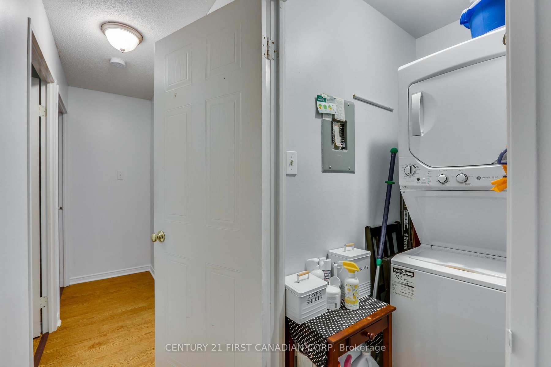 Turn-key 2-bedroom, 2-bathroom, corner unit condo in South London, Ontario! Welcome to this beautifully maintained second-floor condo corner unit at 201-76 Base Line Rd. W. Bright and inviting with a large bay window and loads of natural light, this carpet-free home offers plenty of upgrades throughout. The kitchen features refaced cabinetry, quartz countertops, a stylish backsplash, soft-close cupboards, and a custom pantry. Both bathrooms were updated in 23' with modern vanities, while the unit also boasts new laminate flooring 20'. Custom built-in storage with sleek sliding doors is found in the foyer and along the full width of the living room, adding both function and style. California shutters added in 23' in the bedrooms and patio door further enhance the space. Step out to a generous private balcony to enjoy the outdoors! The spacious primary suite offers a walk-in closet and ensuite, while convenient in-suite laundry is located in the main hallway. Building amenities include an exercise room, sauna, controlled entry, and plenty of parking. Fantastic location close to shopping, restaurants, parks, public transit, and so much more! Book your showing today!