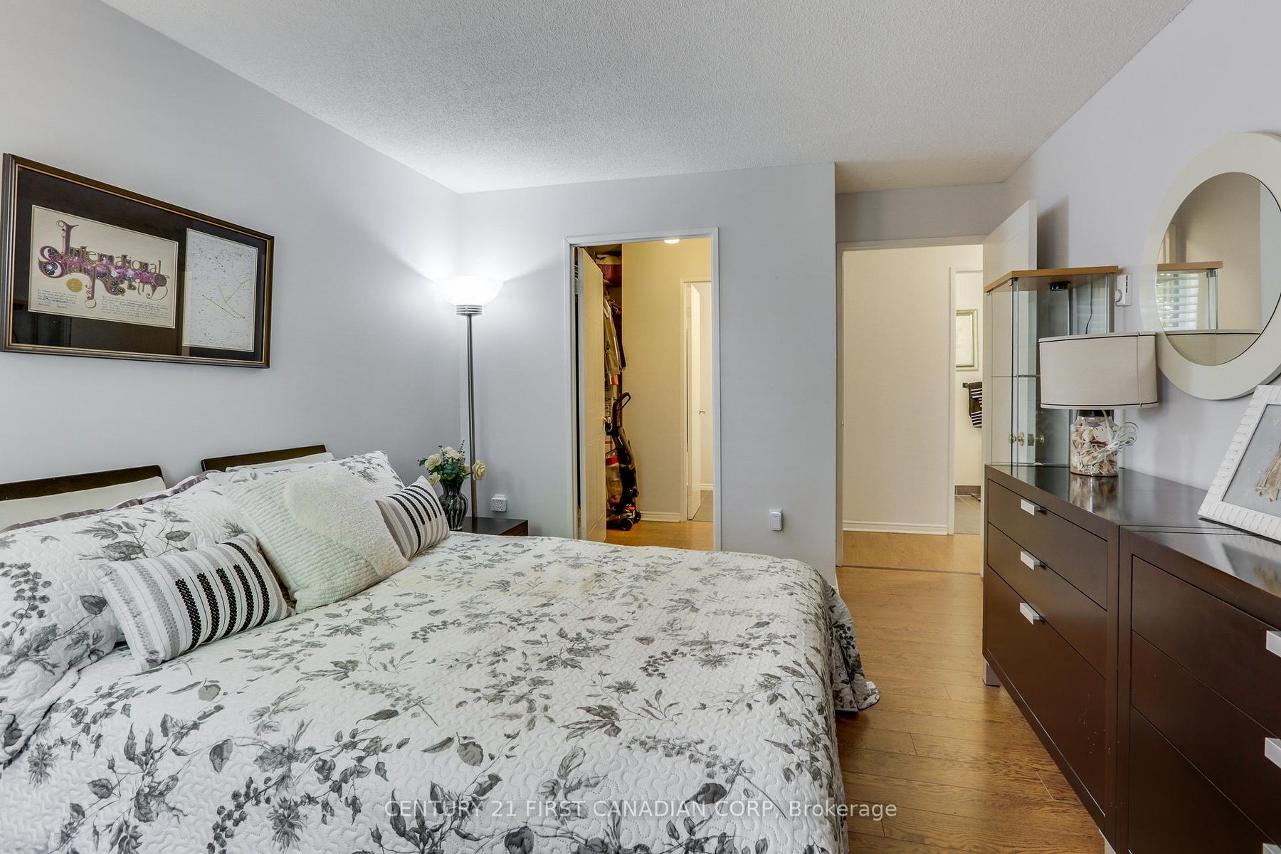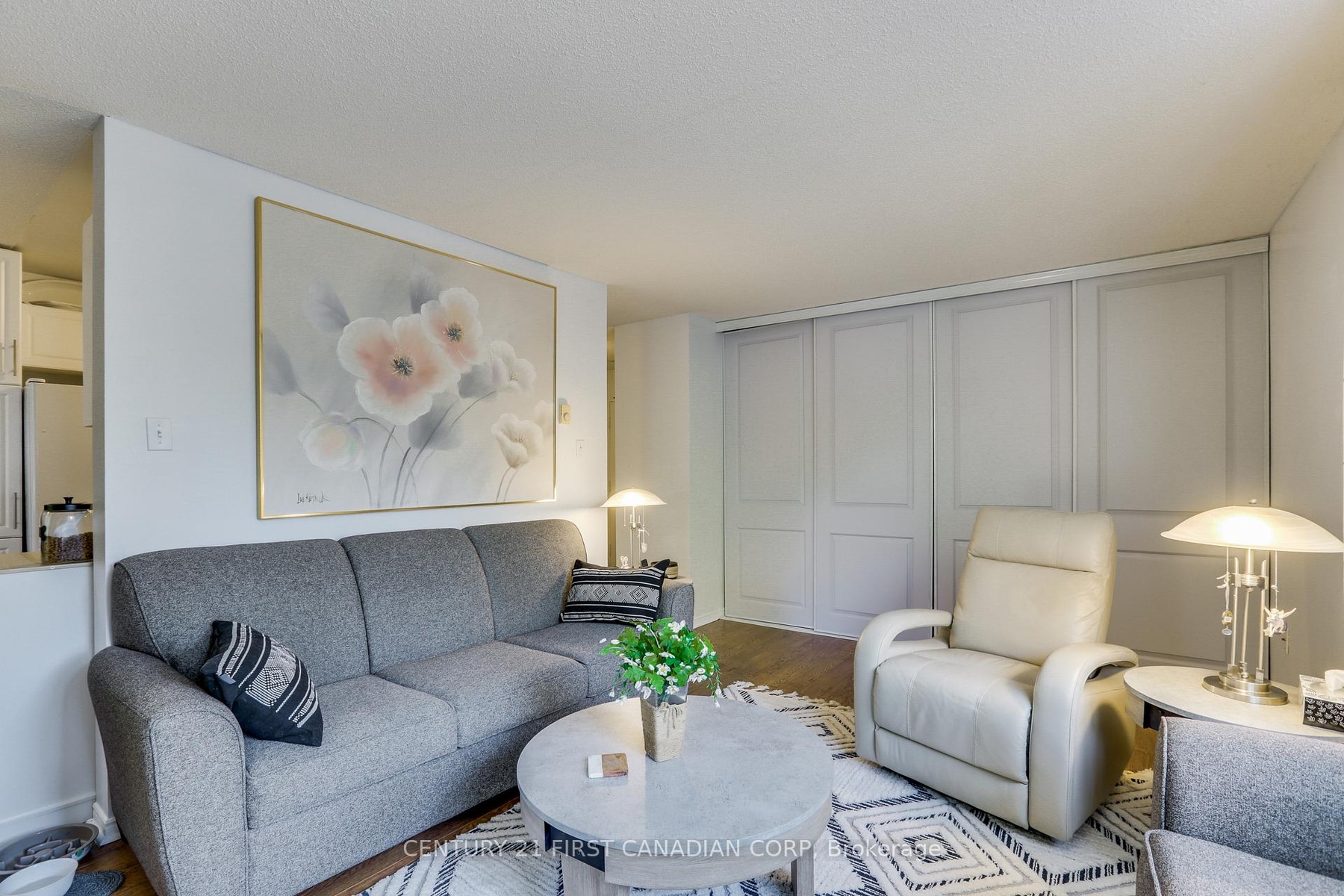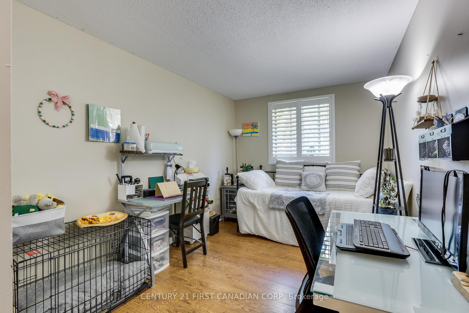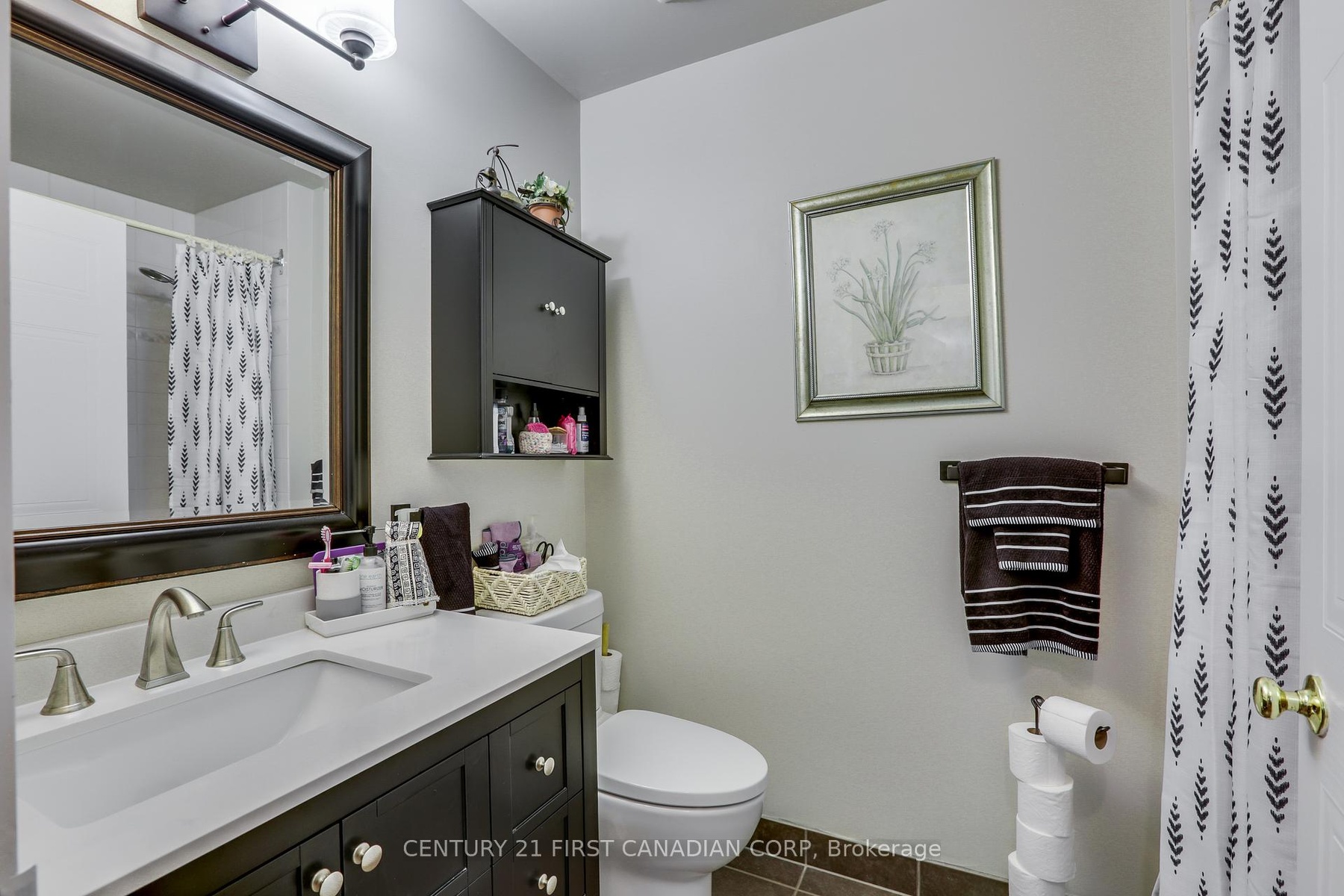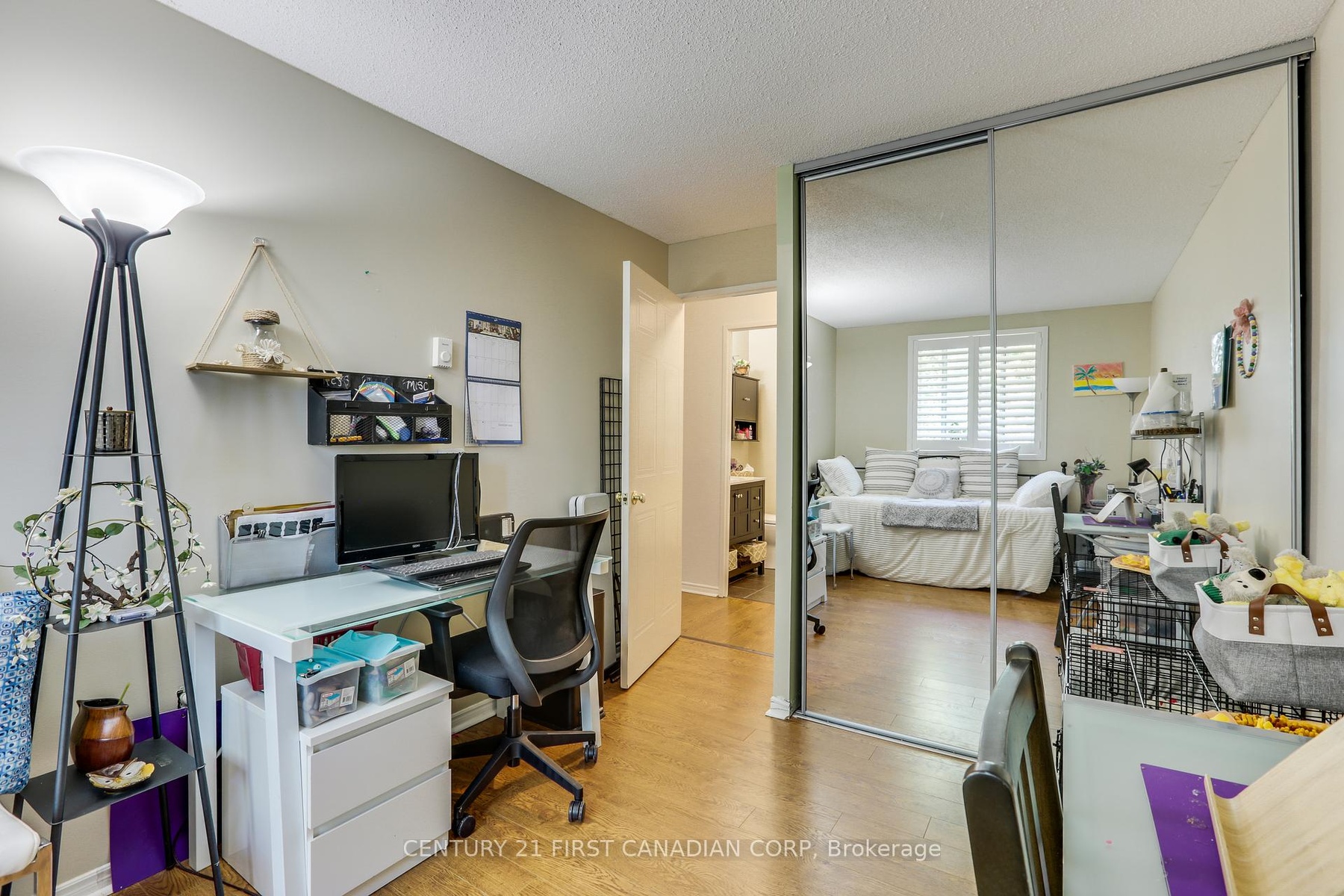 Turn-key 2-bedroom, 2-bathroom, corner unit condo in South London, Ontario! Welcome to this beautifully maintained second-floor condo corner unit at 201-76 Base Line Rd. W. Bright and inviting with a large bay window and loads of natural light, this carpet-free home offers plenty of upgrades throughout. The kitchen features refaced cabinetry, quartz countertops, a stylish backsplash, soft-close cupboards, and a custom pantry. Both bathrooms were updated in 23' with modern vanities, while the unit also boasts new laminate flooring 20'. Custom built-in storage with sleek sliding doors is found in the foyer and along the full width of the living room, adding both function and style. California shutters added in 23' in the bedrooms and patio door further enhance the space. Step out to a generous private balcony to enjoy the outdoors! The spacious primary suite offers a walk-in closet and ensuite, while convenient in-suite laundry is located in the main hallway. Building amenities include an exercise room, sauna, controlled entry, and plenty of parking. Fantastic location close to shopping, restaurants, parks, public transit, and so much more! Book your showing today!