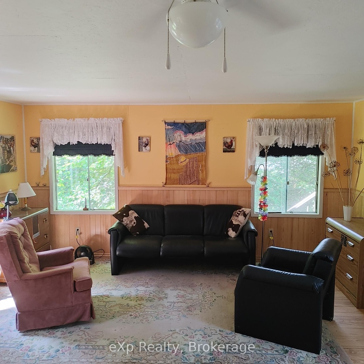 Rare Opportunity on McKellar Lake! Welcome to 32 McKellar Lake Road, a unique chance to own over 2 acres of private land with more than 115 feet of pristine western-facing shoreline. Enjoy breathtaking sunsets and lazy summer days on this sun-filled property, perfect for kids, pets, and gardens. This 1,400 sq. ft., 2-bedroom, 3-season cottage is ready for immediate enjoyment and features a septic system and lake water supply for easy living. A gutted waterside bunkie is ready to be transformed into a guest cabin, studio, or lakeside lounge. The gently sloping lot offers effortless access to clear, swimmable shoreline, ideal for boating, paddleboarding, or simply relaxing by the water. With a detached garage for storage, there is plenty of room for all your cottage toys. Whether you want a turnkey summer escape or the perfect site to build your dream waterfront retreat, this property offers lifestyle, privacy, and future potential that is hard to find.