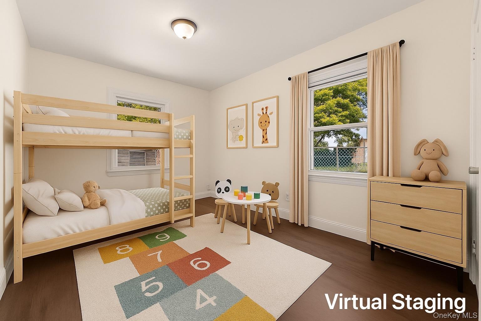 - Bedroom featuring multiple windows and dark wood finished floors