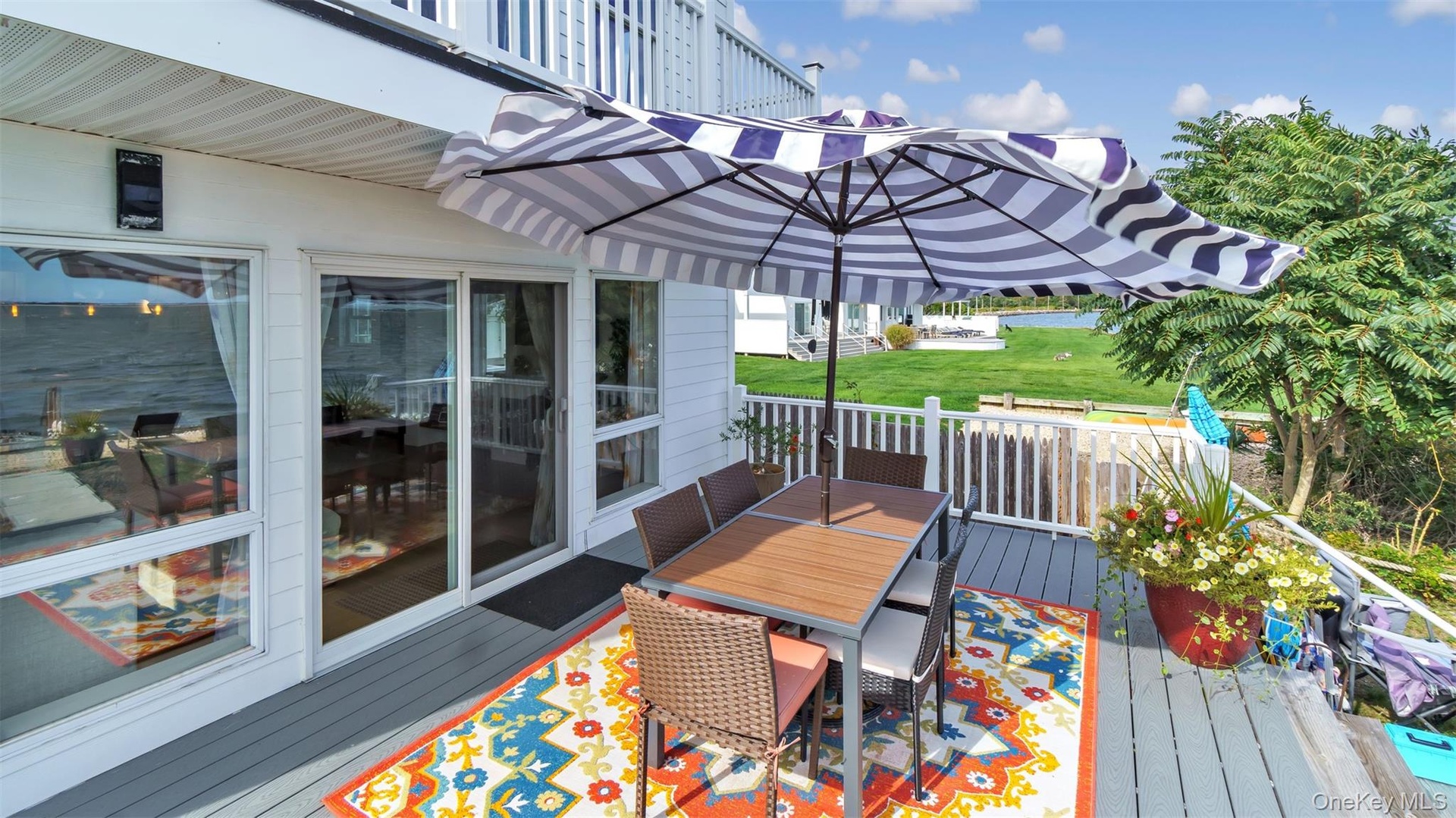 - Trex Deck with a water view and outdoor dining area