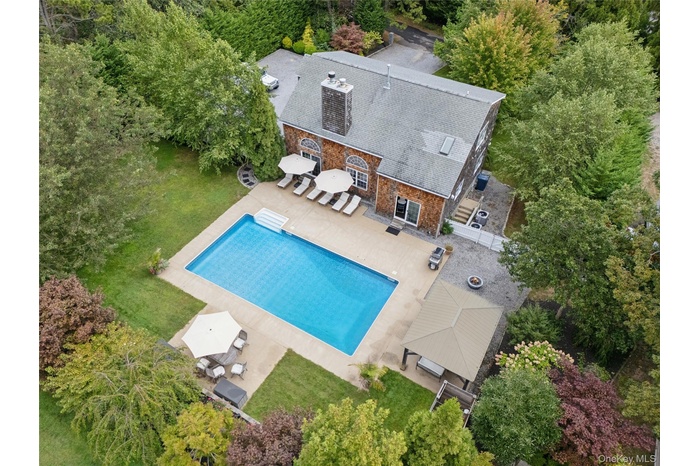 Discover the charm of this contemporary four-bedroom home nestled on nearly one acre of private land. A haven of relaxation awaits, with a heated inground pool and a gazebo adorned with lounge chairs in the expansive backyard. Inside, you'll be greeted by a warm living room featuring cathedral ceilings, hardwood flooring, and a wood-burning fireplace that creates a cozy atmosphere. The main floor includes a comfortable bedroom for convenience and an additional office space for productivity. The spacious kitchen boasts granite countertops, gas cooking, and a large island that seats four, perfect for casual breakfasts. A separate dining area accommodates eight, making it ideal for entertaining guests. On the second floor, a luxurious master suite awaits, complete with an elegant full bathroom featuring both a soaking tub and a separate shower. Two additional bedrooms and another full bath complete the upstairs layout. Laundry facilities are conveniently located in the basement, which also offers outside access. Whether you're seeking a tranquil summer retreat or planning to attend the US Open or the Hampton Classic, this delightful home serves as an ideal getaway. Tenant to put all utilities except for trash and water in their name during their stay. Electricity, propane, internet (if desired), landscaping. July-LD $95k. August-LD $65k. Memorial Day-Labor Day $135k.