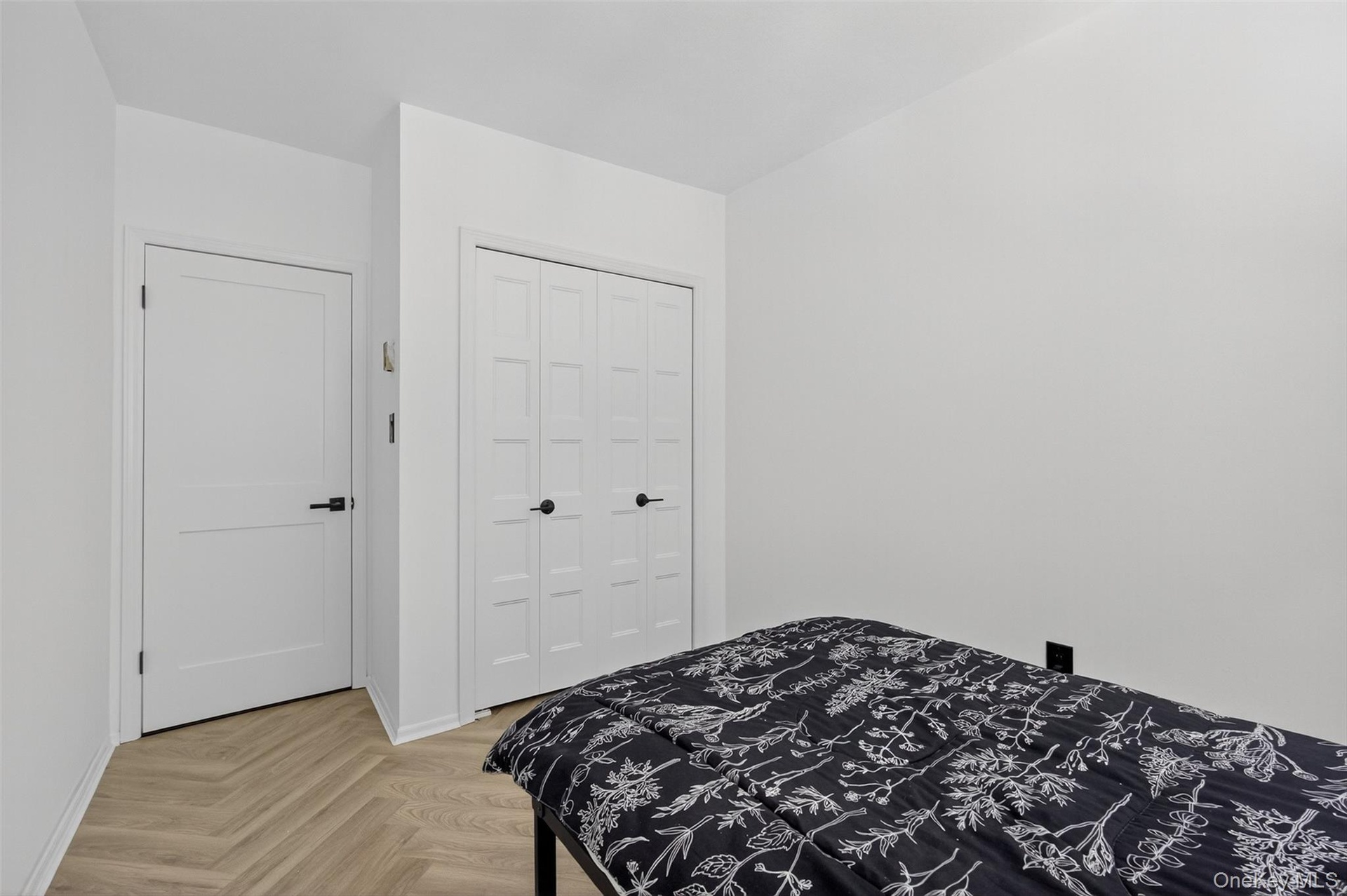- Unfurnished bedroom featuring a baseboard heating unit, recessed lighting, and multiple closets