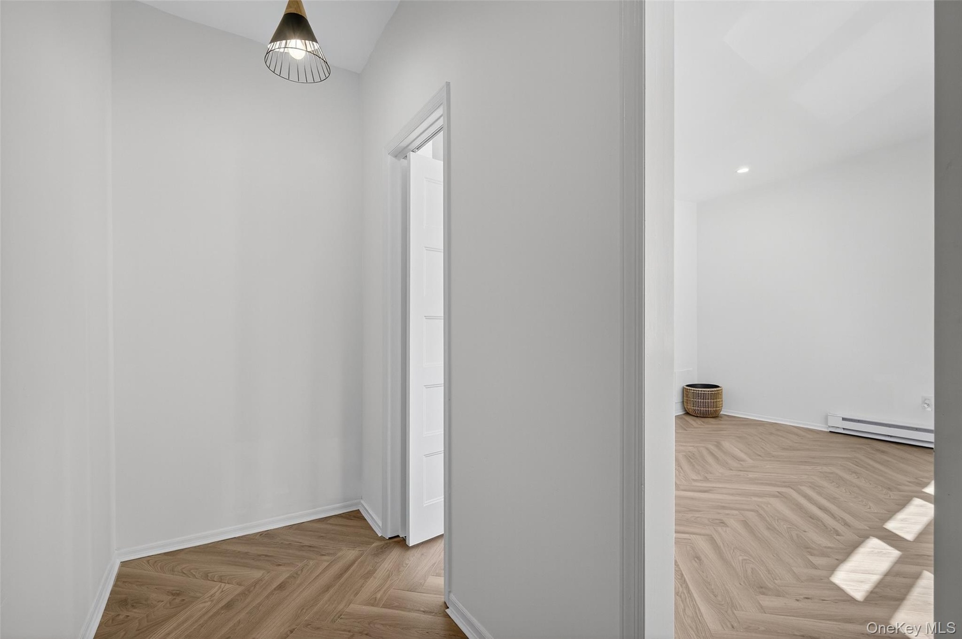 - Unfurnished dining area with a baseboard heating unit and baseboards