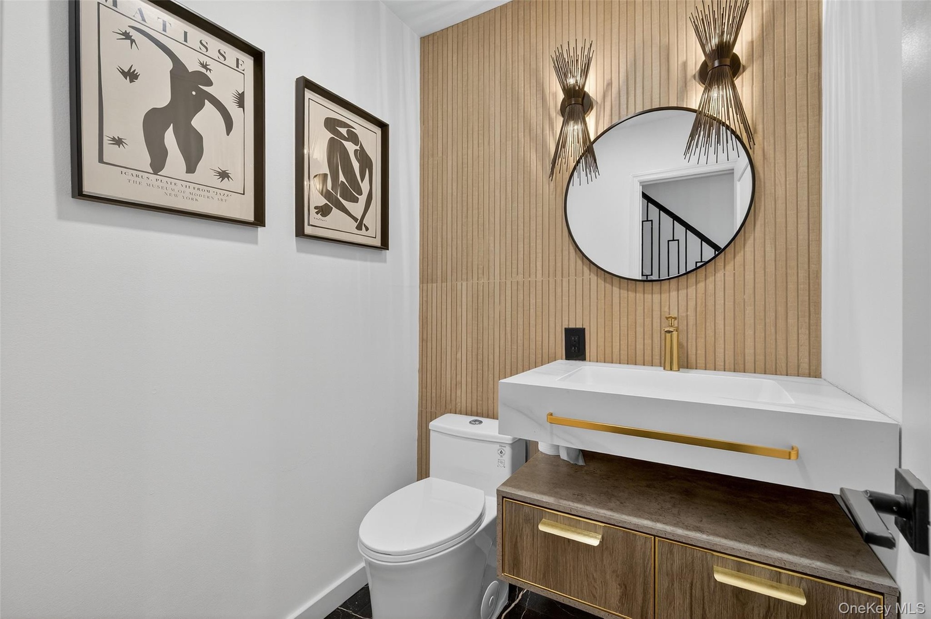 Adjacent to the living space, a repurposed boiler room now provides functional charm with its crisp tile flooring and fresh walls—an ideal storage area or flexible utility zone. The living room itself features new flooring, a sliding glass door, and a picture-perfect window that beautifully bridges indoor warmth with direct access to the outdoors. On the first floor, the new powder room captivates with bold black tile flooring and a floating vanity—a striking blend of contemporary form and everyday function.