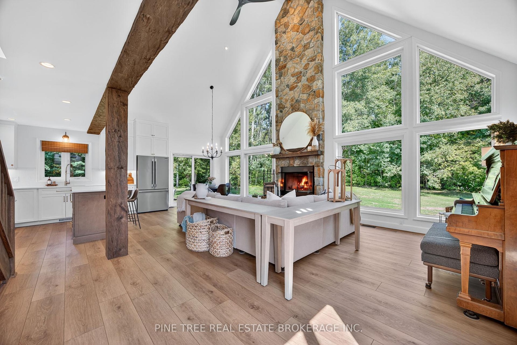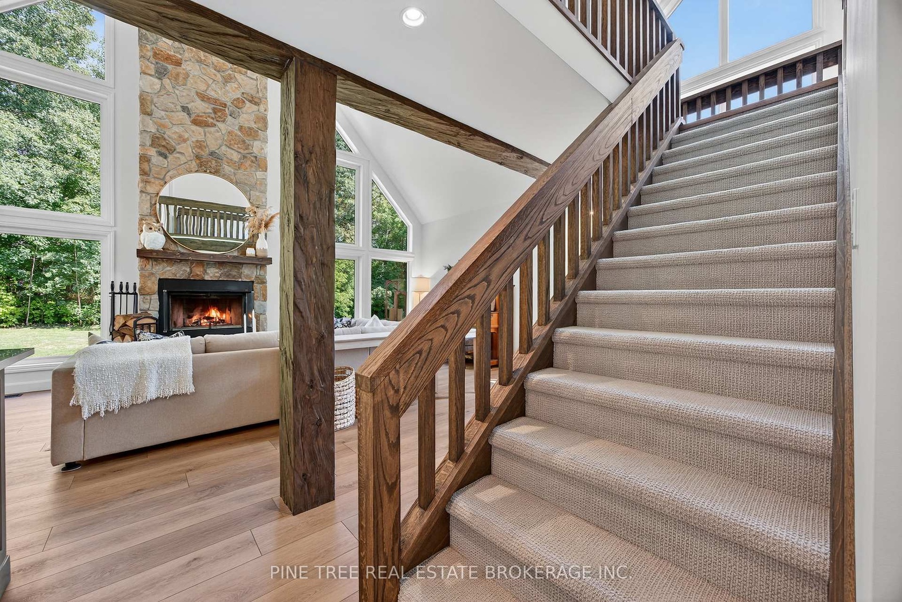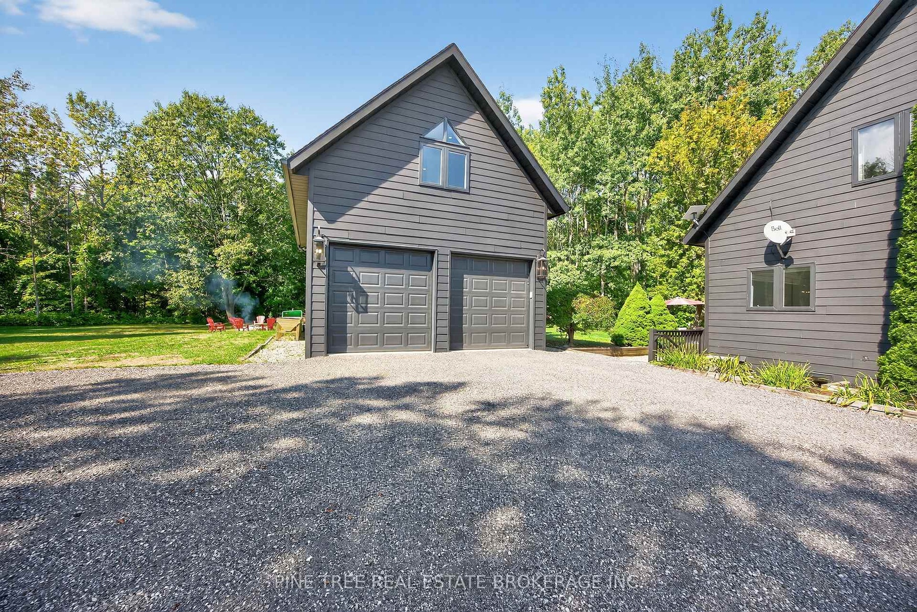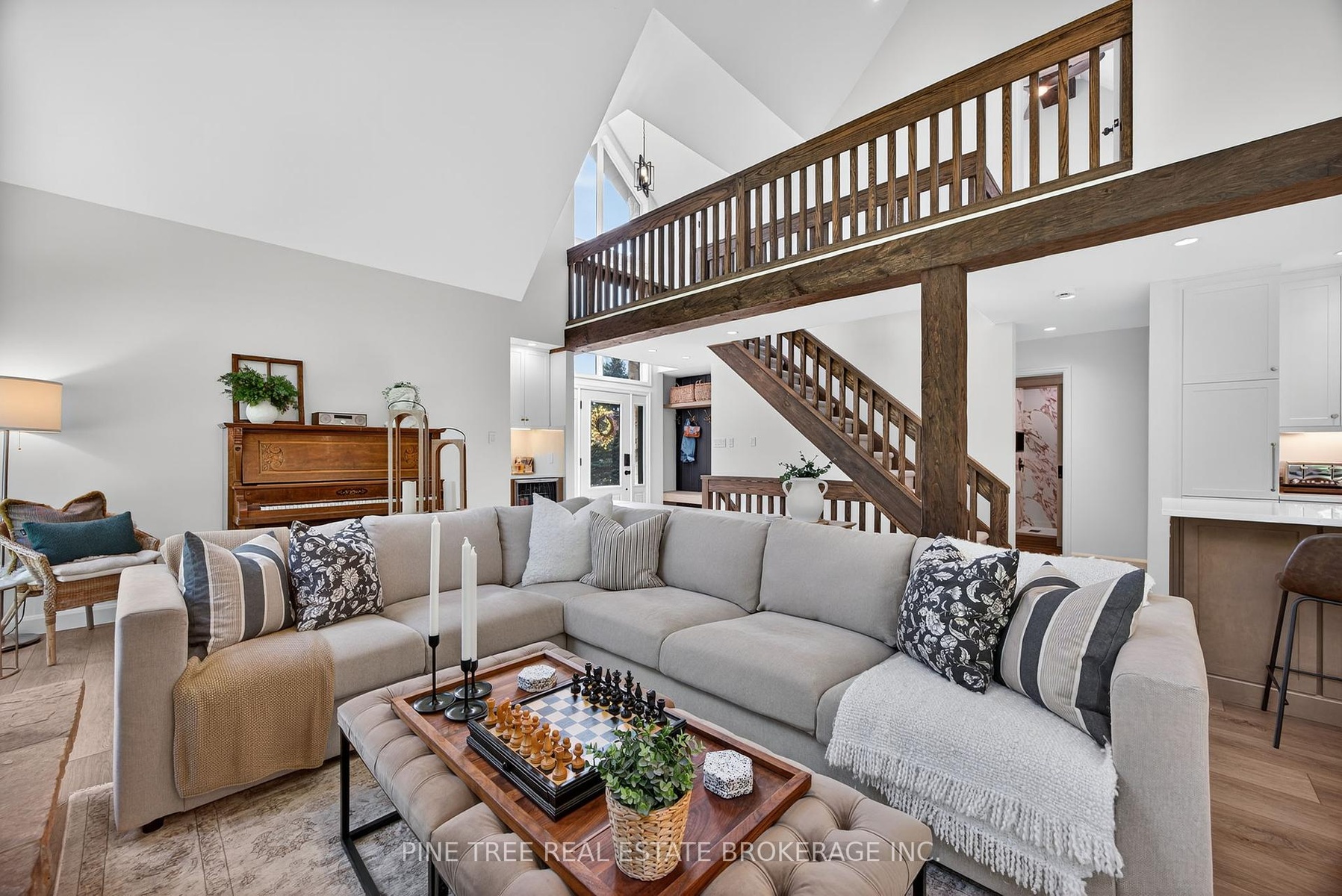 DescriptionWelcome to this stunning executive Viceroy home, fully renovated-blending timeless craftsmanship with modern luxury. Set on nearly 2 acres of manicured estate grounds surrounded by forest and apple trees, this property offers privacy, elegance, & space to live, work, & play. Inside the open-concept layout is filled with natural light, showcasing hand-hewn post-and-beam accents, custom finishes, & thoughtful upgrades. The main floor features a chefs kitchen with solid wood cabinetry, quartz counters, striking backsplash, & professional-grade appliances. A wood-burning fireplace anchors the breathtaking living room, while the formal dining area, custom bar, oak bench & shelving in the foyer, & walkout to the backyard balance rustic charm with modern design. A remodeled bathroom & 2 bedrooms complete this level. Upstairs, a breezeway overlooking the main floor leads to the luxurious primary suite, a private retreat with a spa-inspired 4-piece ensuite, upgraded closets, new flooring, & refined finishes. The lower level offers versatility with a walk-up separate entrance ideal for multigenerational living. It includes a custom laundry room with quartz counters, remodeled bathroom w/ bathtub, spacious family room, games room with pool table, & a large 4th bedroom. Additional living space is found in the fully insulated and heated 600 sq. ft. loft above the detached two-car garage, perfect as a 5th bed, office, or studio, plus a storage level. Every major system has been upgraded, including central air, a 24KW Generac generator w/ automatic transfer switch, large owned hot water tank, new water treatment system, & 3,785L propane tank. The exterior shines with fresh paint on the home and garage, resurfaced recycled asphalt driveway & new eavestroughs. Location is everything, just 7 minutes to Wasaga Beach, 15 to Barrie & close to all amenities, this estate offers the ultimate commuters dream paired with a resort-style lifestyle - where modern luxury meets rustic elegance.Amenities- Auto Garage Door Remote