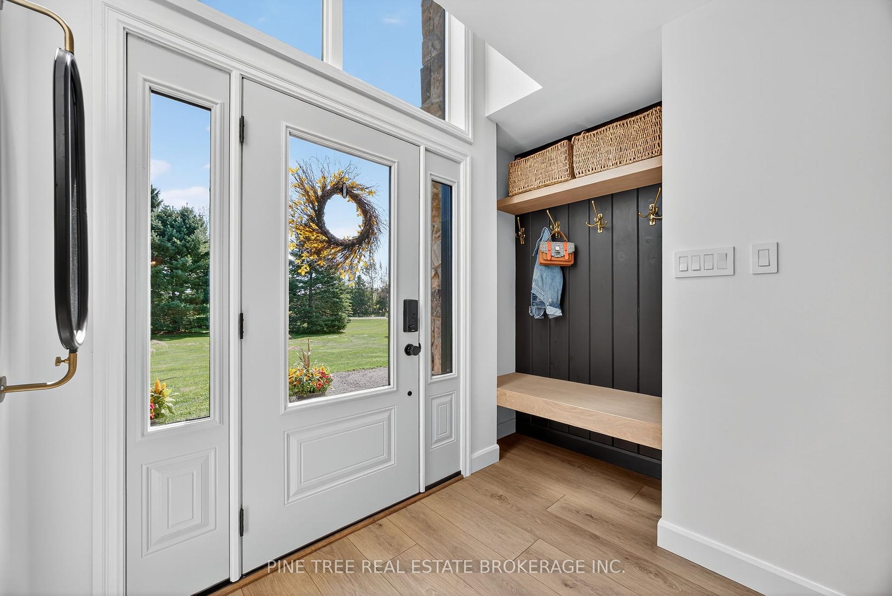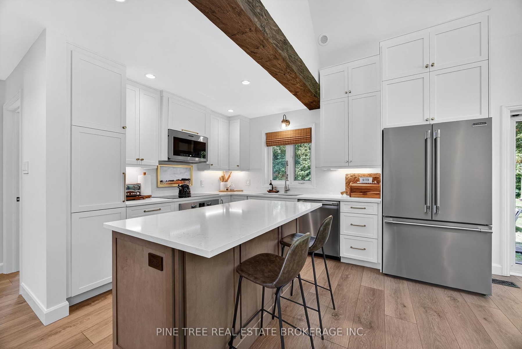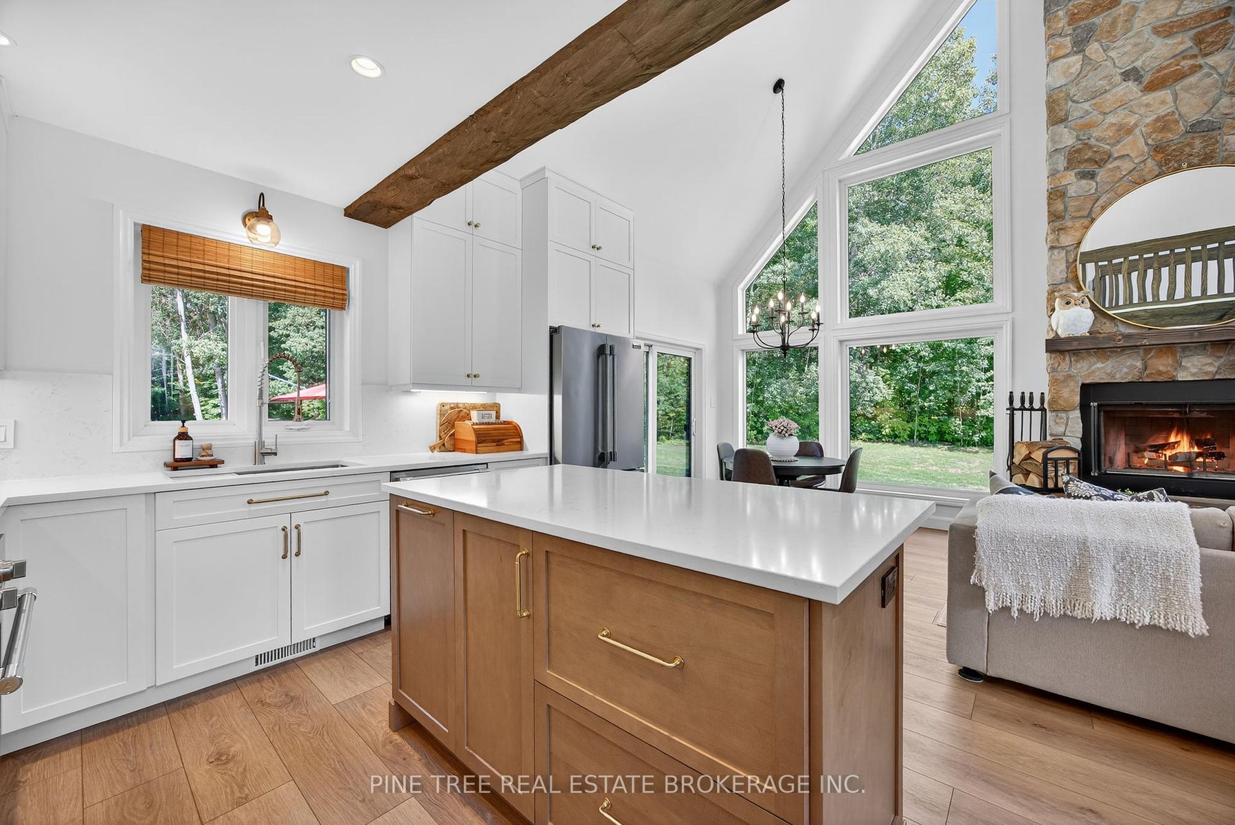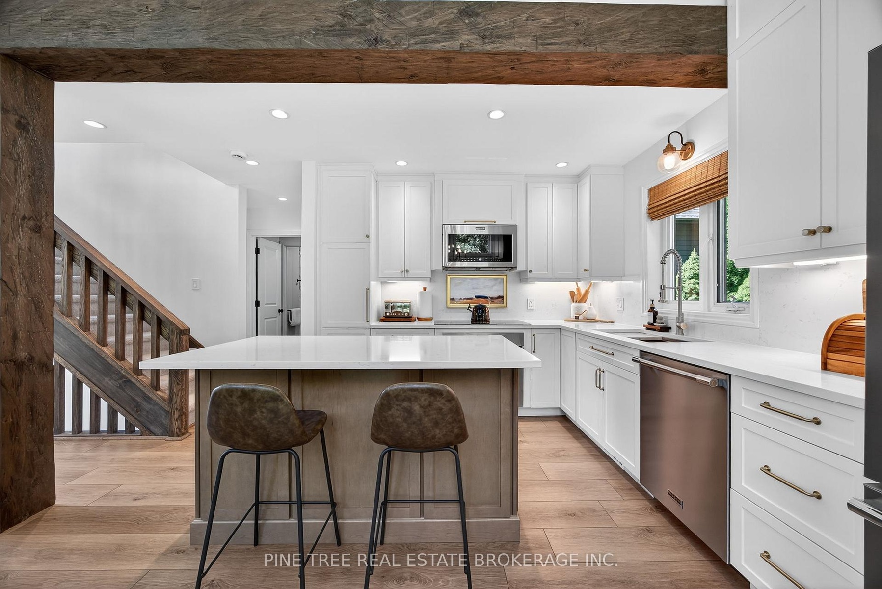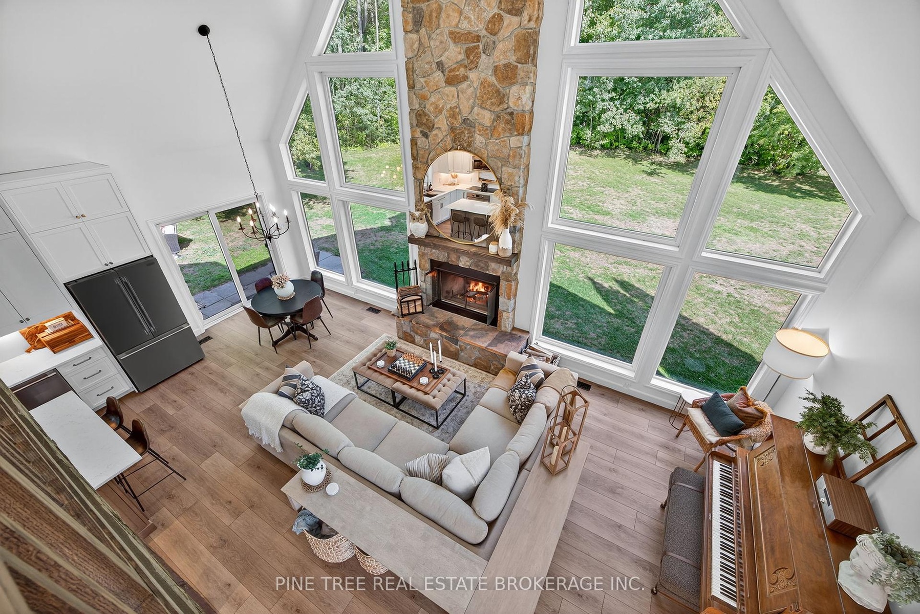 DescriptionWelcome to this stunning executive Viceroy home, fully renovated-blending timeless craftsmanship with modern luxury. Set on nearly 2 acres of manicured estate grounds surrounded by forest and apple trees, this property offers privacy, elegance, & space to live, work, & play. Inside the open-concept layout is filled with natural light, showcasing hand-hewn post-and-beam accents, custom finishes, & thoughtful upgrades. The main floor features a chefs kitchen with solid wood cabinetry, quartz counters, striking backsplash, & professional-grade appliances. A wood-burning fireplace anchors the breathtaking living room, while the formal dining area, custom bar, oak bench & shelving in the foyer, & walkout to the backyard balance rustic charm with modern design. A remodeled bathroom & 2 bedrooms complete this level. Upstairs, a breezeway overlooking the main floor leads to the luxurious primary suite, a private retreat with a spa-inspired 4-piece ensuite, upgraded closets, new flooring, & refined finishes. The lower level offers versatility with a walk-up separate entrance ideal for multigenerational living. It includes a custom laundry room with quartz counters, remodeled bathroom w/ bathtub, spacious family room, games room with pool table, & a large 4th bedroom. Additional living space is found in the fully insulated and heated 600 sq. ft. loft above the detached two-car garage, perfect as a 5th bed, office, or studio, plus a storage level. Every major system has been upgraded, including central air, a 24KW Generac generator w/ automatic transfer switch, large owned hot water tank, new water treatment system, & 3,785L propane tank. The exterior shines with fresh paint on the home and garage, resurfaced recycled asphalt driveway & new eavestroughs. Location is everything, just 7 minutes to Wasaga Beach, 15 to Barrie & close to all amenities, this estate offers the ultimate commuters dream paired with a resort-style lifestyle - where modern luxury meets rustic elegance.Amenities- Auto Garage Door Remote