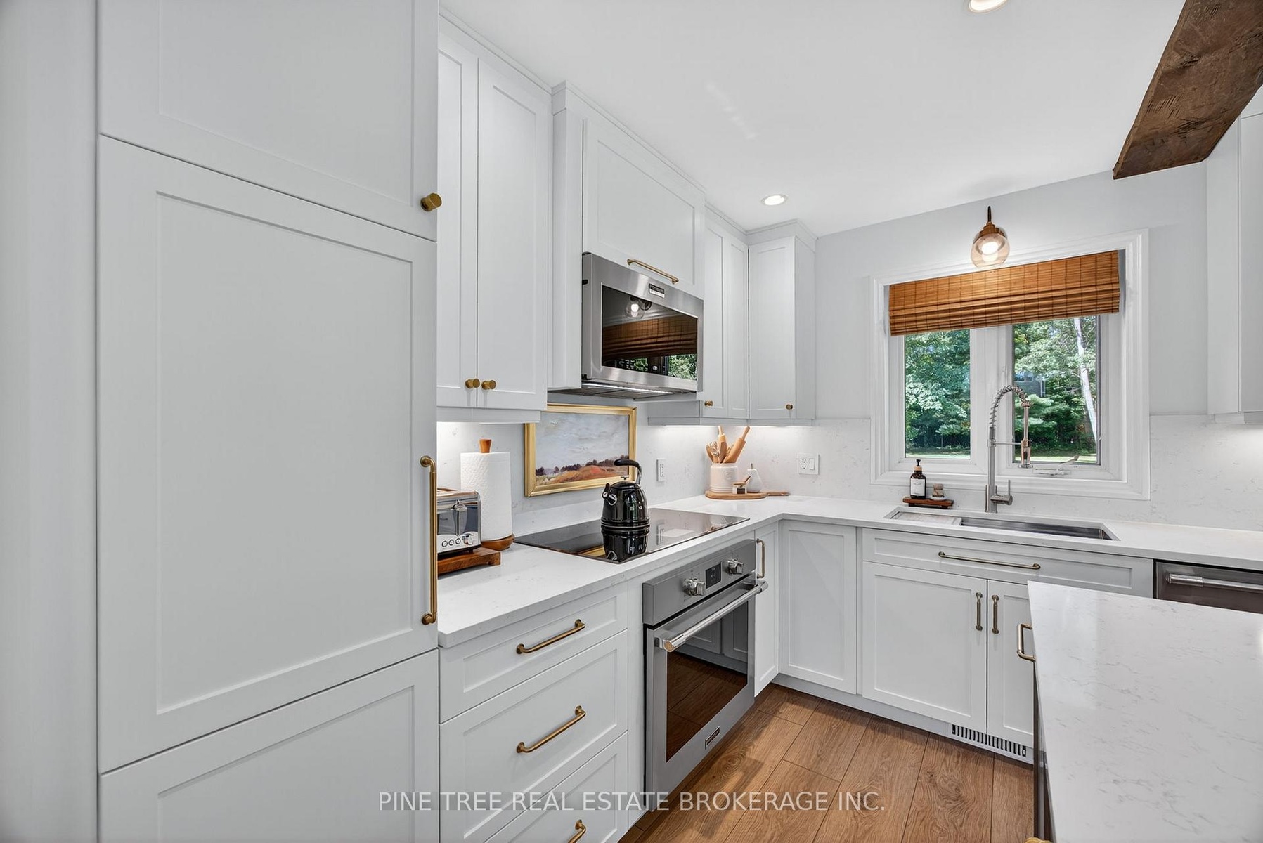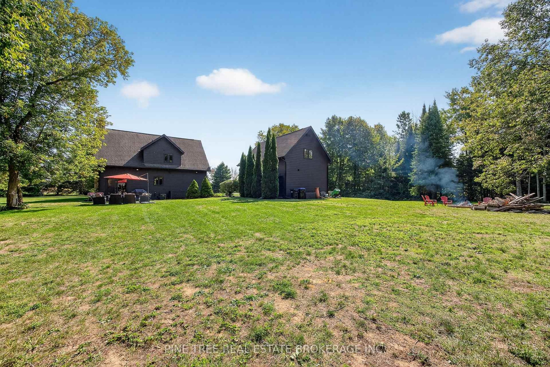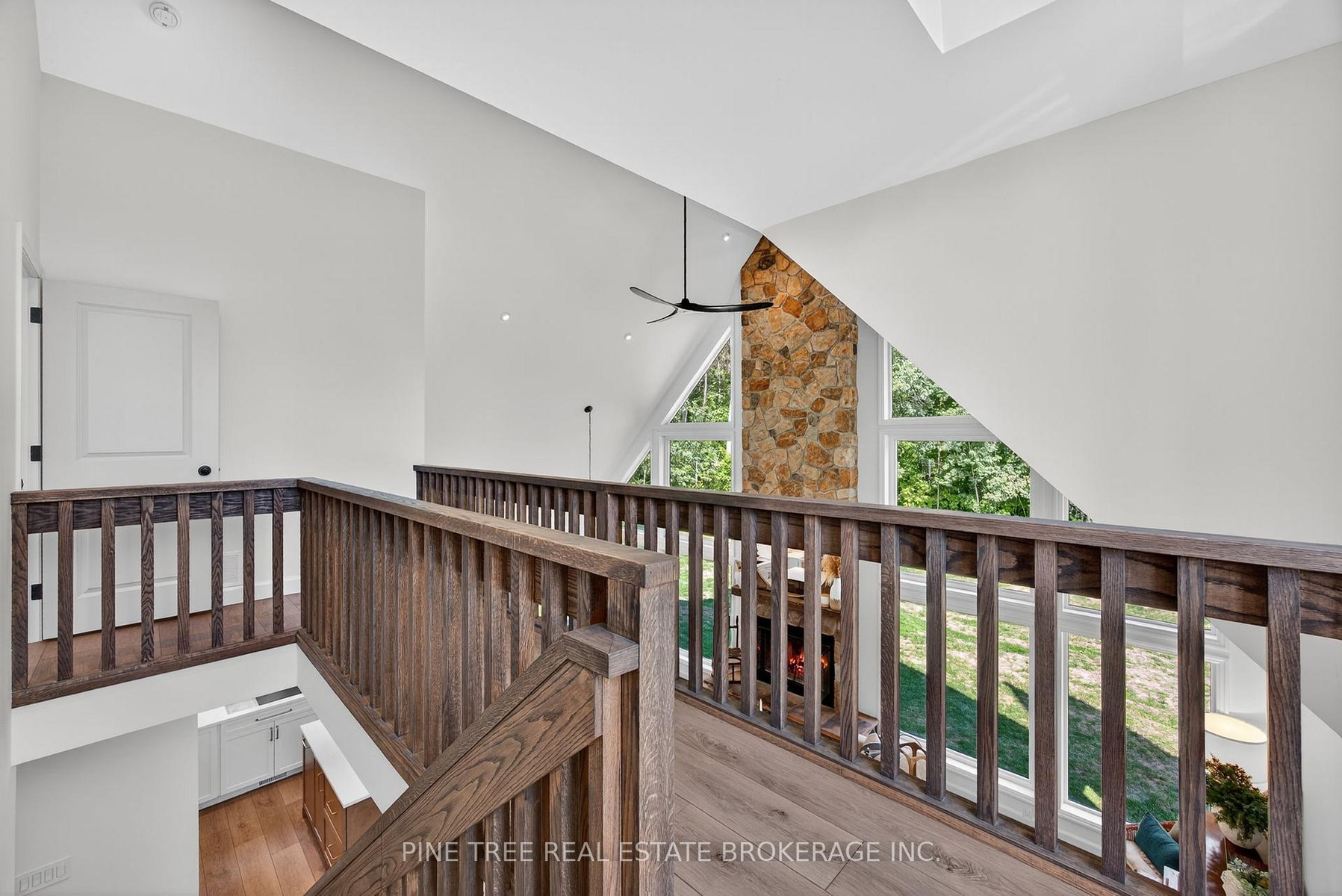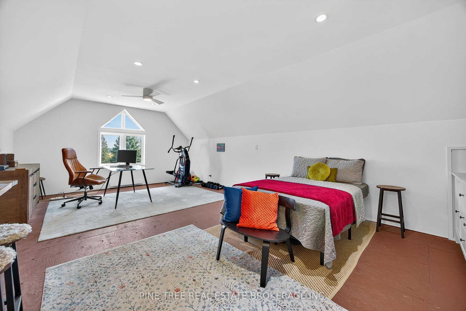 DescriptionWelcome to this stunning executive Viceroy home, fully renovated-blending timeless craftsmanship with modern luxury. Set on nearly 2 acres of manicured estate grounds surrounded by forest and apple trees, this property offers privacy, elegance, & space to live, work, & play. Inside the open-concept layout is filled with natural light, showcasing hand-hewn post-and-beam accents, custom finishes, & thoughtful upgrades. The main floor features a chefs kitchen with solid wood cabinetry, quartz counters, striking backsplash, & professional-grade appliances. A wood-burning fireplace anchors the breathtaking living room, while the formal dining area, custom bar, oak bench & shelving in the foyer, & walkout to the backyard balance rustic charm with modern design. A remodeled bathroom & 2 bedrooms complete this level. Upstairs, a breezeway overlooking the main floor leads to the luxurious primary suite, a private retreat with a spa-inspired 4-piece ensuite, upgraded closets, new flooring, & refined finishes. The lower level offers versatility with a walk-up separate entrance ideal for multigenerational living. It includes a custom laundry room with quartz counters, remodeled bathroom w/ bathtub, spacious family room, games room with pool table, & a large 4th bedroom. Additional living space is found in the fully insulated and heated 600 sq. ft. loft above the detached two-car garage, perfect as a 5th bed, office, or studio, plus a storage level. Every major system has been upgraded, including central air, a 24KW Generac generator w/ automatic transfer switch, large owned hot water tank, new water treatment system, & 3,785L propane tank. The exterior shines with fresh paint on the home and garage, resurfaced recycled asphalt driveway & new eavestroughs. Location is everything, just 7 minutes to Wasaga Beach, 15 to Barrie & close to all amenities, this estate offers the ultimate commuters dream paired with a resort-style lifestyle - where modern luxury meets rustic elegance.Amenities- Auto Garage Door Remote