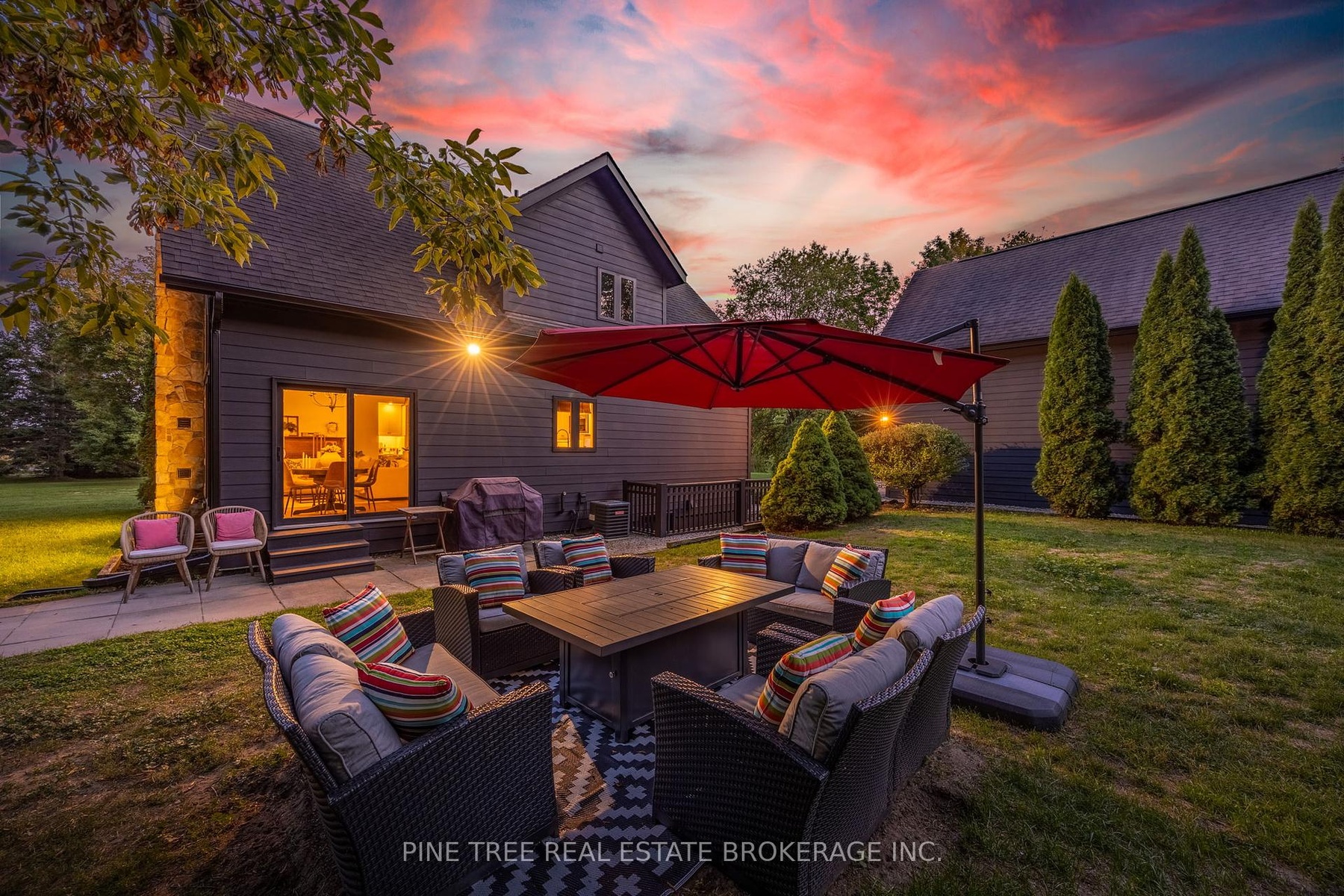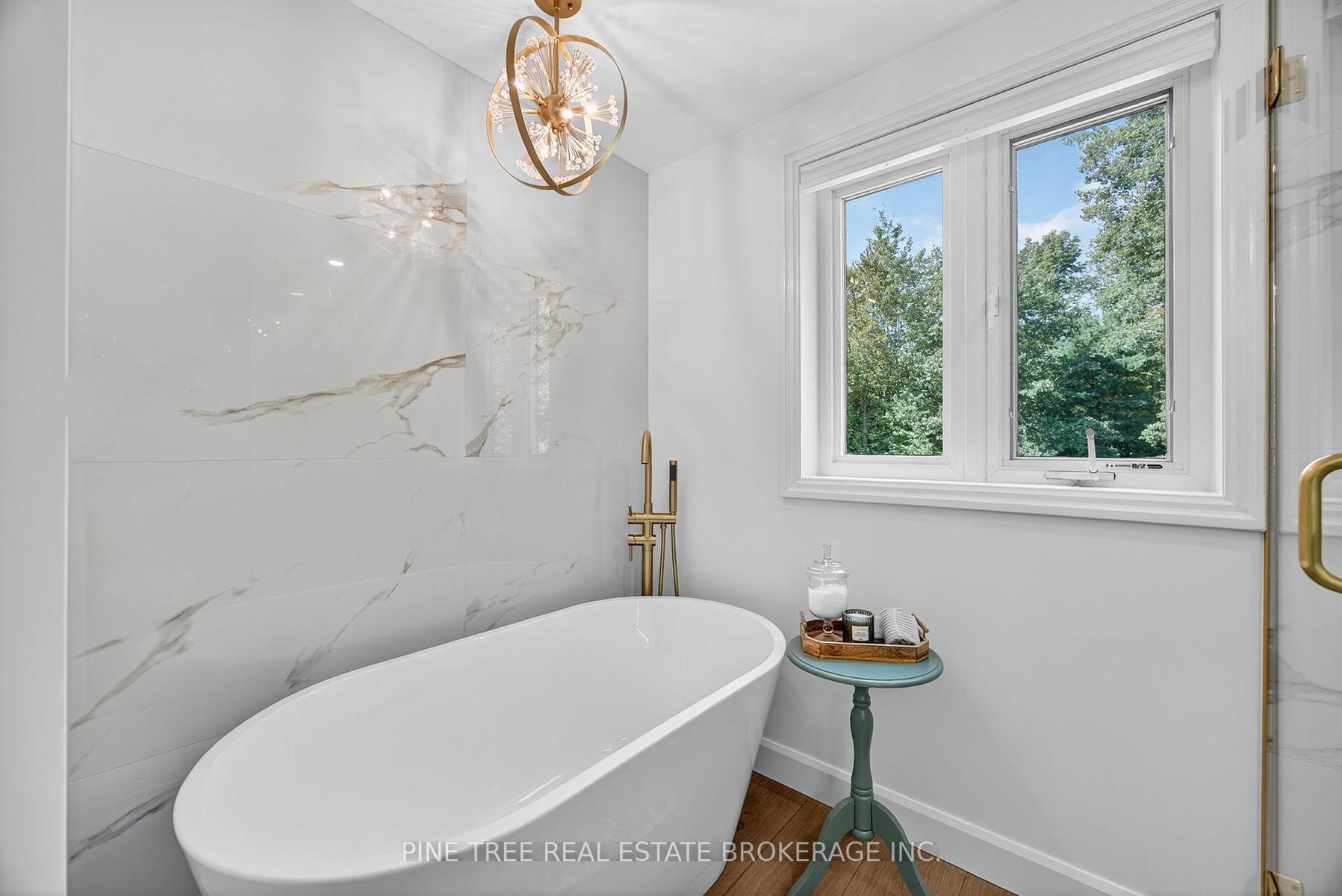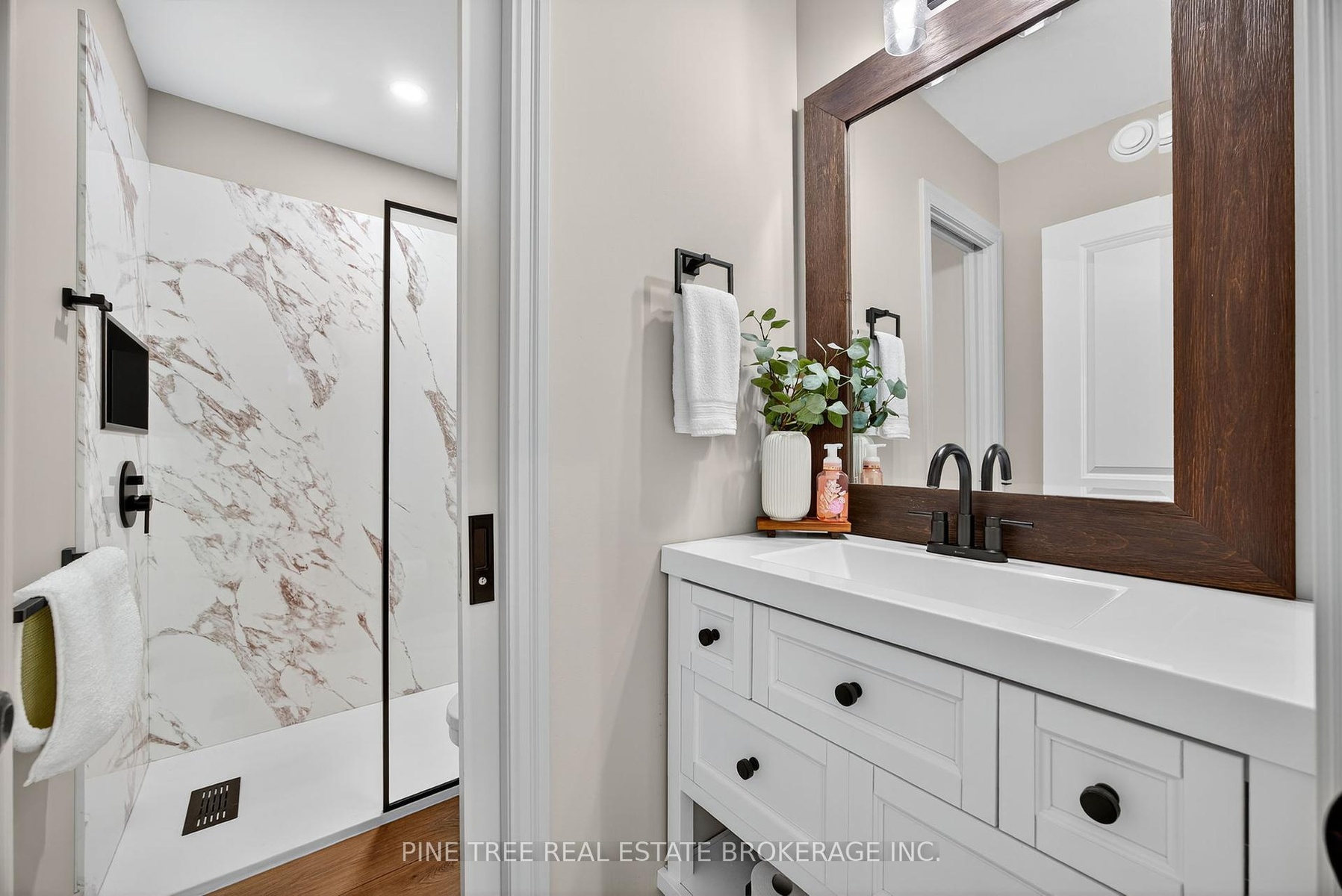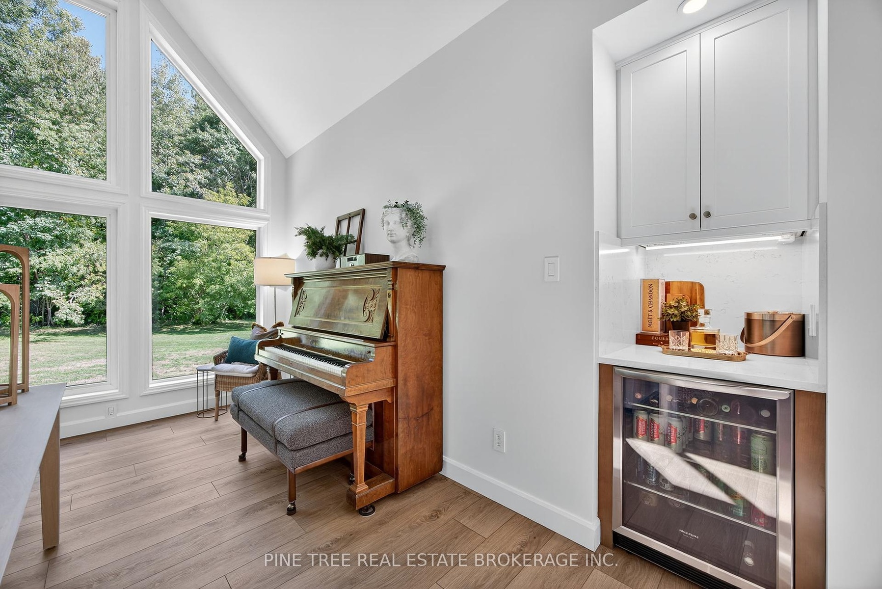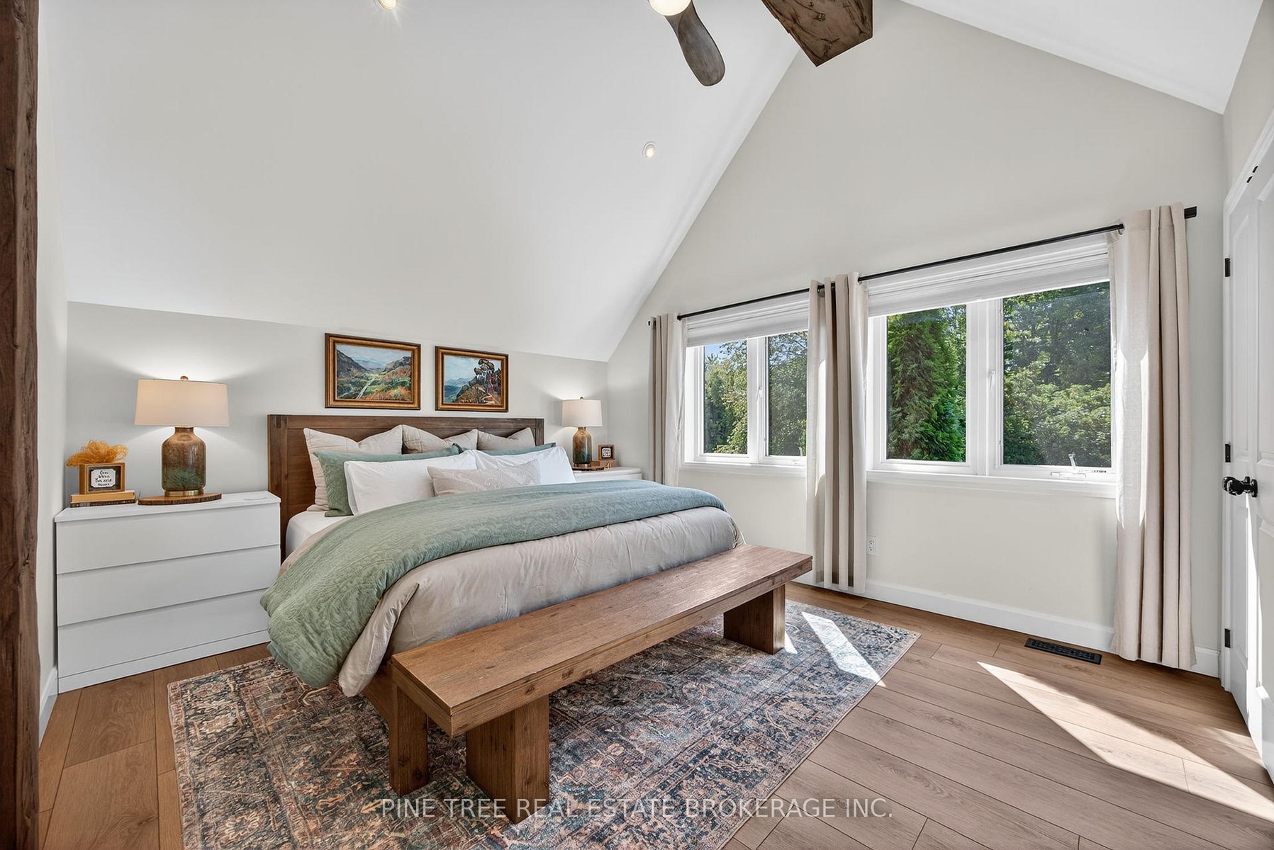 DescriptionWelcome to this stunning executive Viceroy home, fully renovated-blending timeless craftsmanship with modern luxury. Set on nearly 2 acres of manicured estate grounds surrounded by forest and apple trees, this property offers privacy, elegance, & space to live, work, & play. Inside the open-concept layout is filled with natural light, showcasing hand-hewn post-and-beam accents, custom finishes, & thoughtful upgrades. The main floor features a chefs kitchen with solid wood cabinetry, quartz counters, striking backsplash, & professional-grade appliances. A wood-burning fireplace anchors the breathtaking living room, while the formal dining area, custom bar, oak bench & shelving in the foyer, & walkout to the backyard balance rustic charm with modern design. A remodeled bathroom & 2 bedrooms complete this level. Upstairs, a breezeway overlooking the main floor leads to the luxurious primary suite, a private retreat with a spa-inspired 4-piece ensuite, upgraded closets, new flooring, & refined finishes. The lower level offers versatility with a walk-up separate entrance ideal for multigenerational living. It includes a custom laundry room with quartz counters, remodeled bathroom w/ bathtub, spacious family room, games room with pool table, & a large 4th bedroom. Additional living space is found in the fully insulated and heated 600 sq. ft. loft above the detached two-car garage, perfect as a 5th bed, office, or studio, plus a storage level. Every major system has been upgraded, including central air, a 24KW Generac generator w/ automatic transfer switch, large owned hot water tank, new water treatment system, & 3,785L propane tank. The exterior shines with fresh paint on the home and garage, resurfaced recycled asphalt driveway & new eavestroughs. Location is everything, just 7 minutes to Wasaga Beach, 15 to Barrie & close to all amenities, this estate offers the ultimate commuters dream paired with a resort-style lifestyle - where modern luxury meets rustic elegance.Amenities- Auto Garage Door Remote