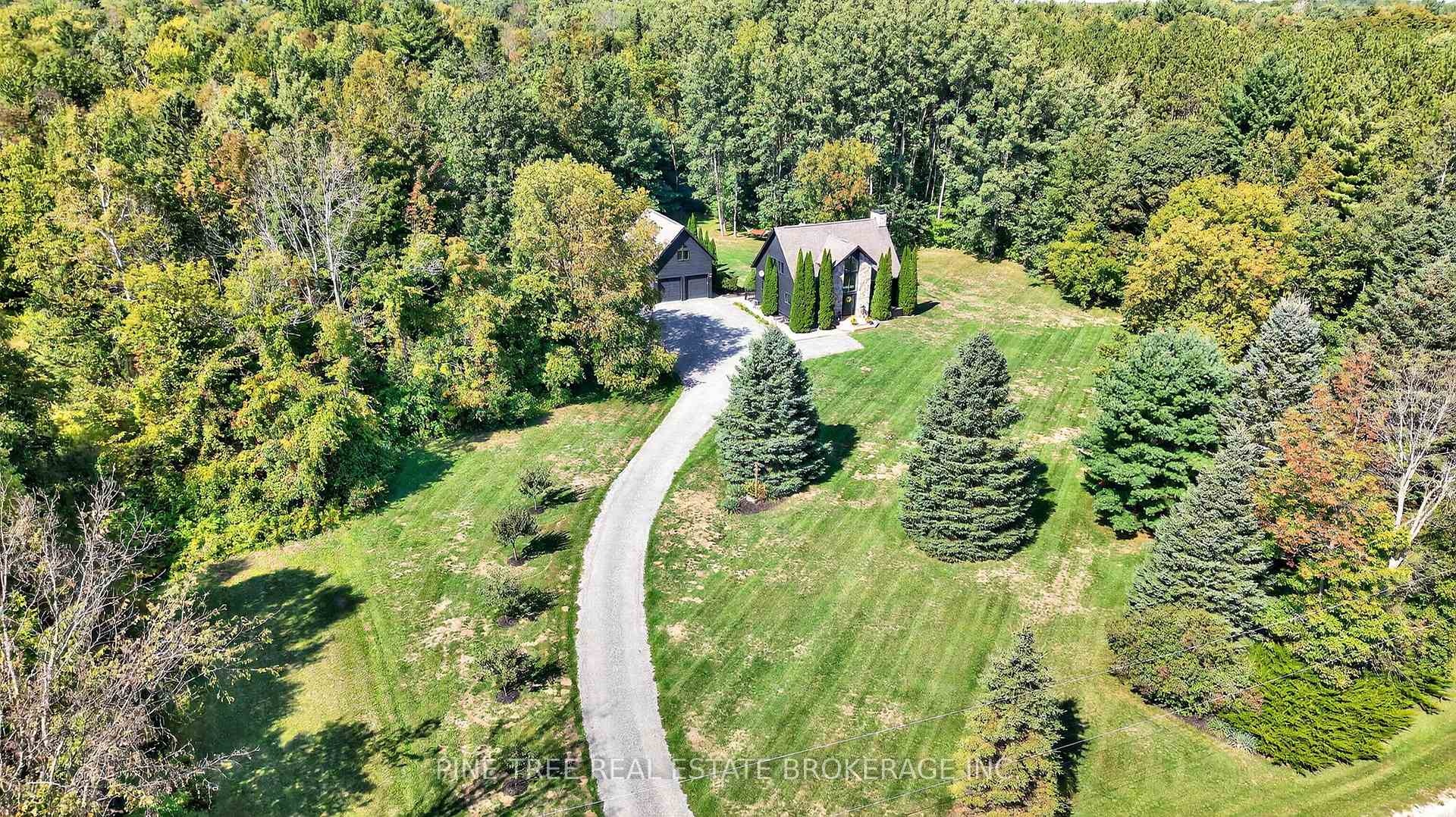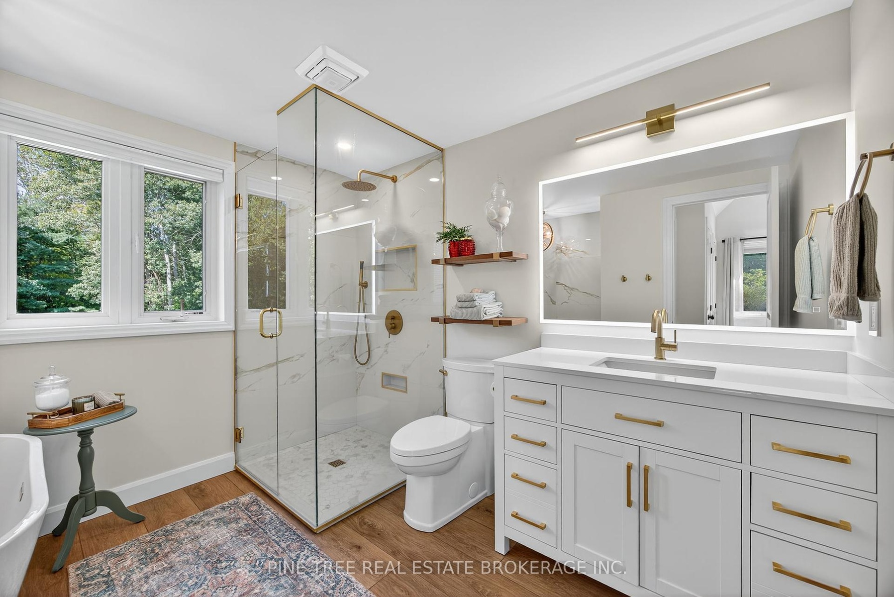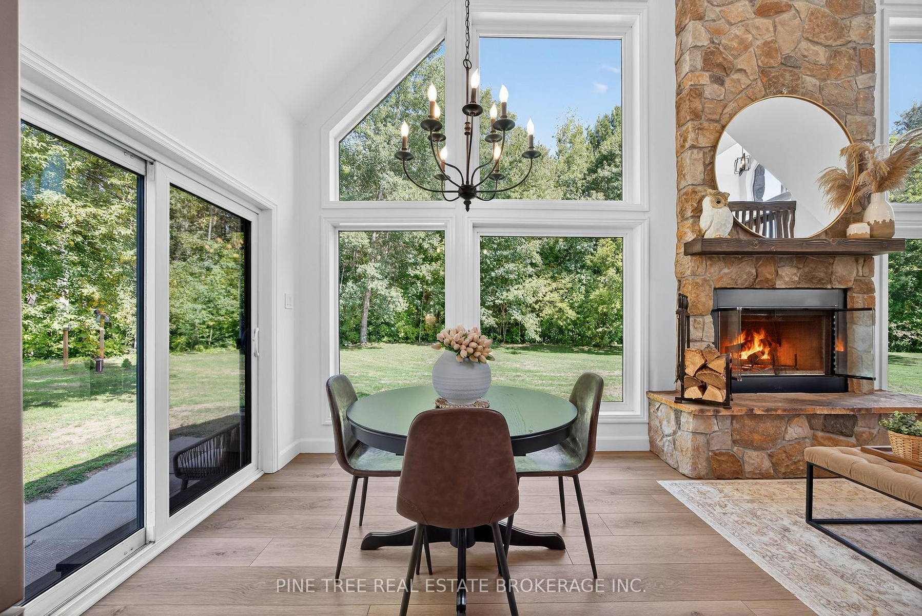 Welcome to this stunning executive Viceroy home, fully renovated-blending timeless craftsmanship with modern luxury. Set on nearly 2 acres of manicured estate grounds surrounded by forest and apple trees, this property offers privacy, elegance, & space to live, work, & play. Inside the open-concept layout is filled with natural light, showcasing hand-hewn post-and-beam accents, custom finishes, & thoughtful upgrades. The main floor features a chefs kitchen with solid wood cabinetry, quartz counters, striking backsplash, & professional-grade appliances. A wood-burning fireplace anchors the breathtaking living room, while the formal dining area, custom bar, oak bench & shelving in the foyer, & walkout to the backyard balance rustic charm with modern design. A remodeled bathroom & 2 bedrooms complete this level. Upstairs, a breezeway overlooking the main floor leads to the luxurious primary suite, a private retreat with a spa-inspired 4-piece ensuite, upgraded closets, new flooring, & refined finishes. The lower level offers versatility with a walk-up separate entrance ideal for multigenerational living. It includes a custom laundry room with quartz counters, remodeled bathroom w/ bathtub, spacious family room, games room with pool table, & a large 4th bedroom. Additional living space is found in the fully insulated and heated 600 sq. ft. loft above the detached two-car garage, perfect as a 5th bed, office, or studio, plus a storage level. Every major system has been upgraded, including central air, a 24KW Generac generator w/ automatic transfer switch, large owned hot water tank, new water treatment system, & 3,785L propane tank. The exterior shines with fresh paint on the home and garage, resurfaced recycled asphalt driveway & new eavestroughs. Location is everything, just 7 minutes to Wasaga Beach, 15 to Barrie & close to all amenities, this estate offers the ultimate commuters dream paired with a resort-style lifestyle - where modern luxury meets rustic elegance.