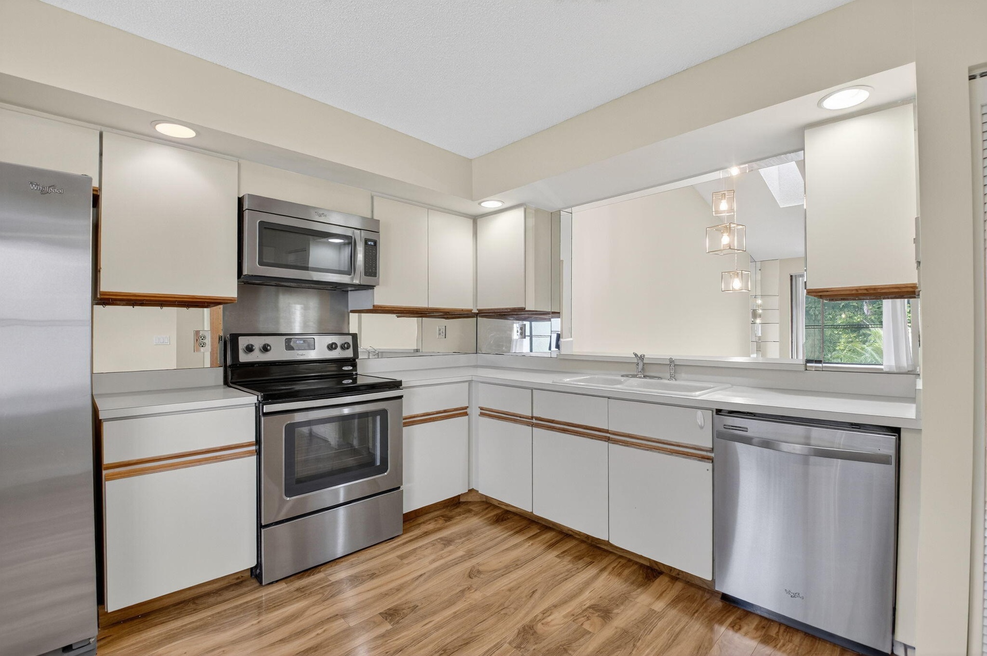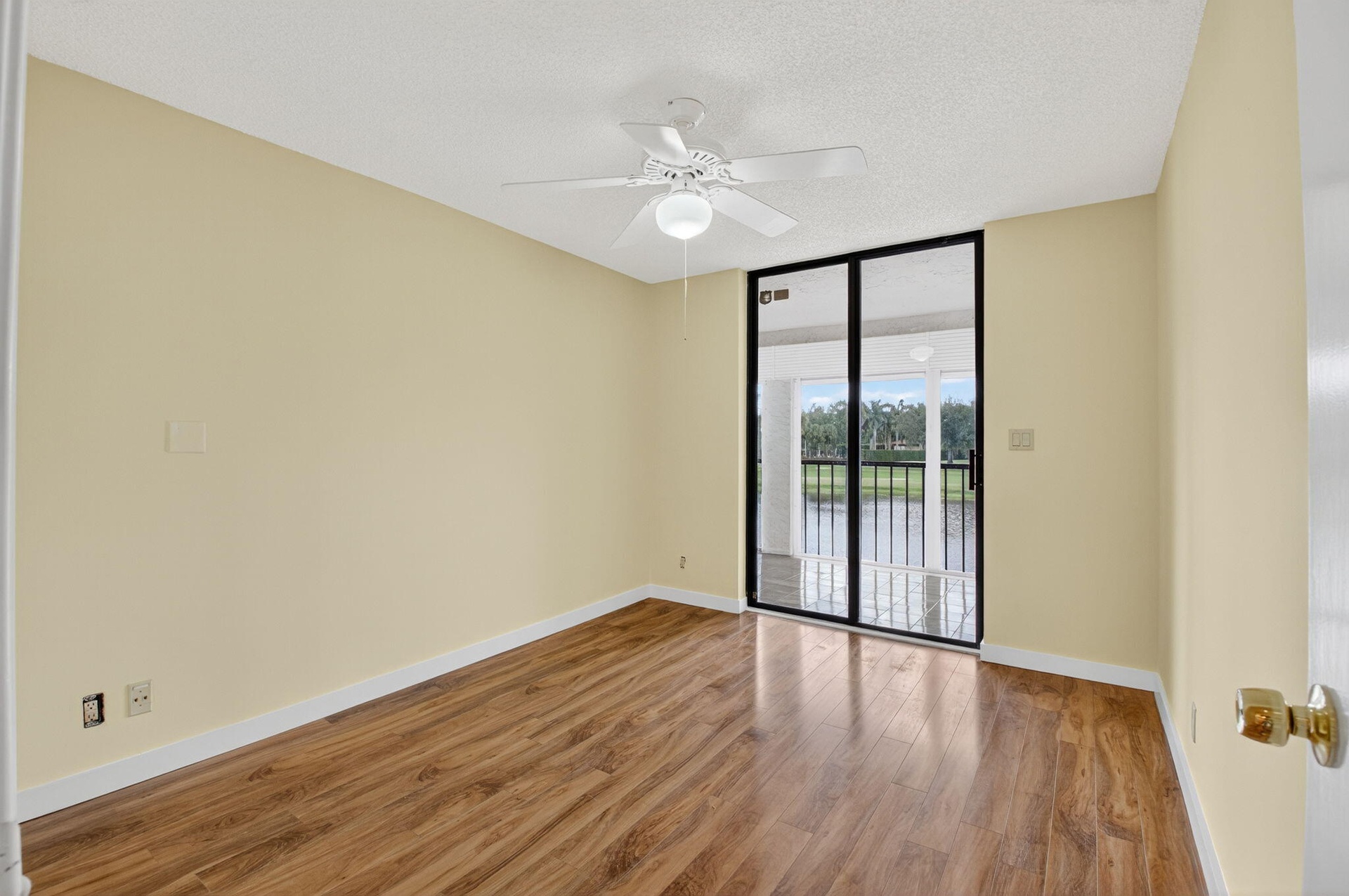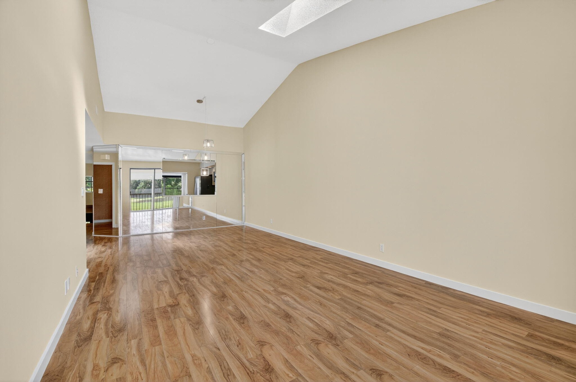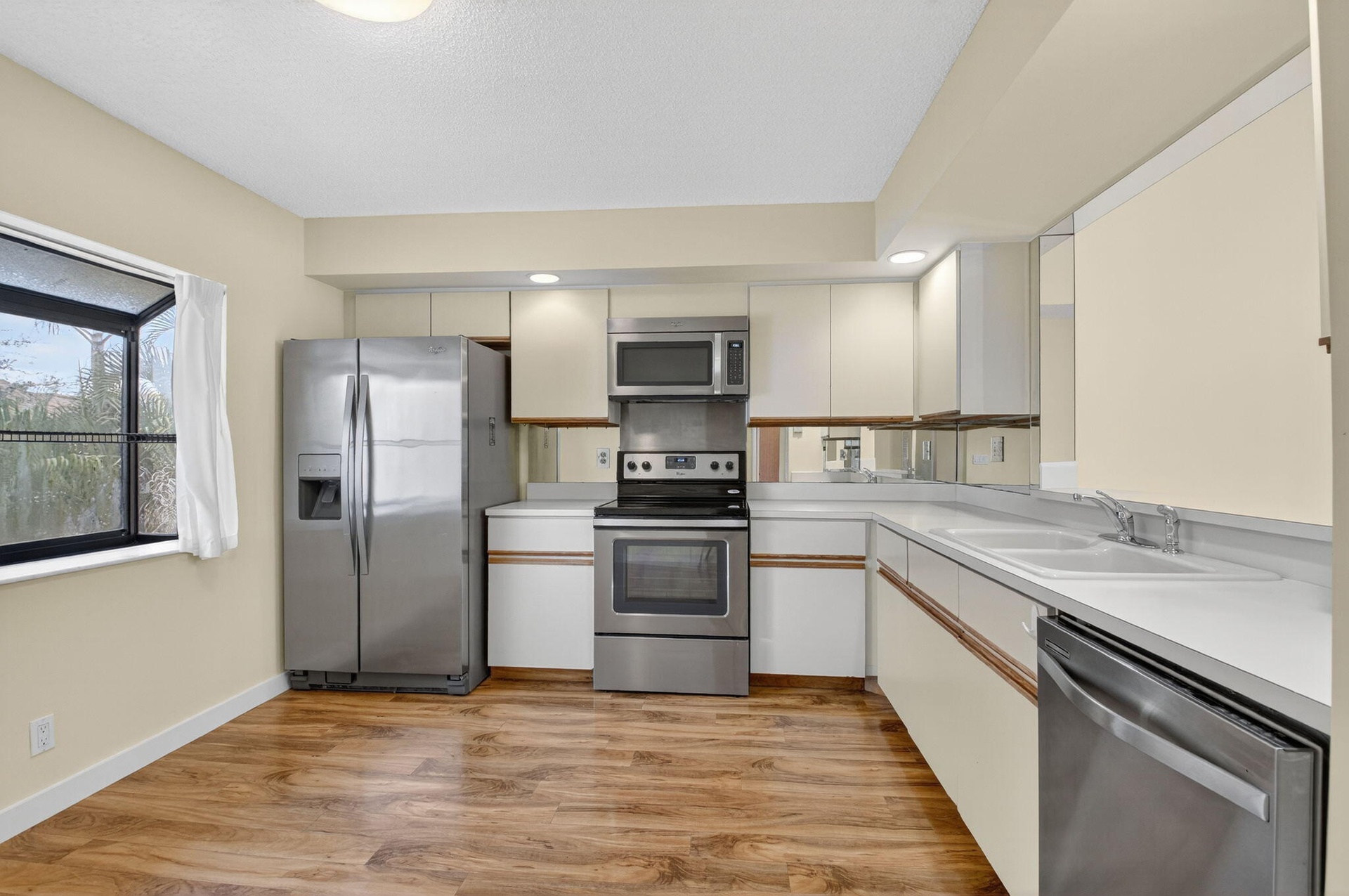Spacious 3 bedroom, 2 bath condo with 1-car garage in a beautiful La Mirada at Boca Pointe. This 2nd floor home offers vaulted ceilings with skylights that fill the space with natural light, along with easy-care laminate floors throughout. The kitchen features stainless steel appliances and opens to the living area for comfortable entertaining. Enjoy peaceful golf and water southern views from the screened-in patio, complete with pull-down storm shutters and a storage closet. The true third bedroom makes an ideal guest room, office, or den. Move-in ready and located in a desirable community with subdivision pool.
