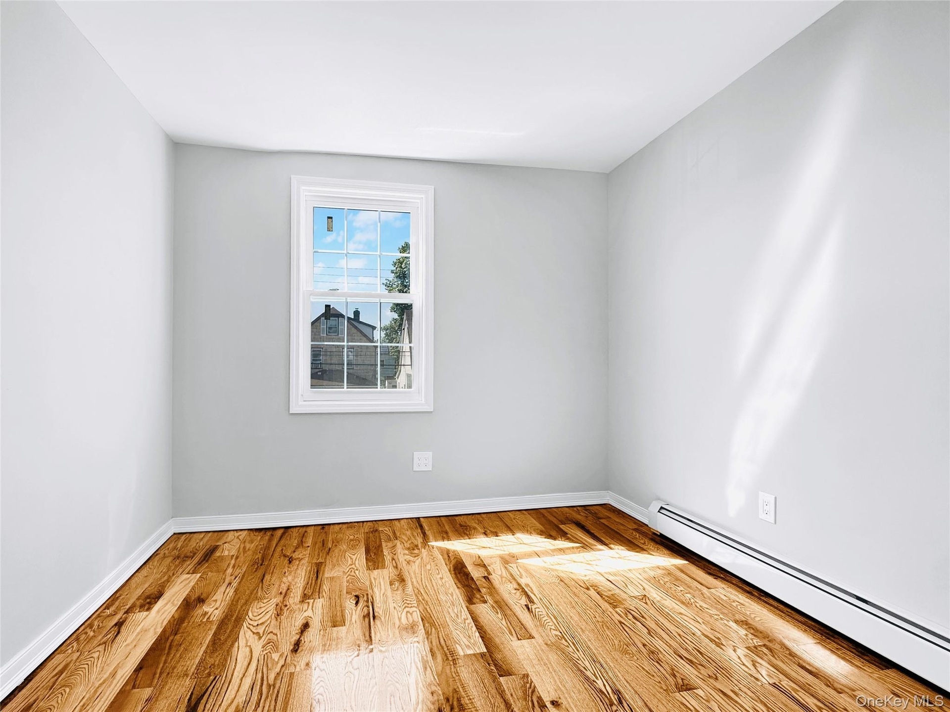 - Spare room featuring light wood-style flooring and a baseboard radiator