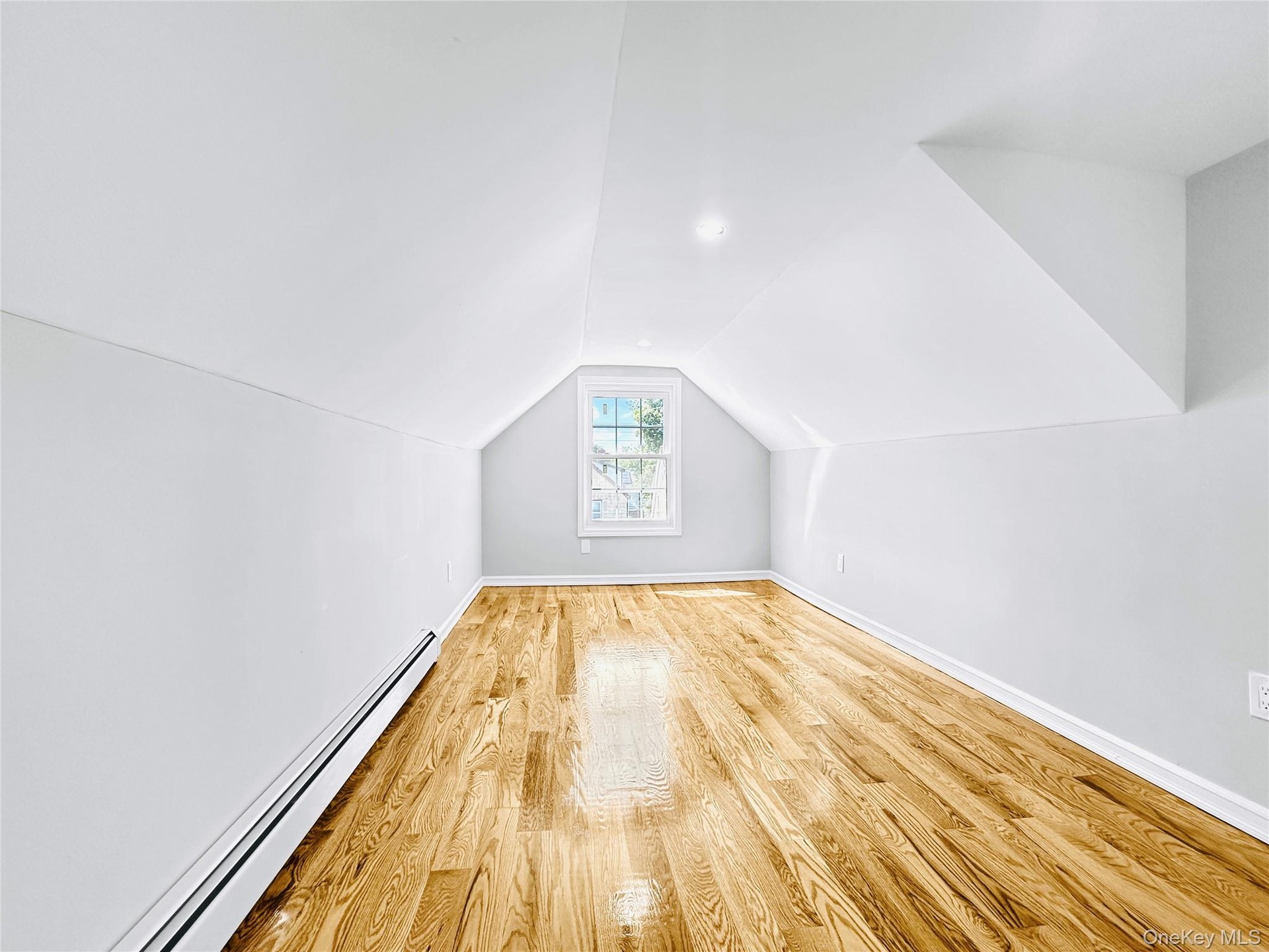 - Bonus room featuring baseboard heating, vaulted ceiling, and light wood-style flooring