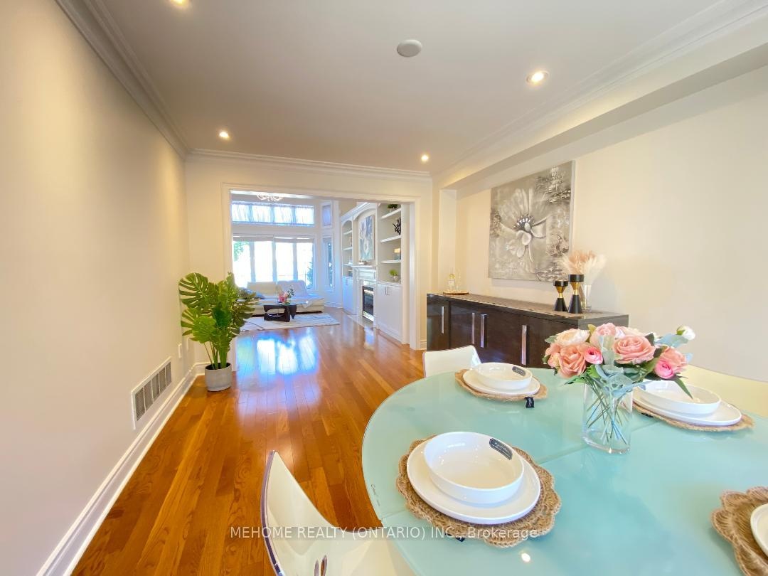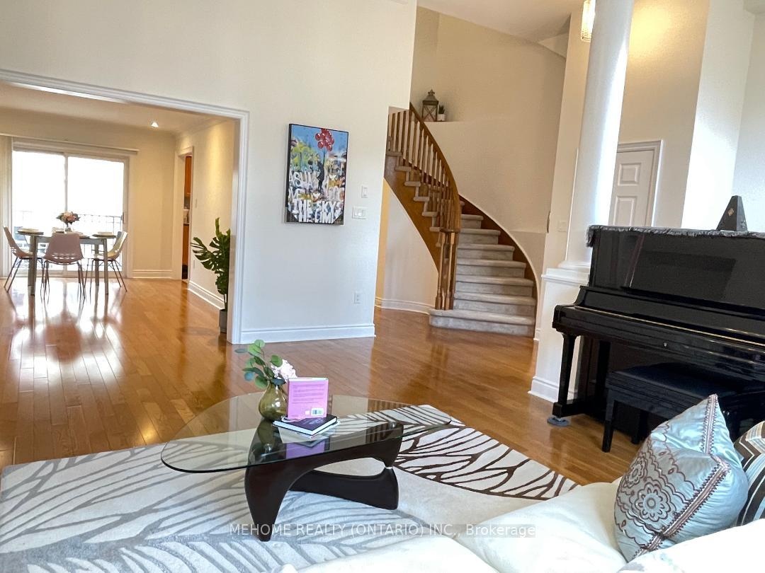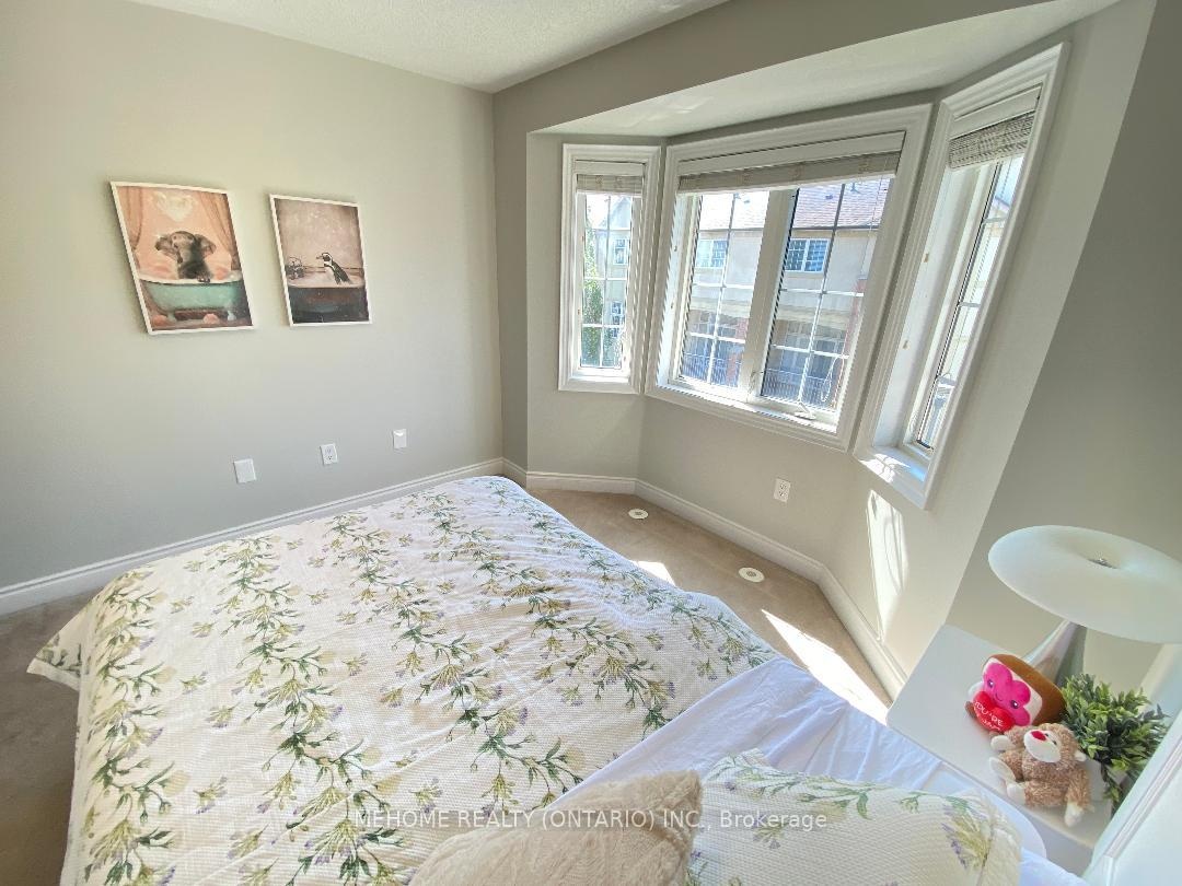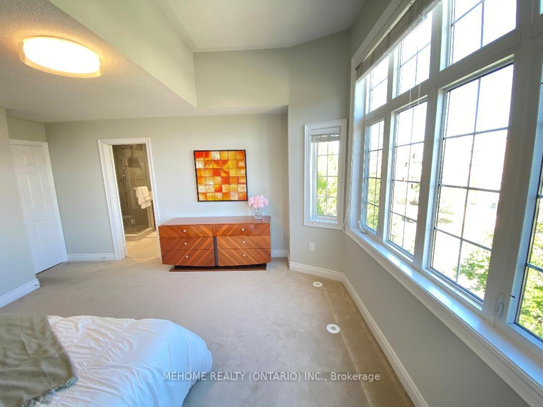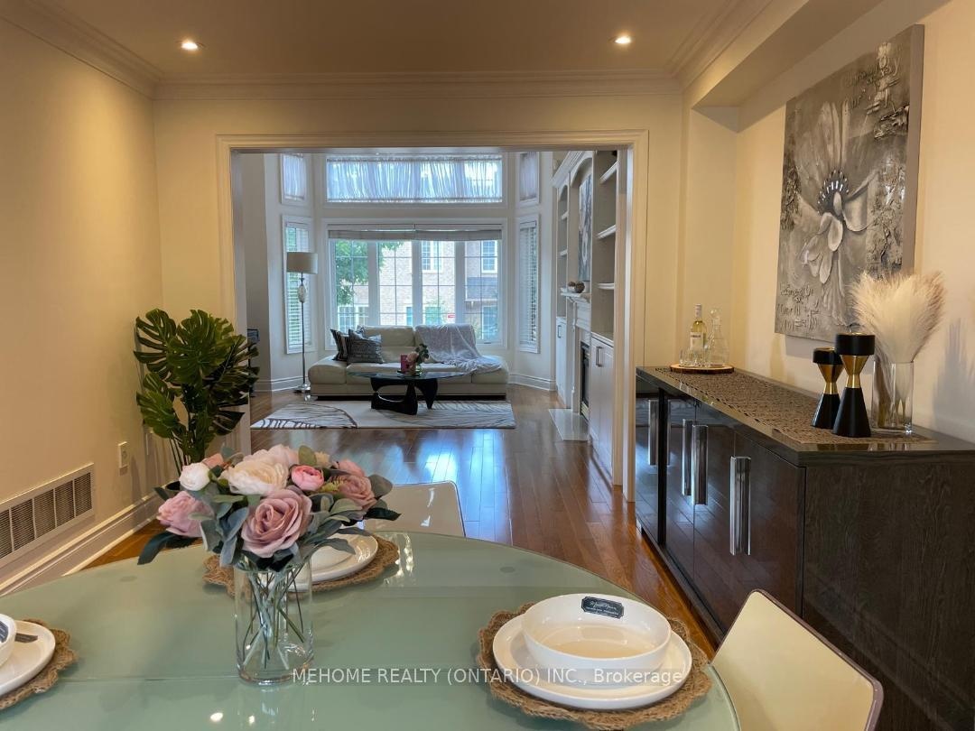 Welcome to this elegant Tridel-built Carriage B2 townhouse, where luxury meets comfort in 2,166 sq. ft. of beautifully designed living space. From the moment you enter the soaring 17-ft foyer, natural light pours through oversized windows, creating a warm and inviting atmosphere. The stunning 12-ft ceiling family room, highlighted by a sparkling crystal chandelier and custom wall organizer, is perfect for gatherings or quiet evenings at home. The spacious dining room opens onto a sun-drenched terrace, ideal for BBQs, entertaining, or simply enjoying your morning coffee in peace. The gourmet kitchen, finished with granite countertops, invites both everyday meals and special celebrations. Upstairs, the primary suite offers a serene retreat with partly 11-ft ceilings, abundant sunlight, his & hers closets, and a spa-inspired ensuite freshly renovated in 2024. With additional modern upgrades throughout, this home blends timeless elegance with everyday convenience. Roof (2024). Nestled within the boundaries of top-ranking schools and just minutes to Downtown Markham, Hwy 404, and Hwy 407 this is not just a home, its a lifestyle.