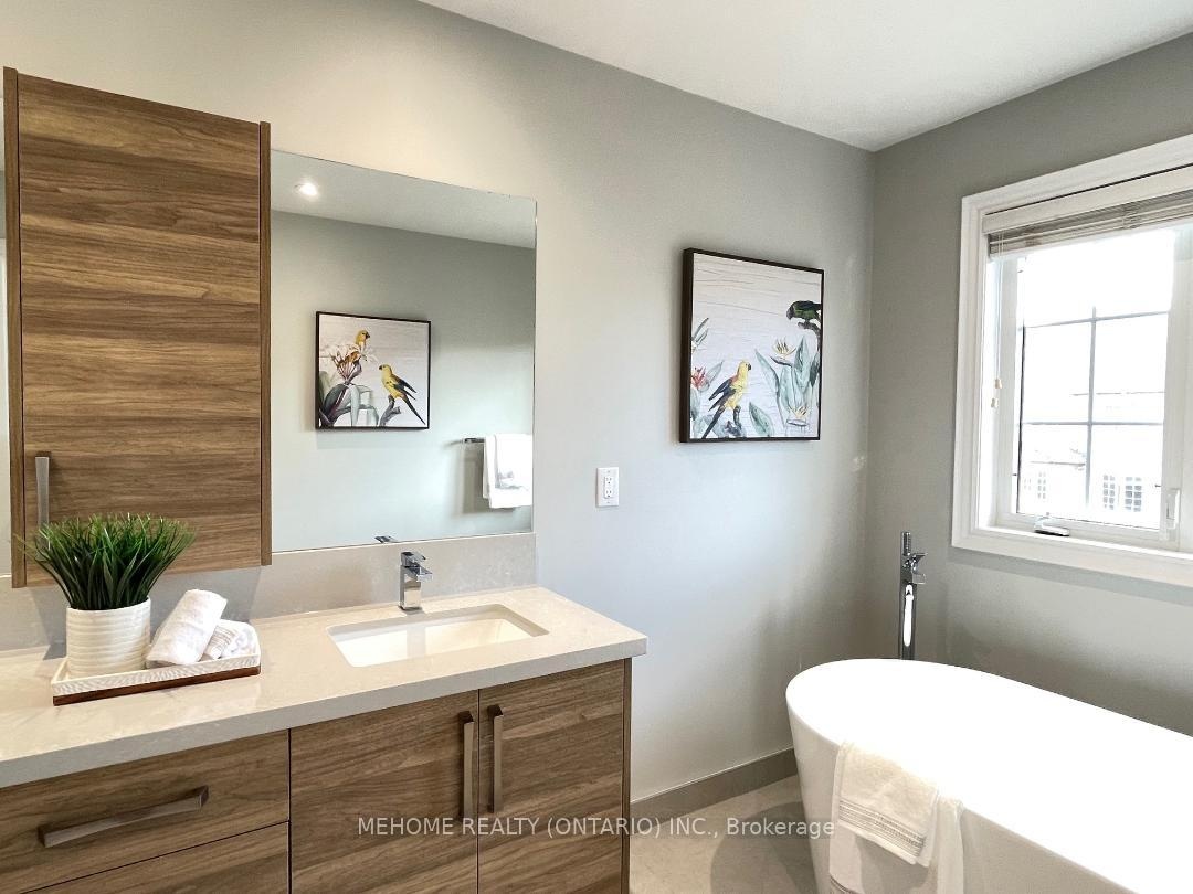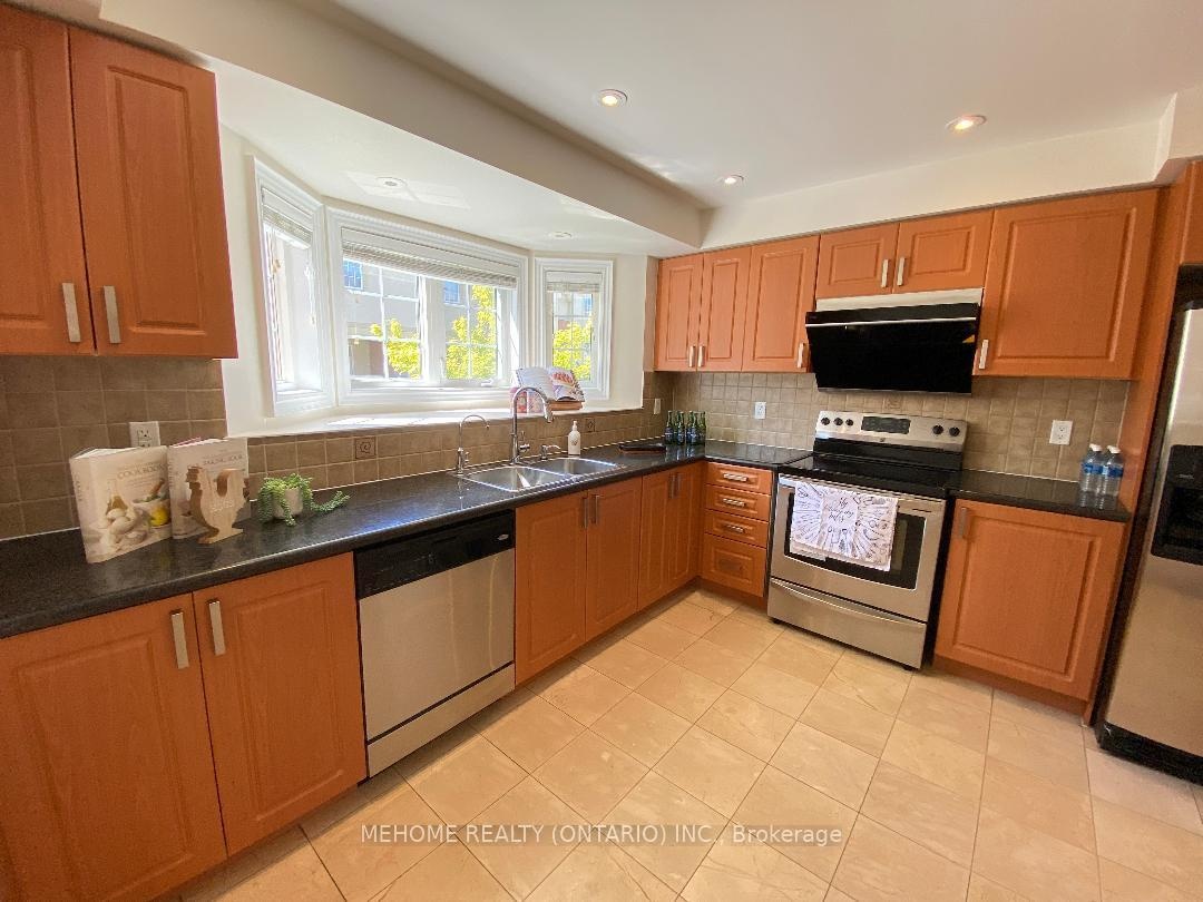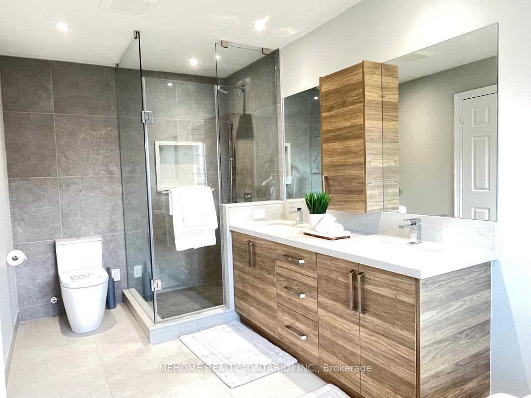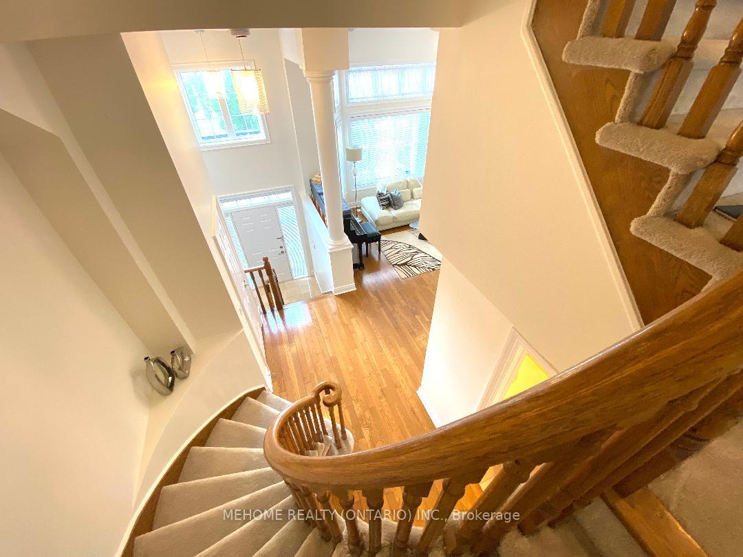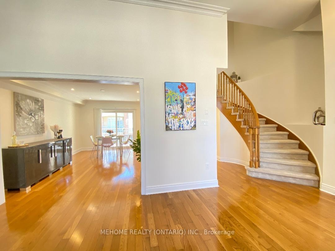 Welcome to this elegant Tridel-built Carriage B2 townhouse, where luxury meets comfort in 2,166 sq. ft. of beautifully designed living space. From the moment you enter the soaring 17-ft foyer, natural light pours through oversized windows, creating a warm and inviting atmosphere. The stunning 12-ft ceiling family room, highlighted by a sparkling crystal chandelier and custom wall organizer, is perfect for gatherings or quiet evenings at home. The spacious dining room opens onto a sun-drenched terrace, ideal for BBQs, entertaining, or simply enjoying your morning coffee in peace. The gourmet kitchen, finished with granite countertops, invites both everyday meals and special celebrations. Upstairs, the primary suite offers a serene retreat with partly 11-ft ceilings, abundant sunlight, his & hers closets, and a spa-inspired ensuite freshly renovated in 2024. With additional modern upgrades throughout, this home blends timeless elegance with everyday convenience. Roof (2024). Nestled within the boundaries of top-ranking schools and just minutes to Downtown Markham, Hwy 404, and Hwy 407 this is not just a home, its a lifestyle.