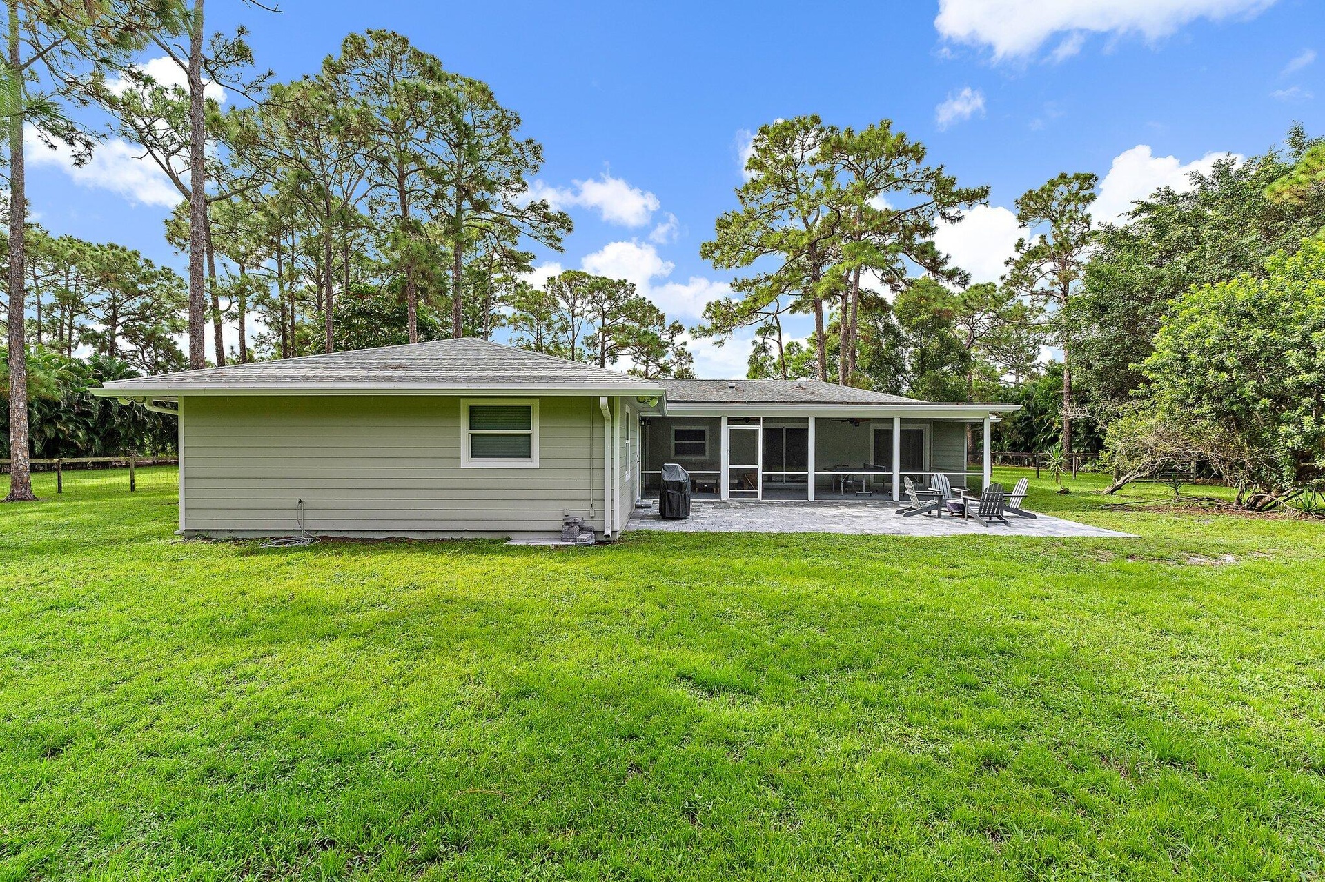 Discover the best of Jupiter Farms living in this charming 3-bedroom, 2-bathroom rental home! Nestled on over 1.25 acre of land, this property offers the perfect mix of privacy and convenience. Inside you'll find fully furnished split floor plan a comfortable family room, and a fully stocked kitchen looking out to the backyard. The primary suite includes its own bath & walk-in closets while the additional bedrooms provide plenty of space for family or guests. Step outside to enjoy a large fenced backyard with peaceful natural surroundings. It's perfect for relaxing evenings, pets, or outdoor activities