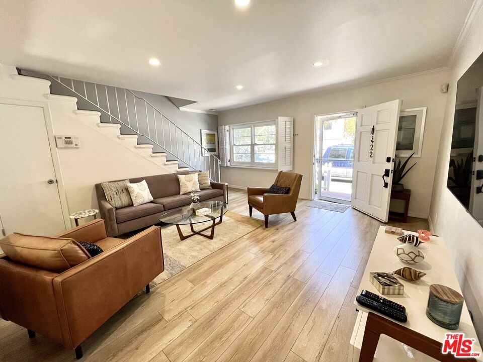 Coastal Living in Prime Santa Monica! Discover this charming, nicely updated two-story townhome in Ocean Park, one of Santa Monica's most sought-after neighborhoods. Nestled in an intimate four-unit community, this home feels like a private residence with its own street entrance and classic white picket fence. Step inside to an open floor plan with hardwood type floors, recessed lighting, and a spacious kitchen with shaker style cabinets, granite counter tops, stainless steel appliances and a cozy eat-in area. Enjoy the convenience of in-unit full-size washer and dryer, your own private patio, and two-car tandem open parking spaces. Location is everything, approximately 4 blocks to the beach and 2 blocks to Main Street's dining, shopping, and nightlife. Minutes to the iconic Santa Monica Pier, Third Street Promenade, Venice Beach, and Marina Del Rey with easy freeway access. This townhome offers the perfect blend of beachside charm, modern comfort, and city convenience.