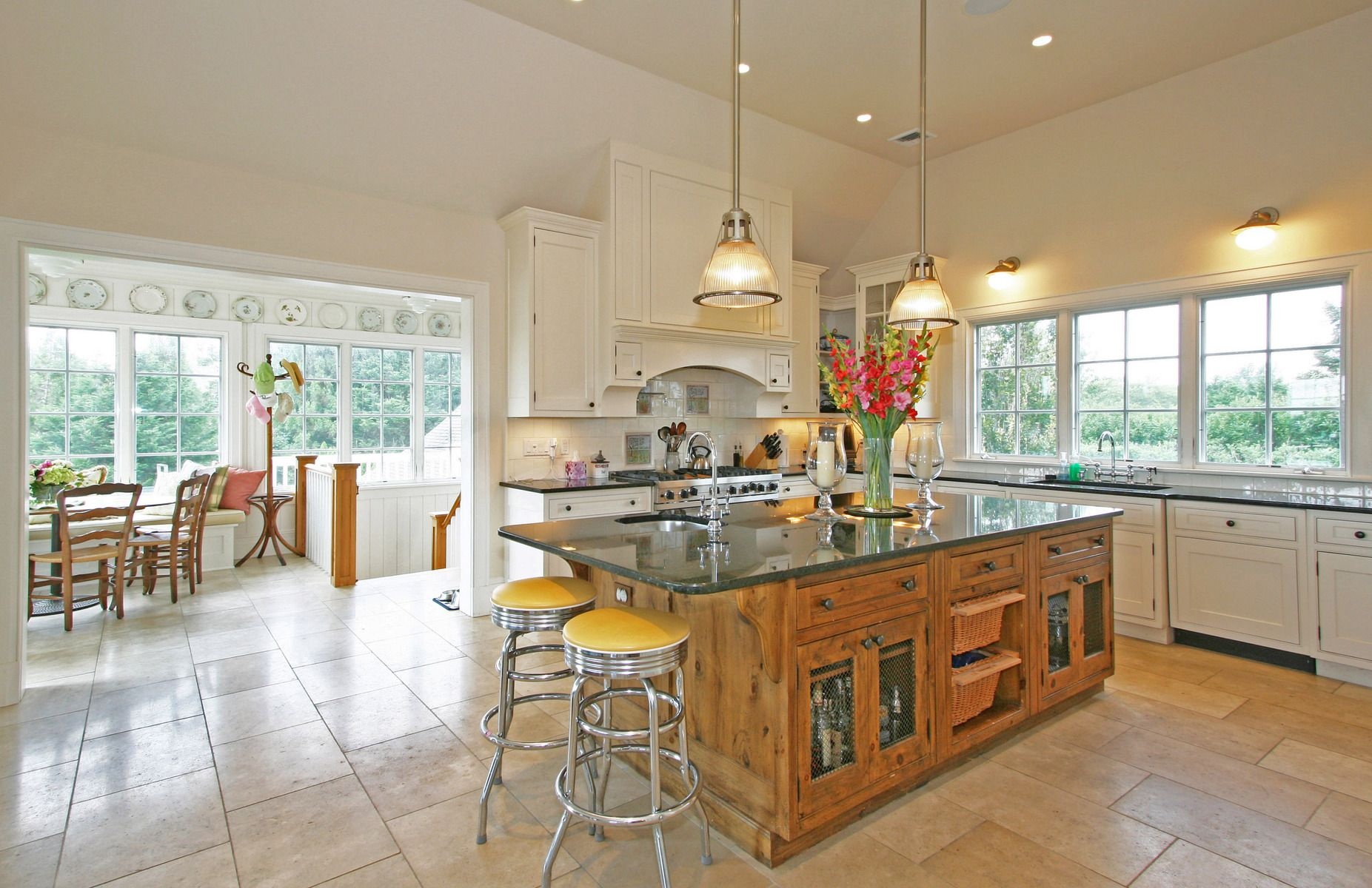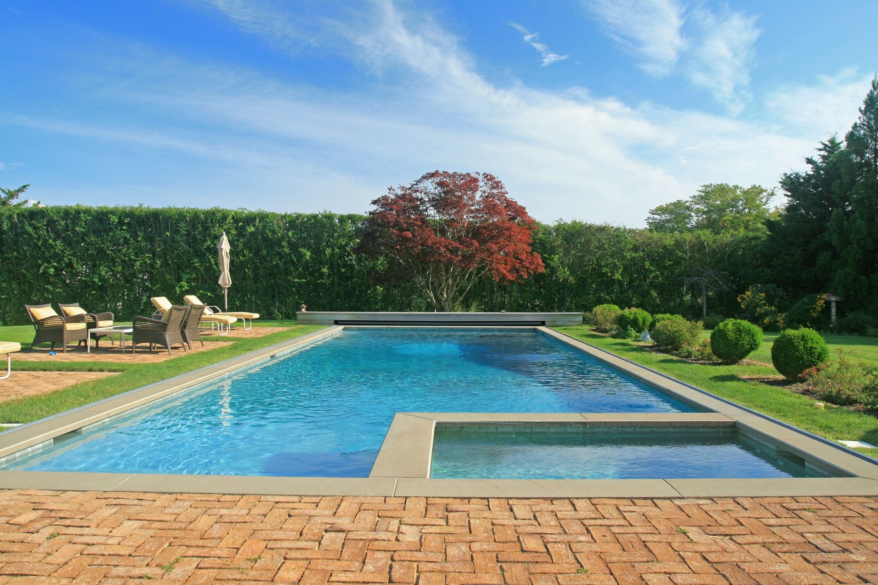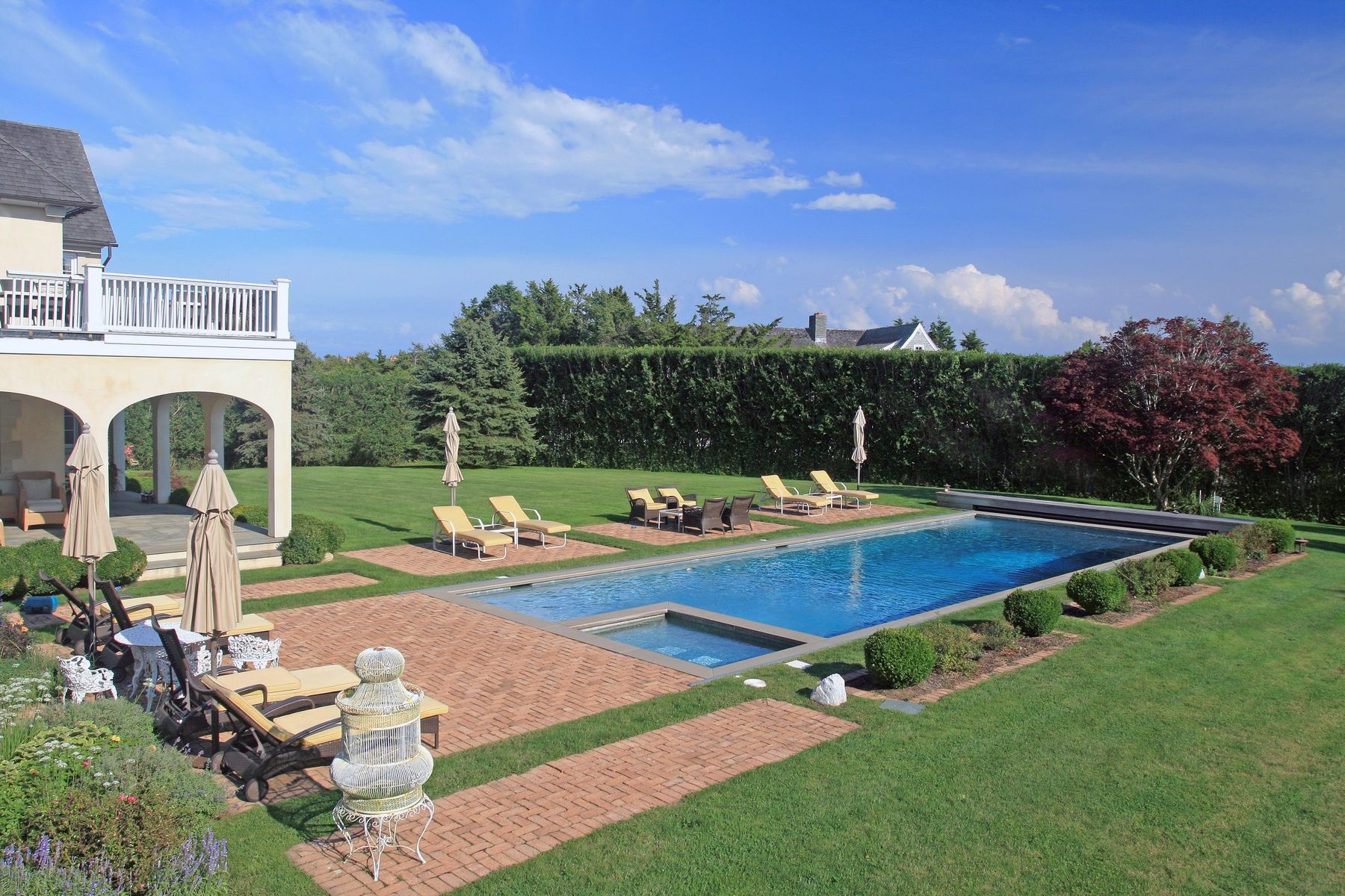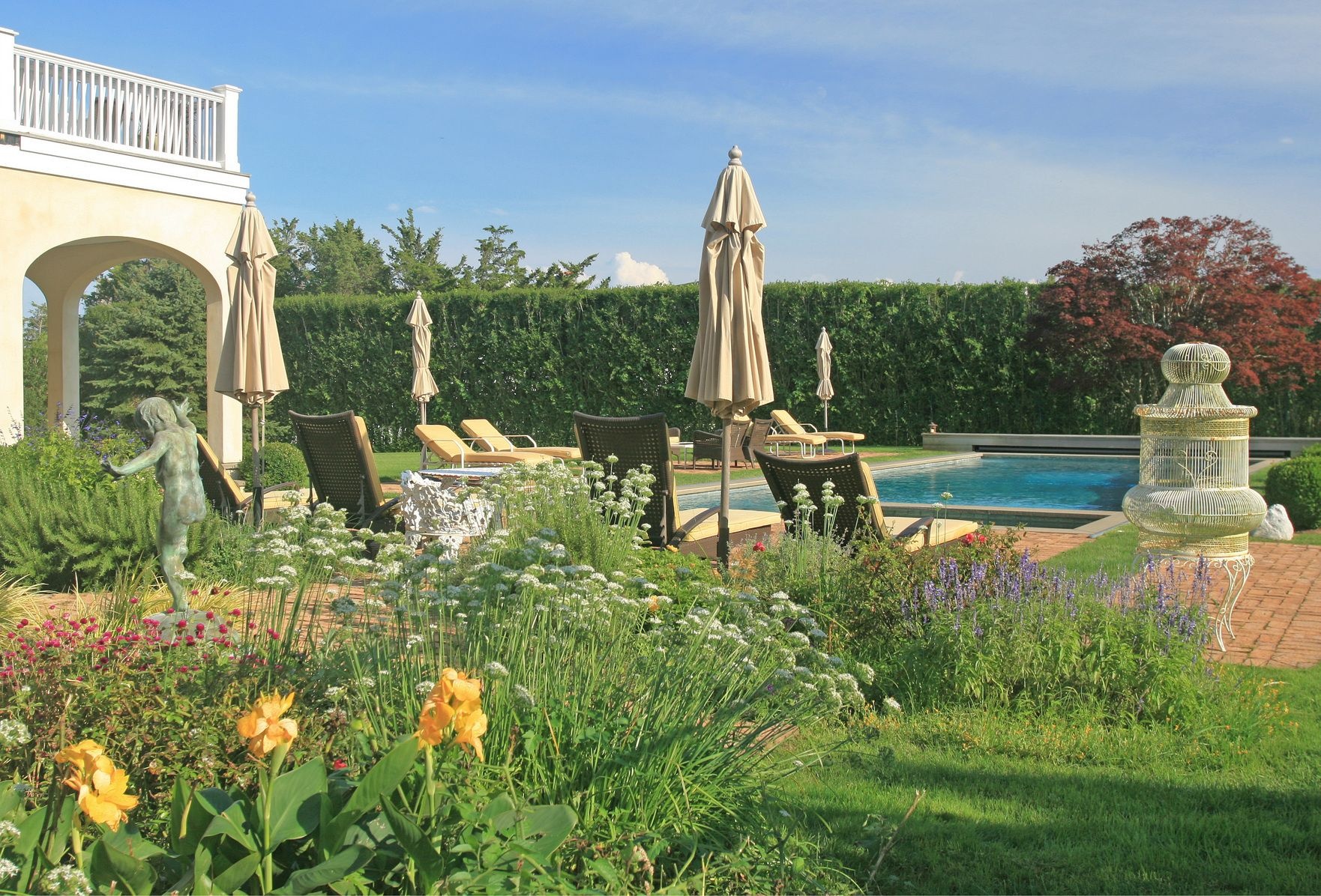 Village This lovely East Hampton home is sited on 1.4 pristine acres and surrounded by English gardens and lush grounds. The 6,000 sq. /ft. home features 6 bedrooms, 6.5 baths, pool and spa, pool house with service kitchen, gardens, and patios for outdoor entertaining. Indoors, the home offers an open floor plan with high ceilings, professional kitchen, master suite with Jacuzzi and an ocean view! Stroll to the Atlantic ocean and have easy access to restaurants, shops and entertainment. Longer terms available upon request!